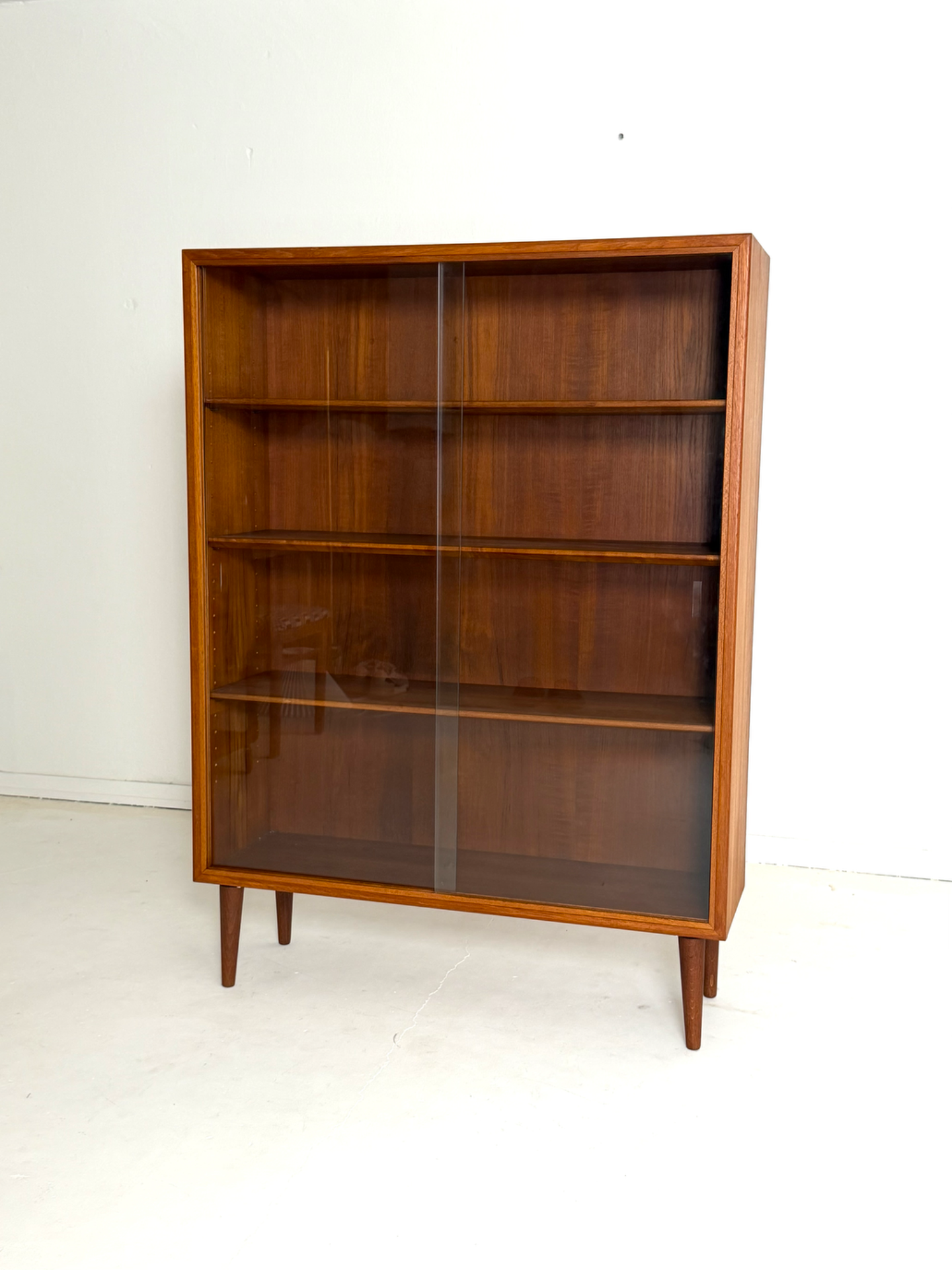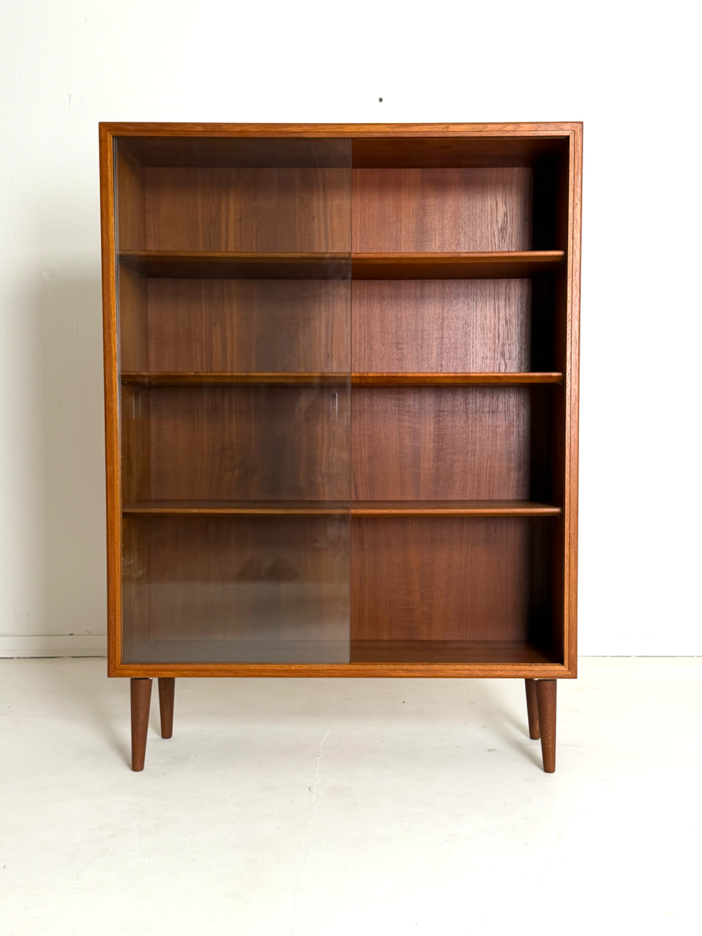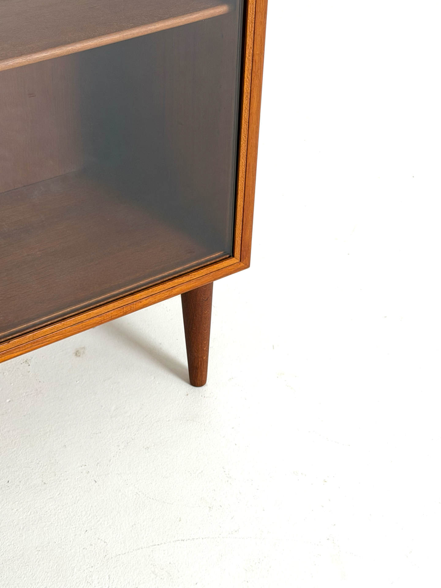 Børge Mogensen – tiikkinen vitriinikaappi, Søborg Møbelfabrik, 1960-luku