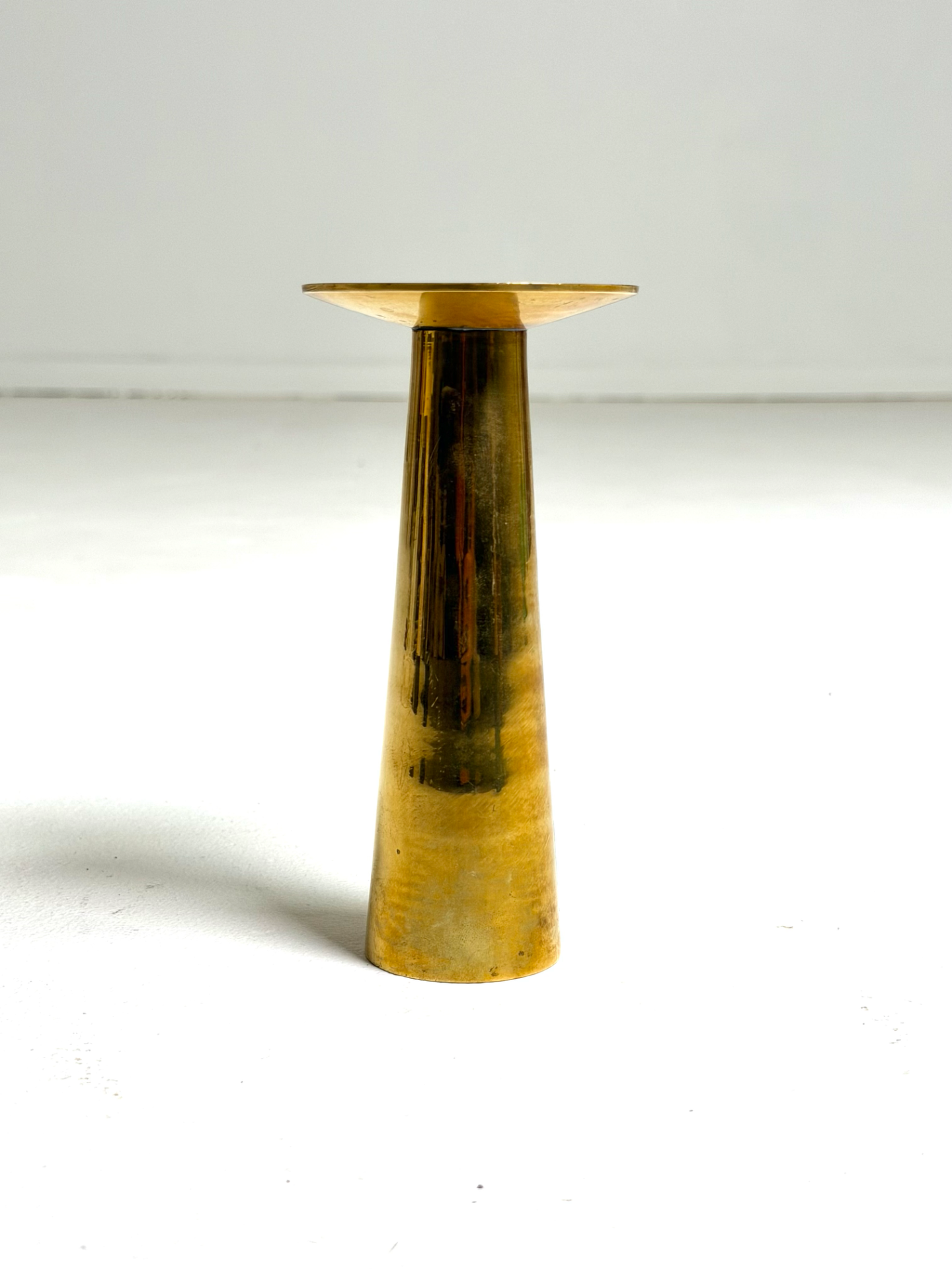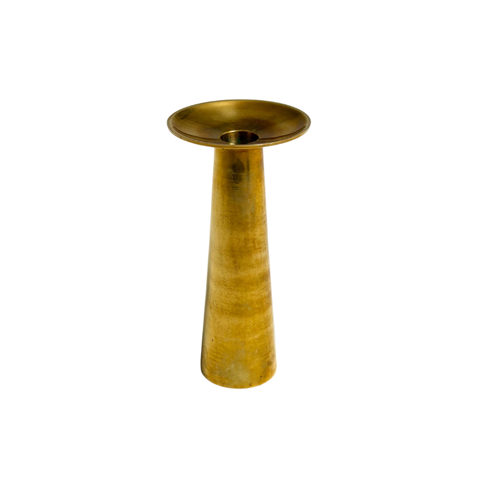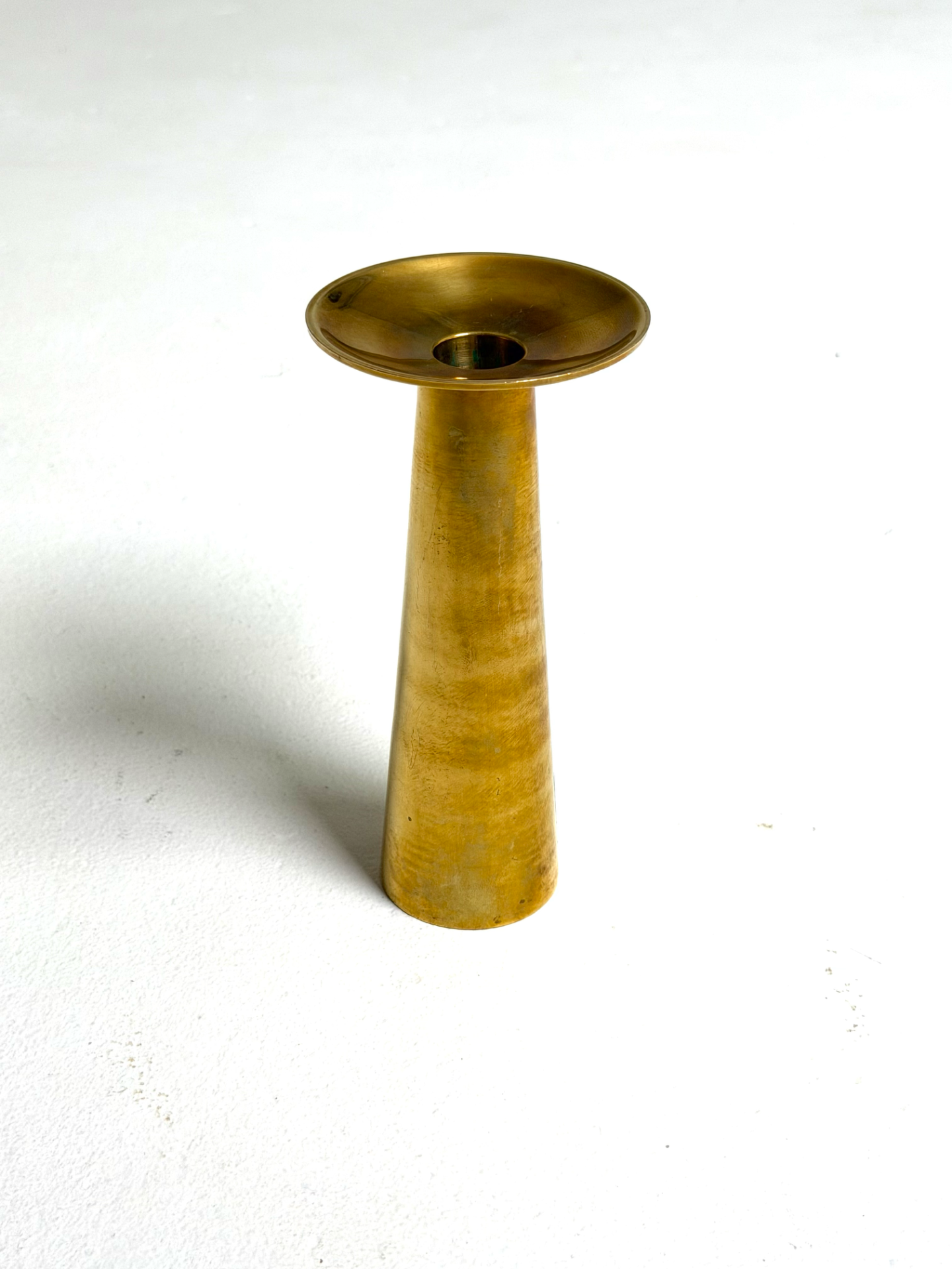 A versatile vintage brass piece from 1960s–70s Denmark. The conical shape and wide rim give it a timeless, minimalist look. Can be flipped upside down to use as a small vase. The beautiful patina adds character and speaks to its history — a sculptural and functional object in one.
