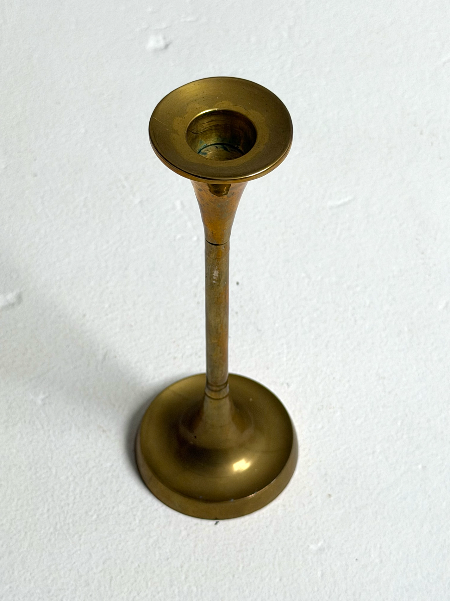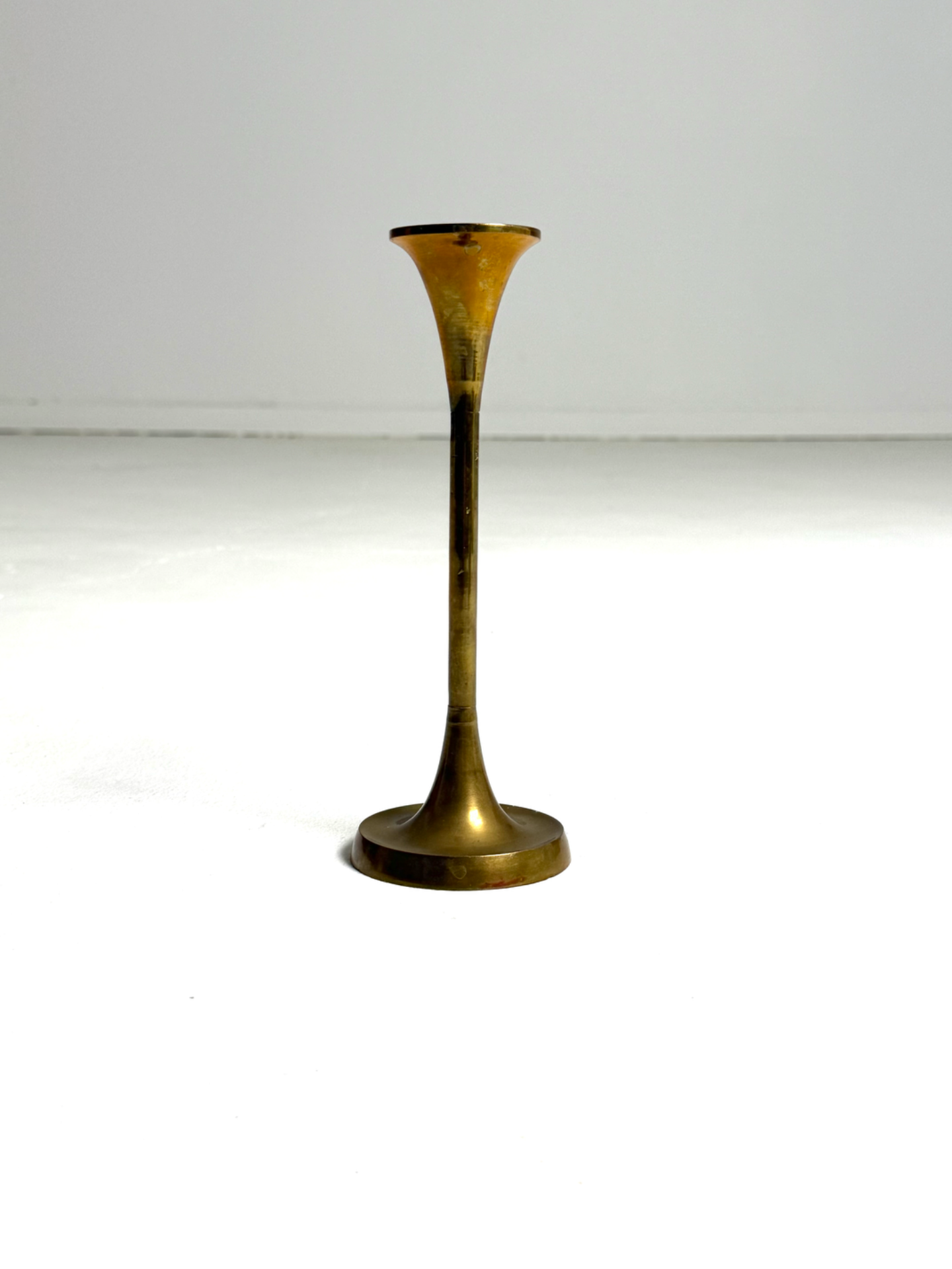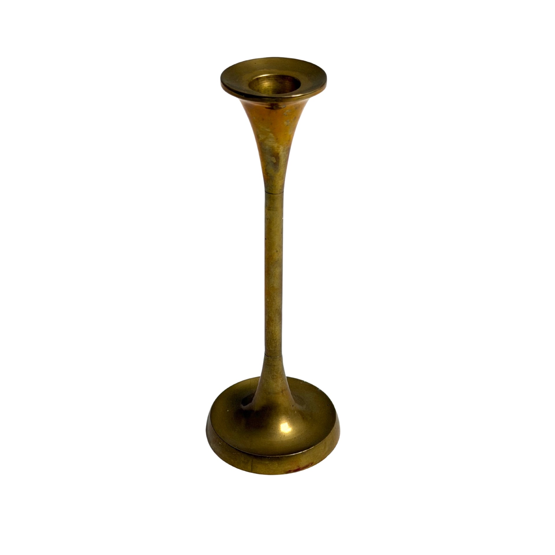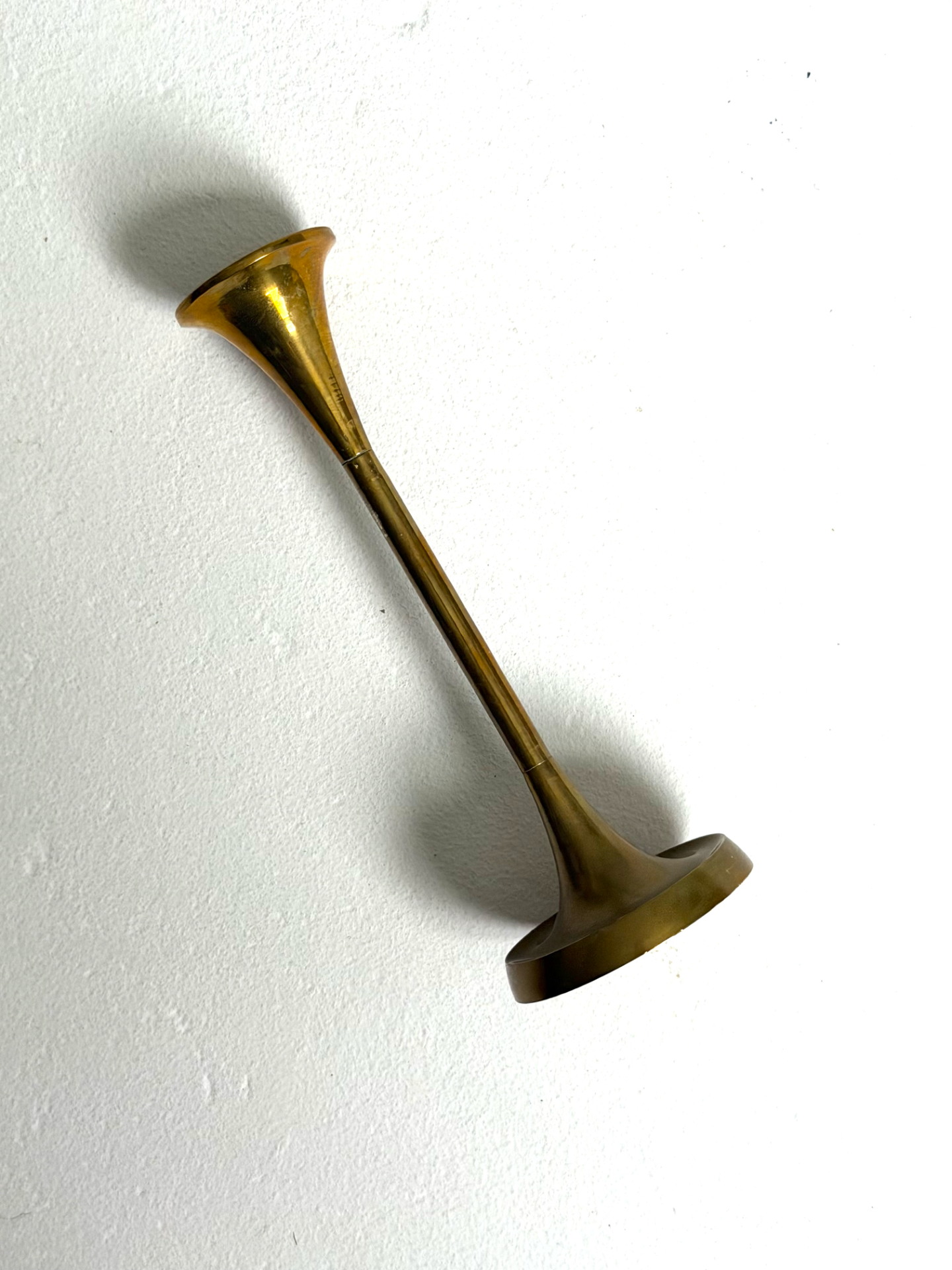 An elegant and slender brass candle holder from Denmark, dating to the 1960s–70s. Minimalist in design yet visually striking—perfect for table settings or adding a warm glow to your space. The lovely patina enhances its vintage charm.