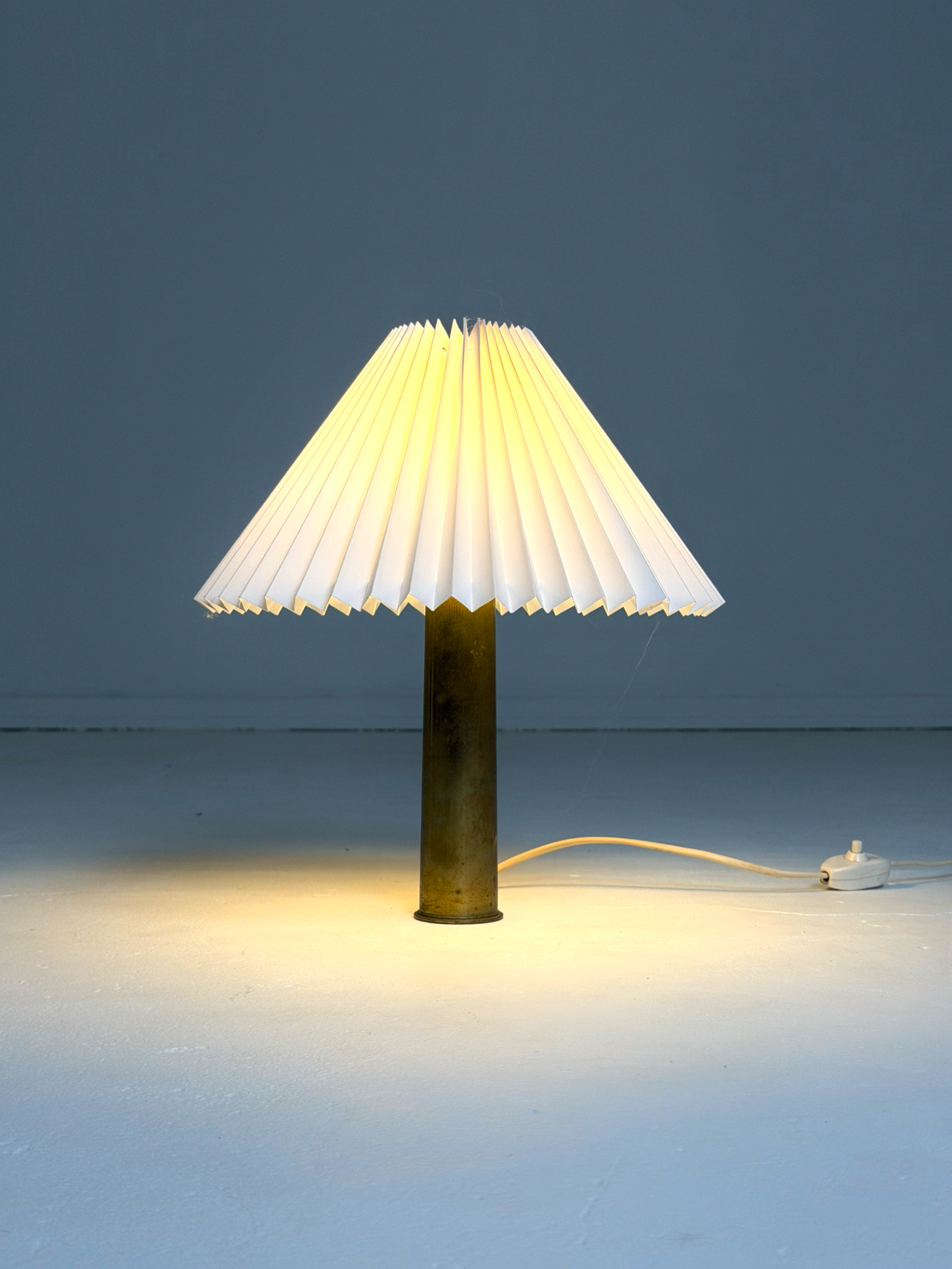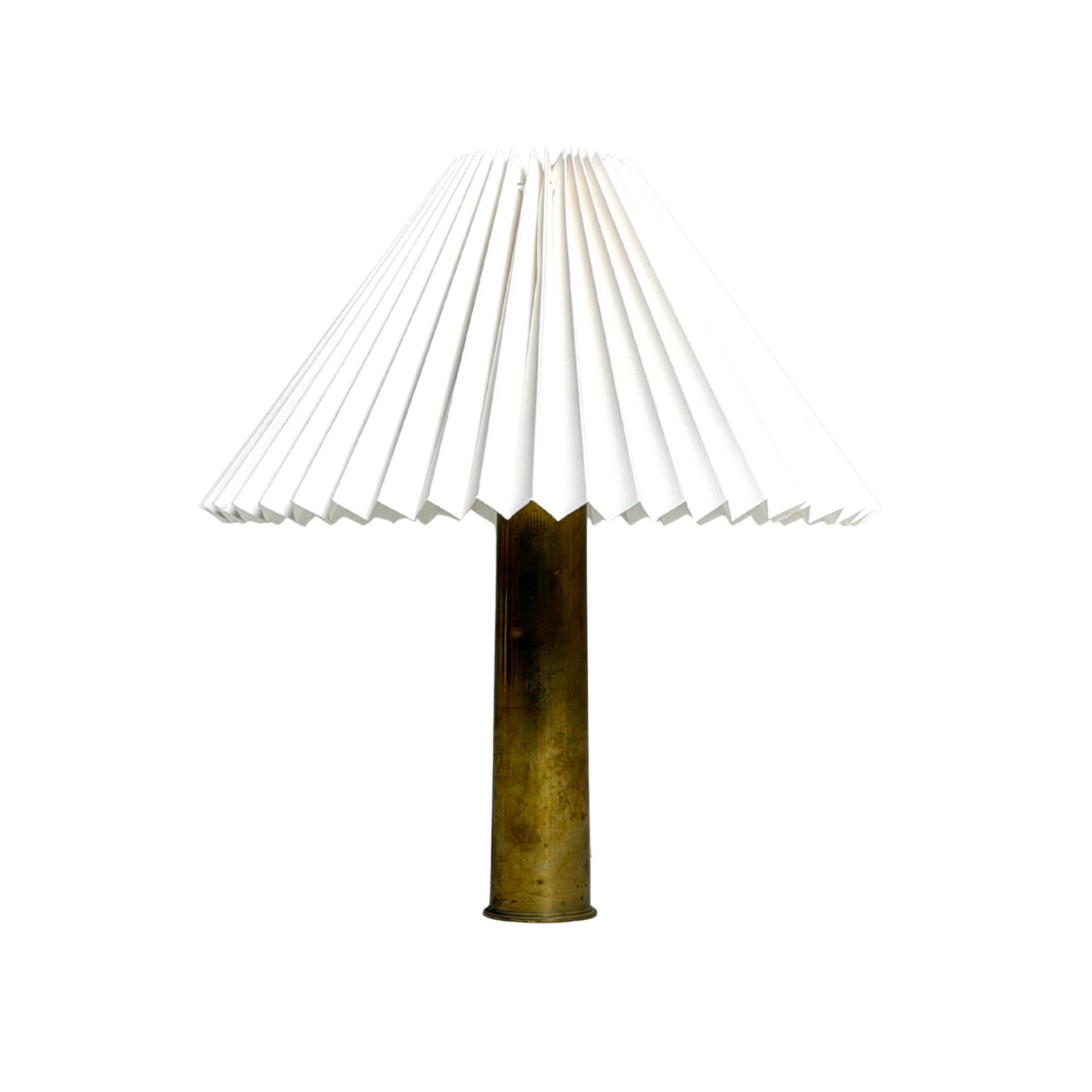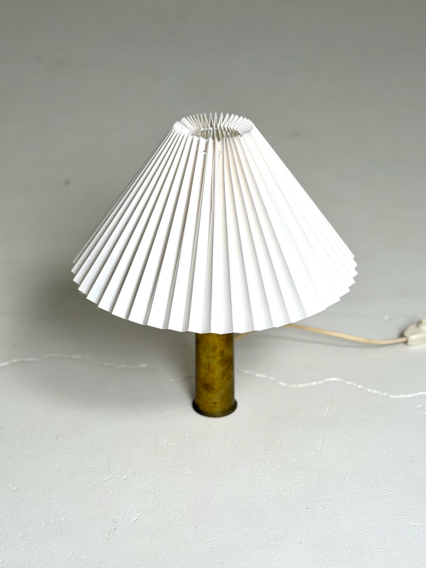 Brass Table Lamp with Pleated Shade – Denmark, 1950s–60s, Vintage