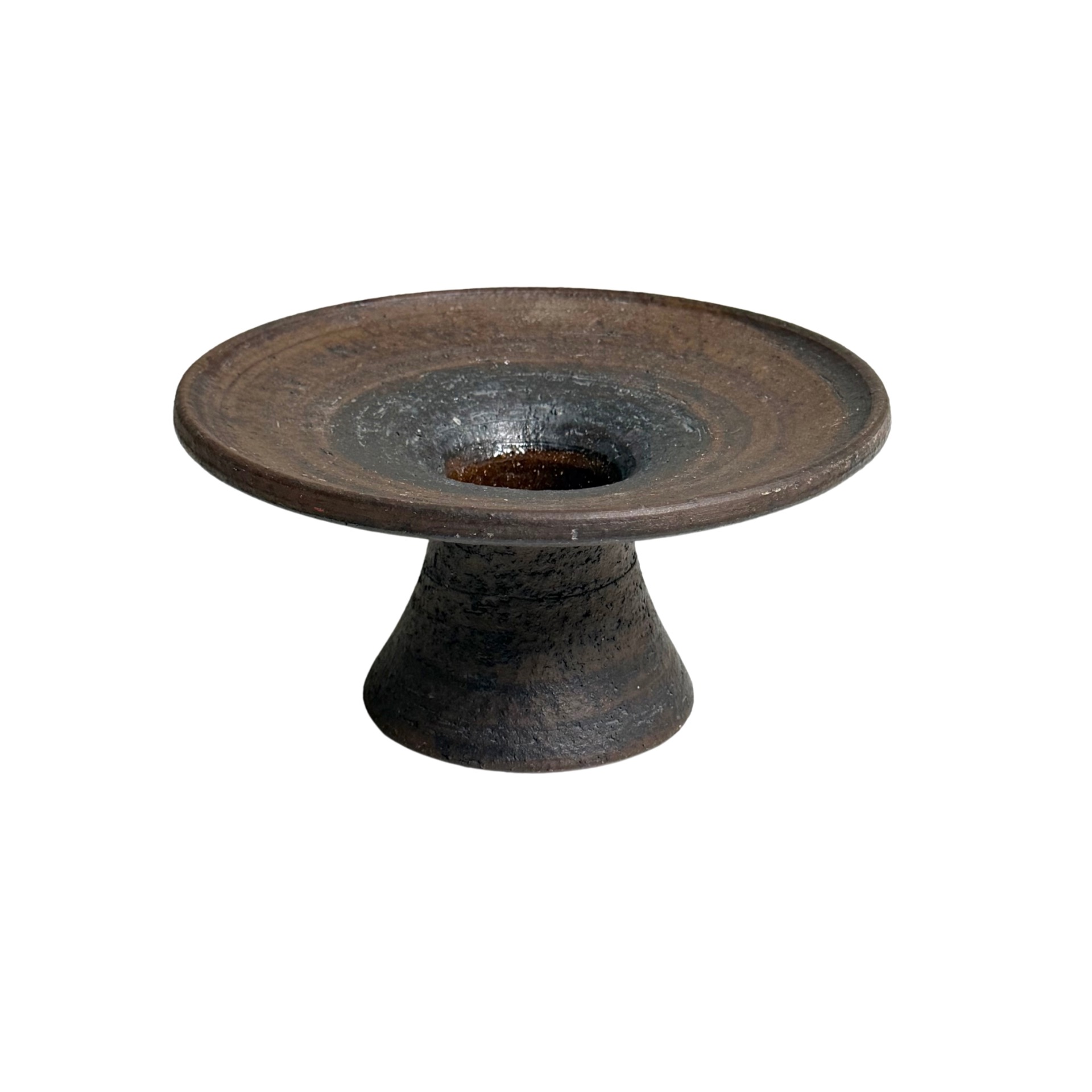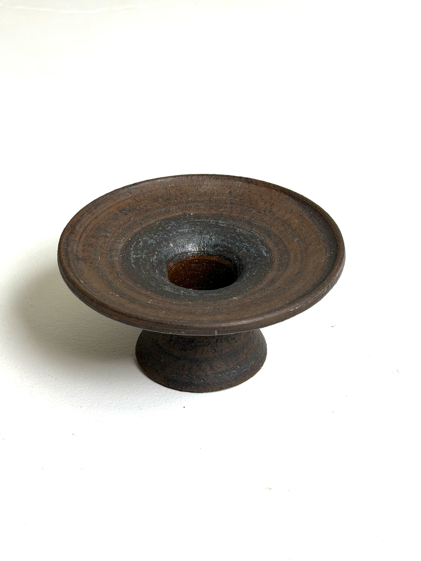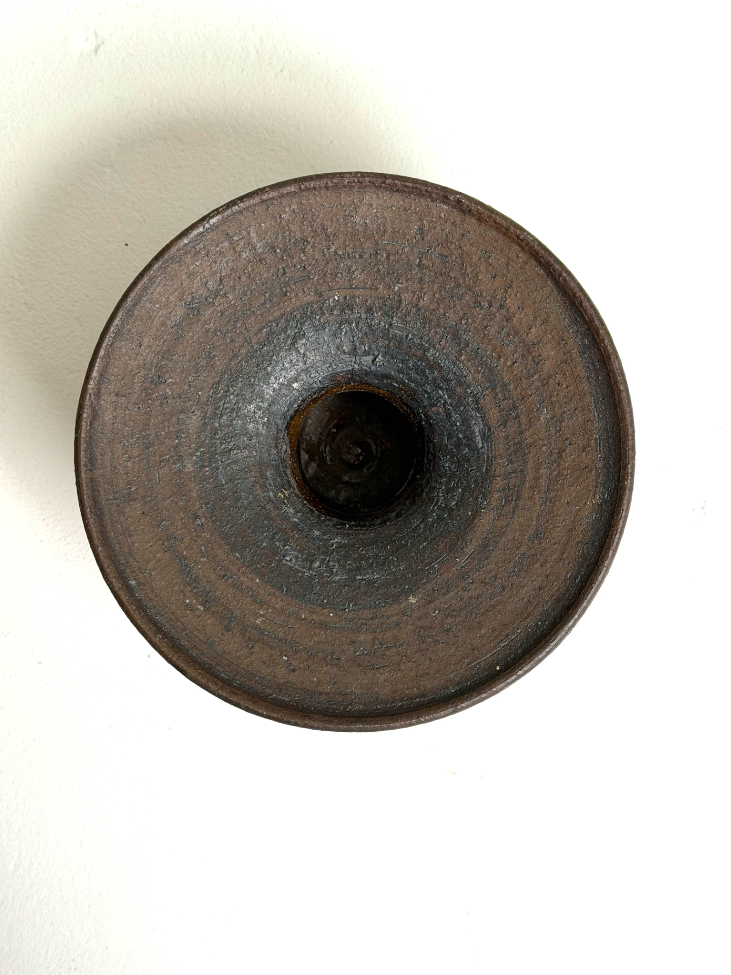 Danish ceramic candle holder or vase from the 1960s–70s. Earthy brown glaze and sculptural design make this a beautiful decorative piece. Handmade and in vintage condition.