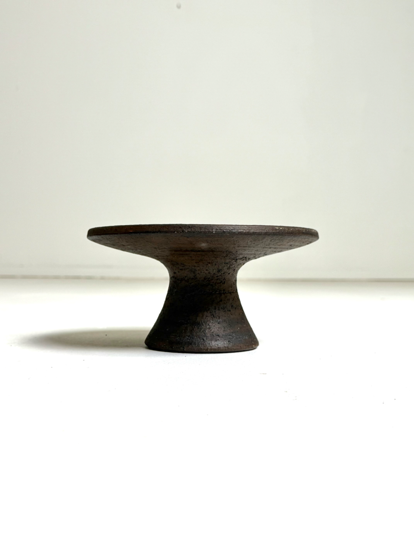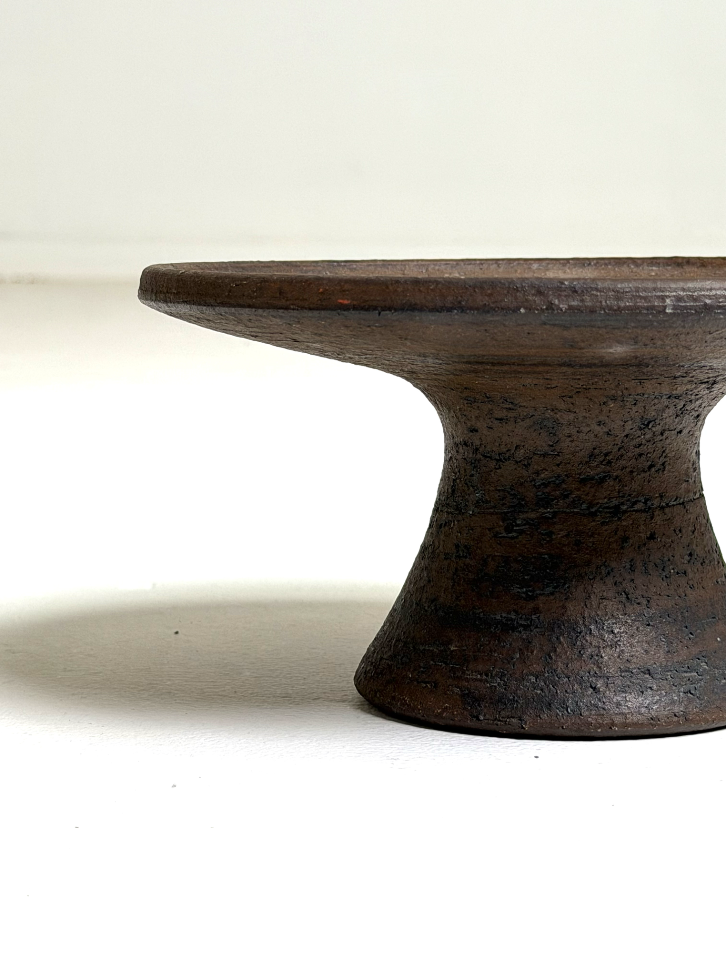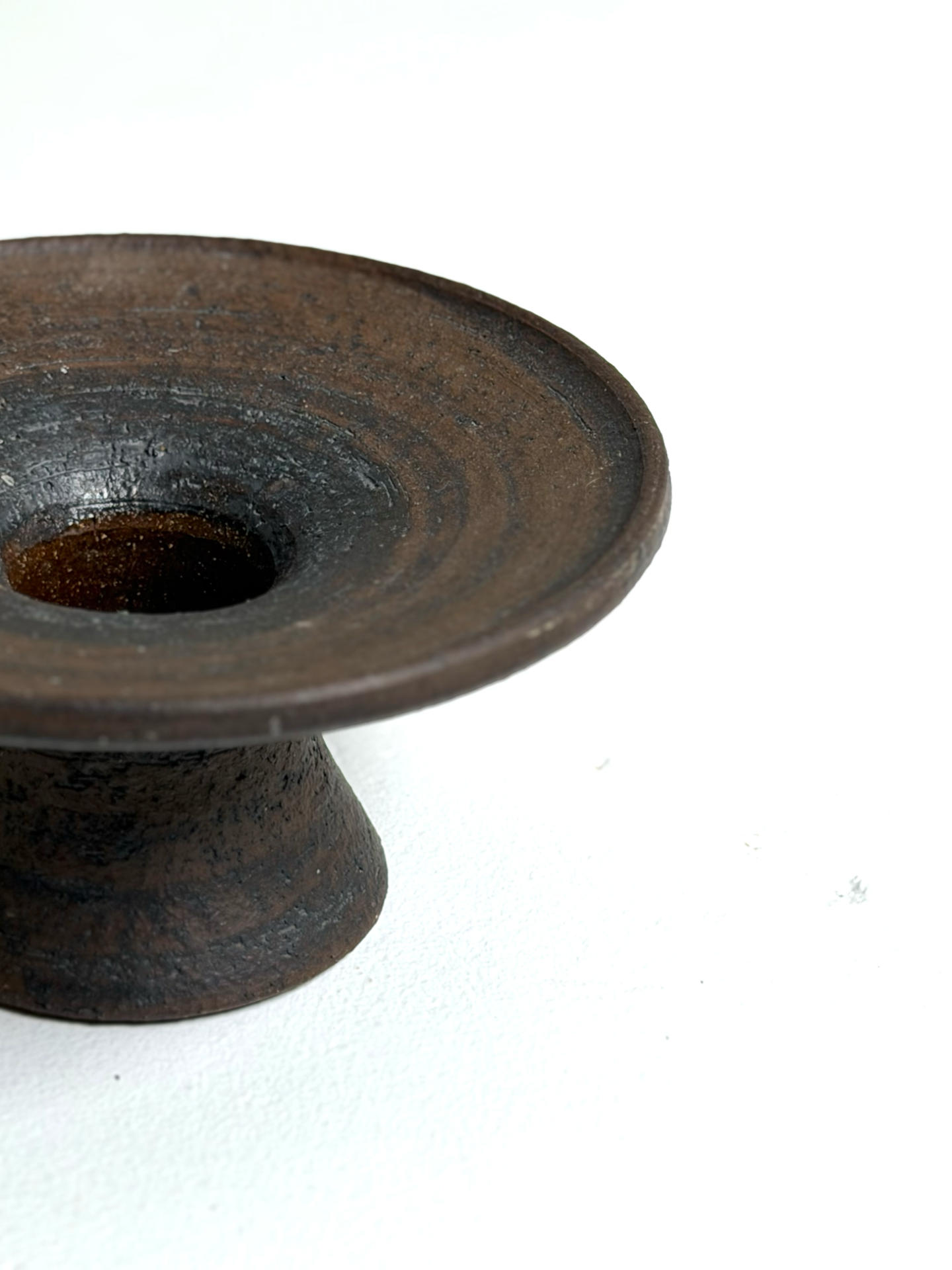 Danish ceramic candle holder or vase from the 1960s–70s. Earthy brown glaze and sculptural design make this a beautiful decorative piece. Handmade and in vintage condition.