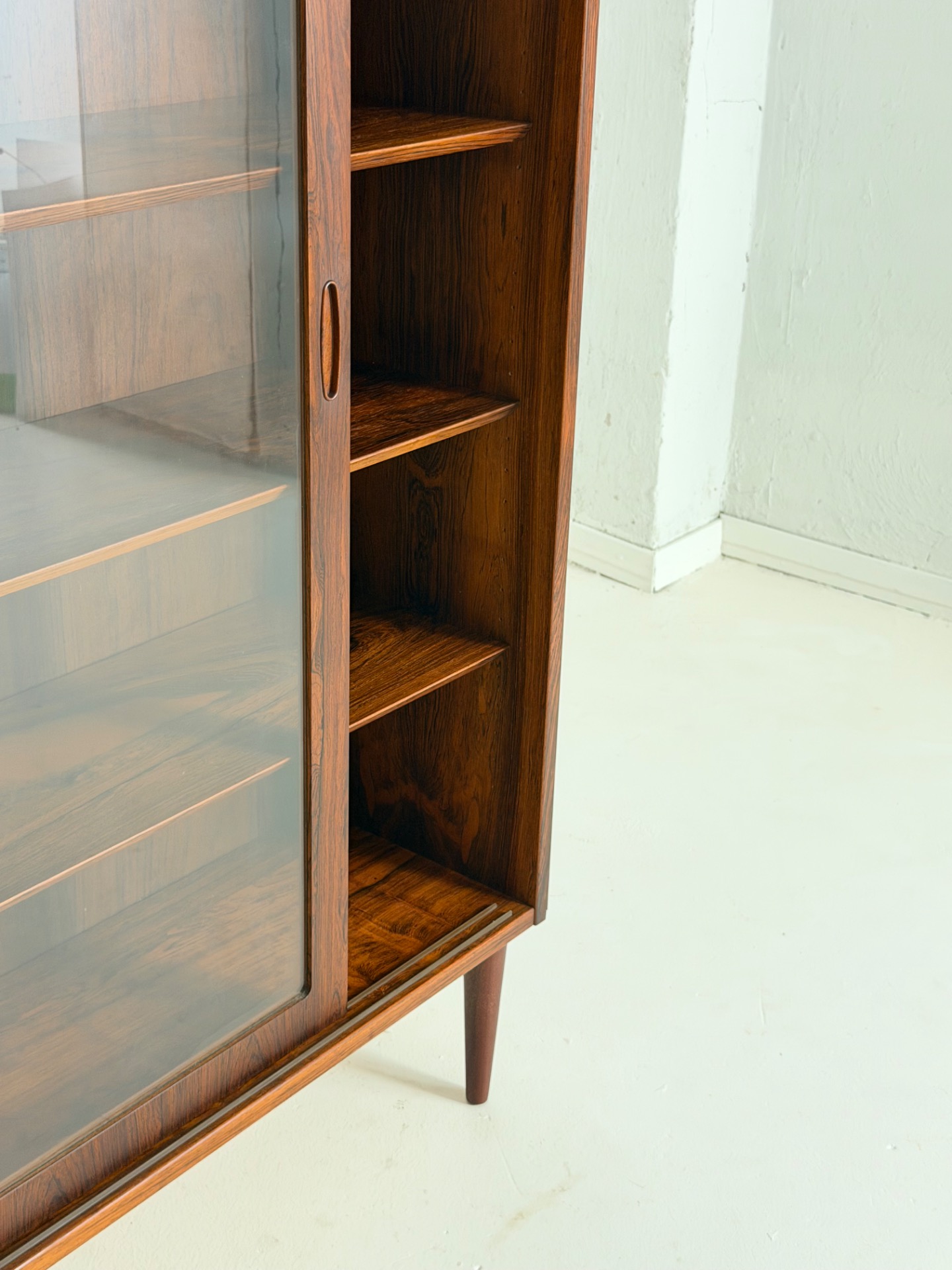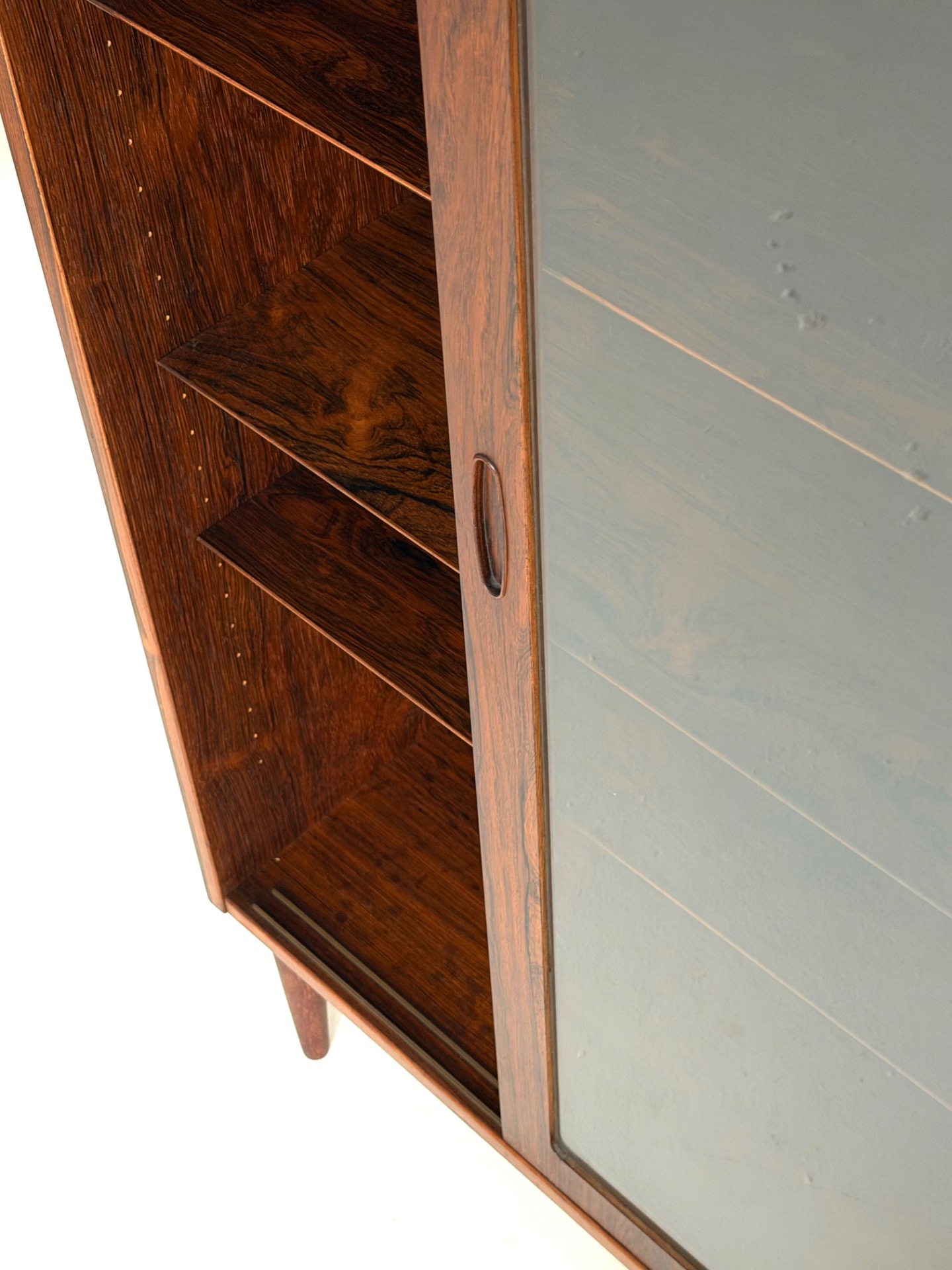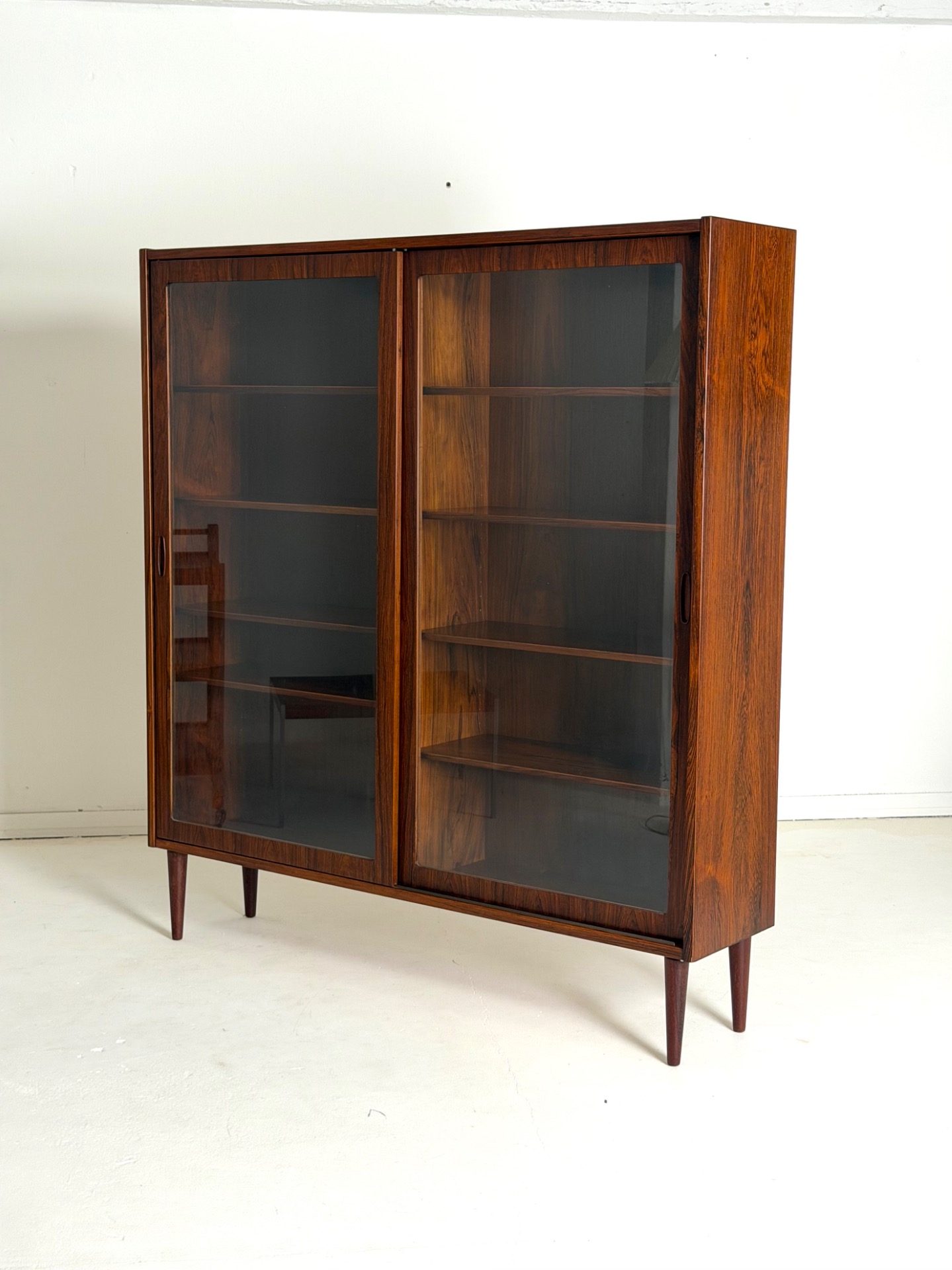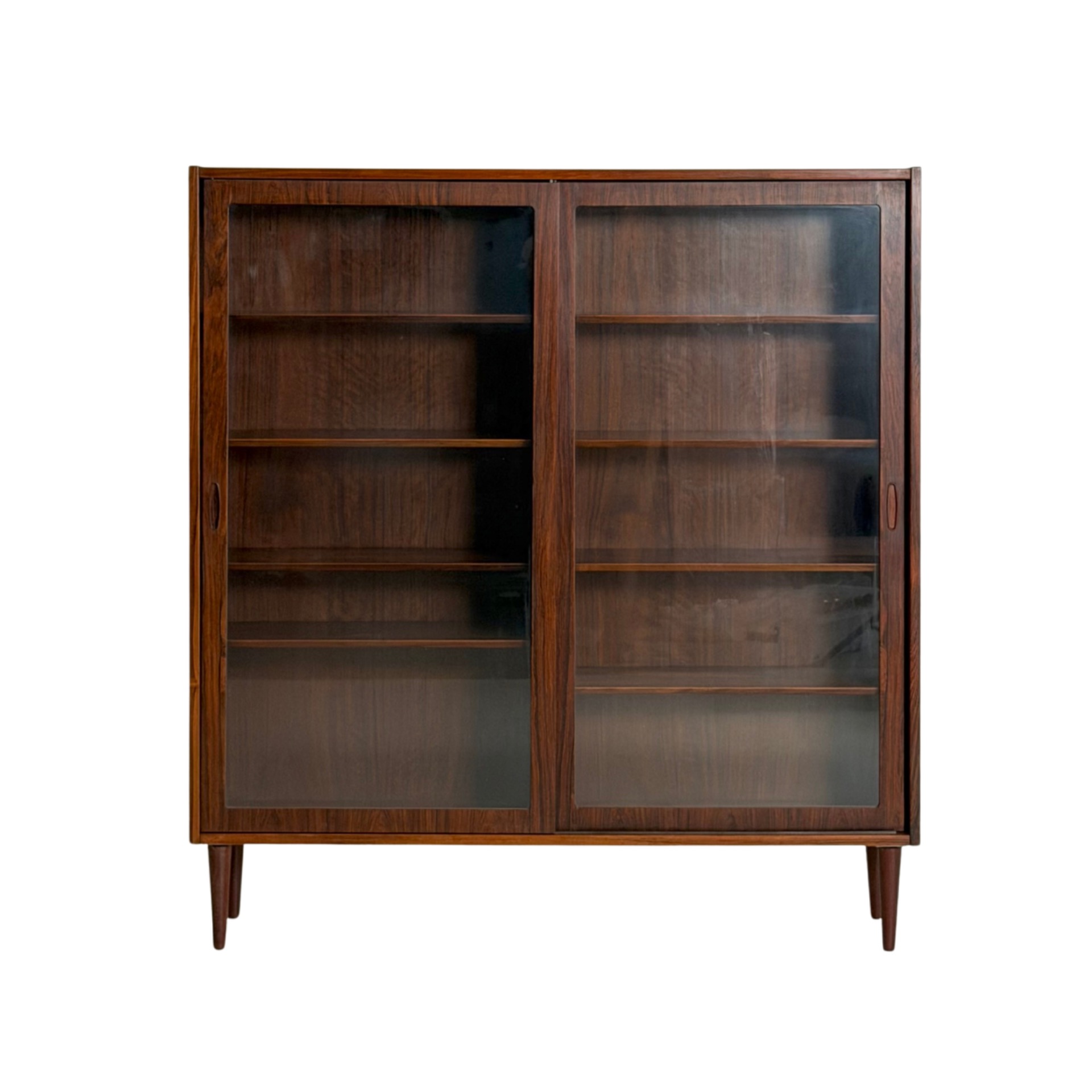 An elegant and substantial display cabinet crafted from beautiful rosewood, designed by Poul Hundevad. This Danish modern classic showcases refined craftsmanship and the rich, expressive grain of rosewood, making it a true statement piece.