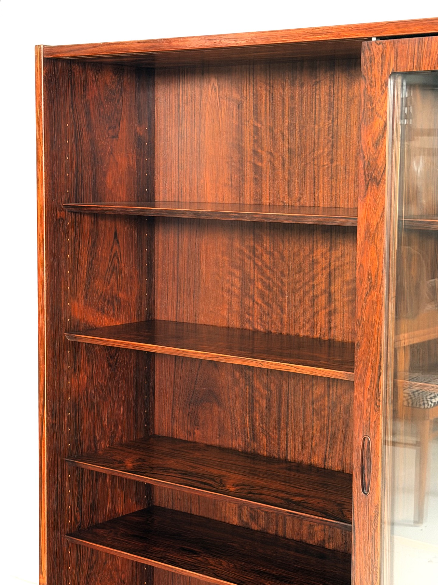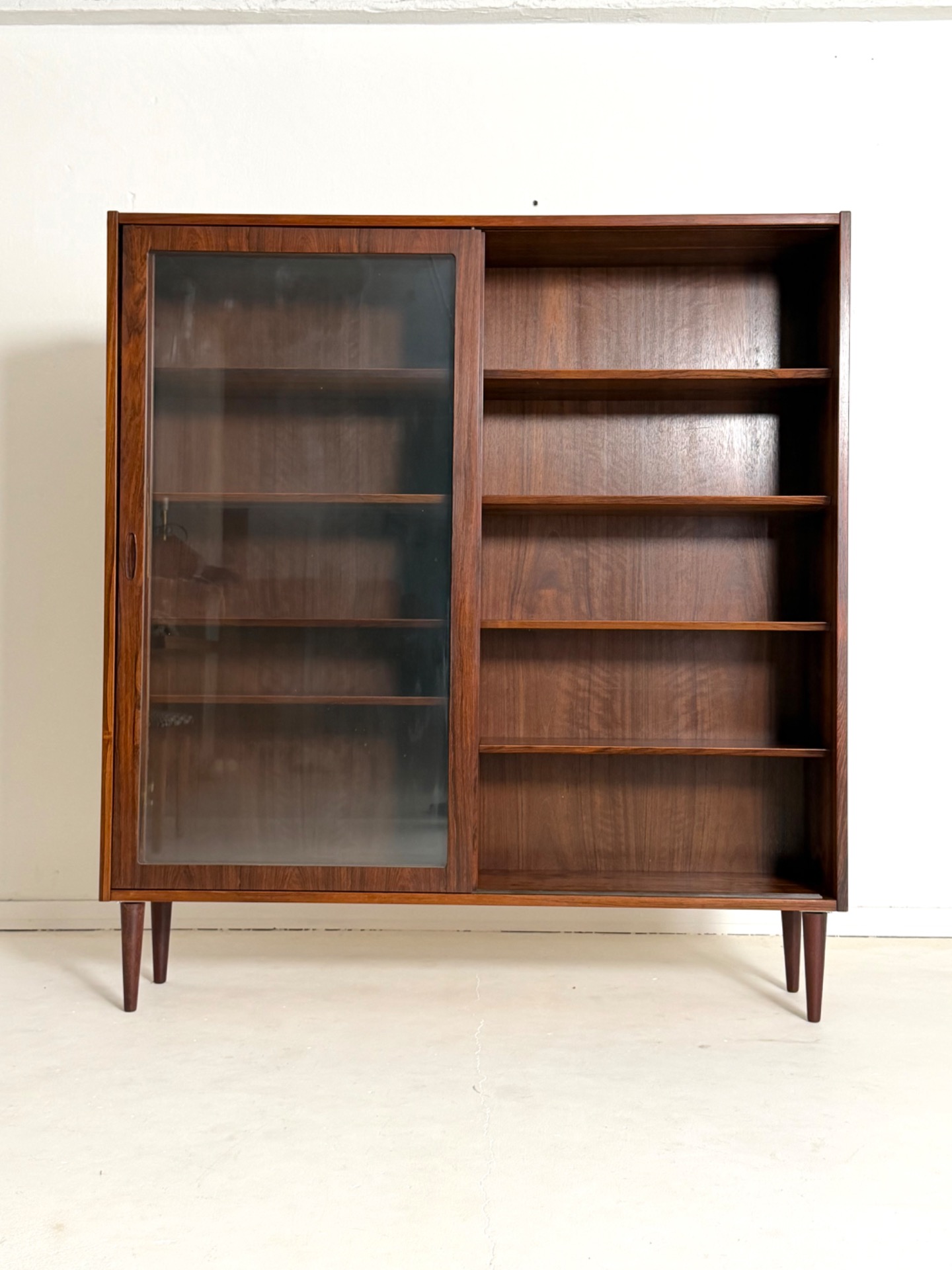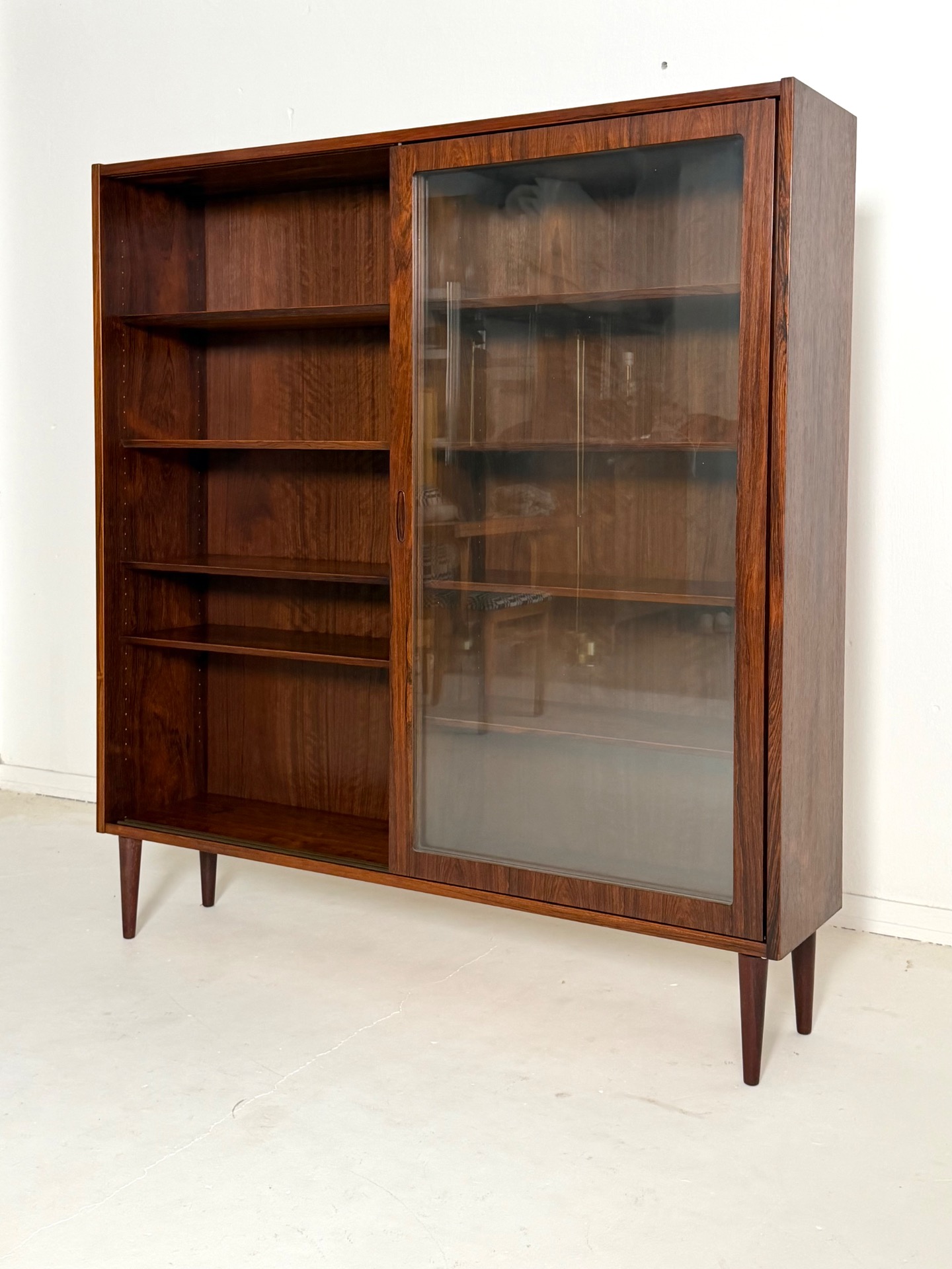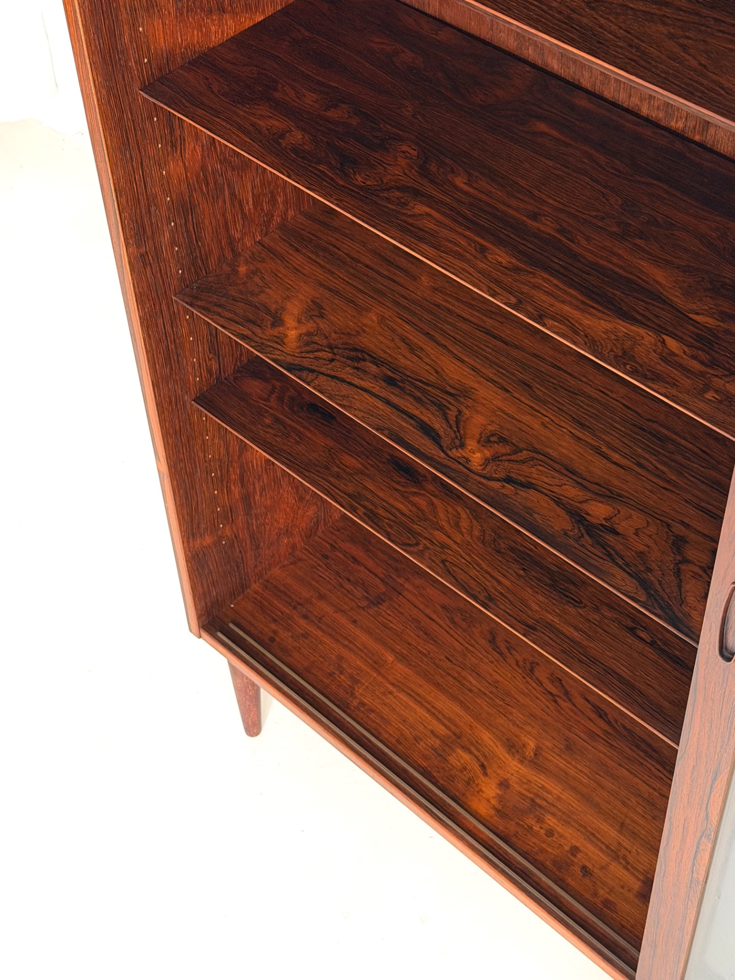 An elegant and substantial display cabinet crafted from beautiful rosewood, designed by Poul Hundevad. This Danish modern classic showcases refined craftsmanship and the rich, expressive grain of rosewood, making it a true statement piece.
