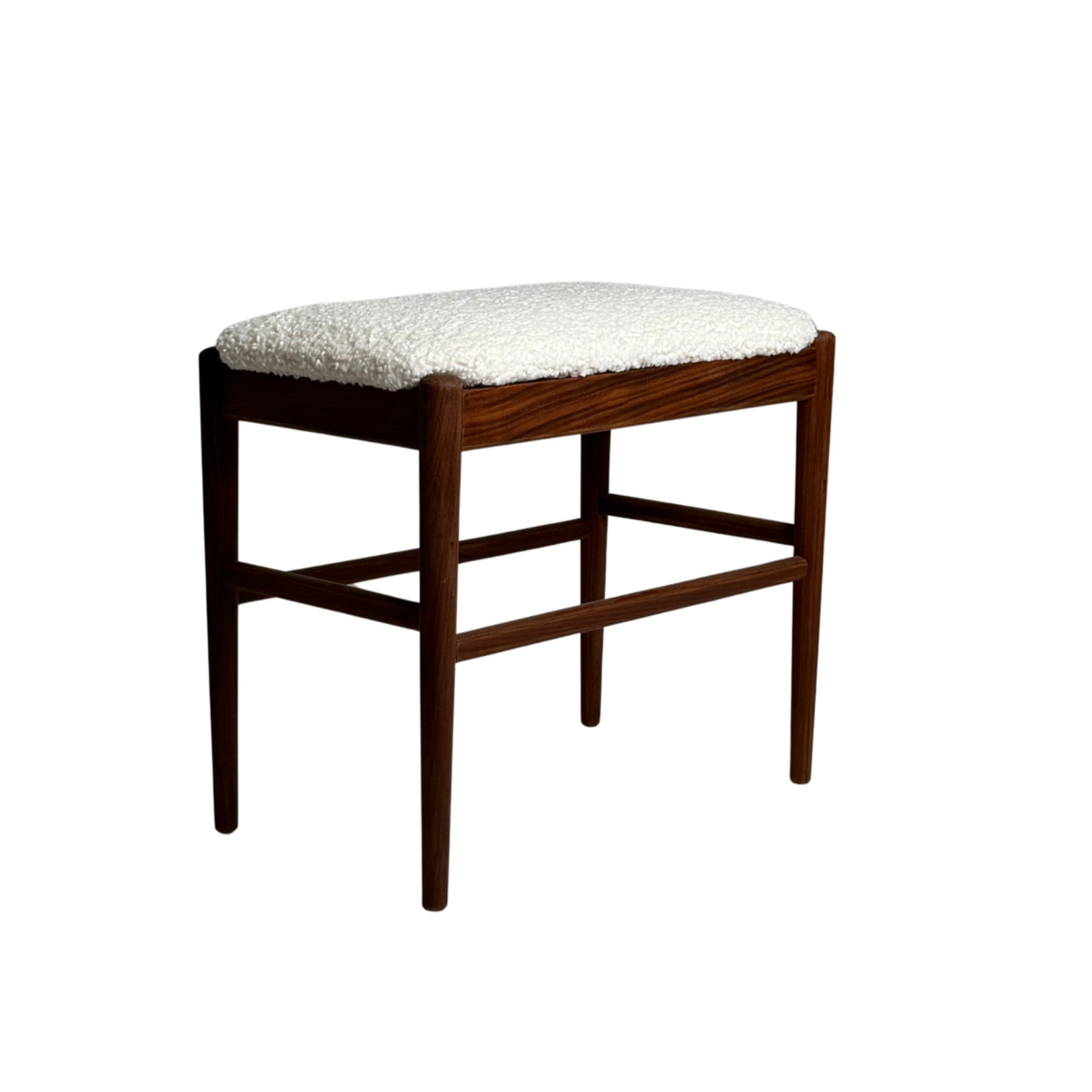 Tyylikkään 4205-tuolin tanskalaiselta Fritz Hansenilta on suunnitellut tunnettu parivaljakko Aksel Bender Madsen & Ejner Larsen vuonna 1955. Tuolissa on kauniisti kaartuva massiivitammirunko ja juuri uusittu valkoinen verhoilu, joka tuo raikkaan ilmeen klassiseen muotoiluun. Erinomainen yhdistelmä mukavuutta ja skandinaavista estetiikkaa ruokapöydän tai työpisteen ääreen sekä kevytnojatuoliksi olohuoneeseen.