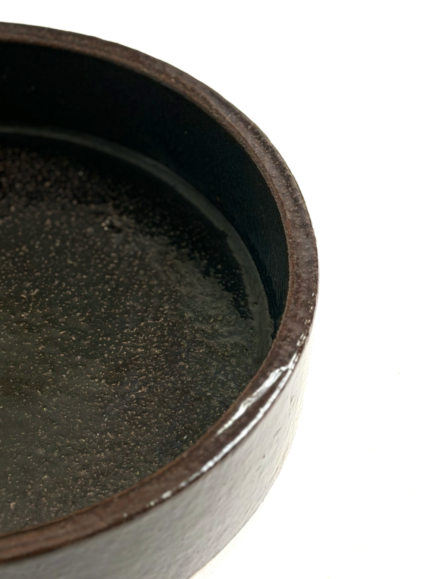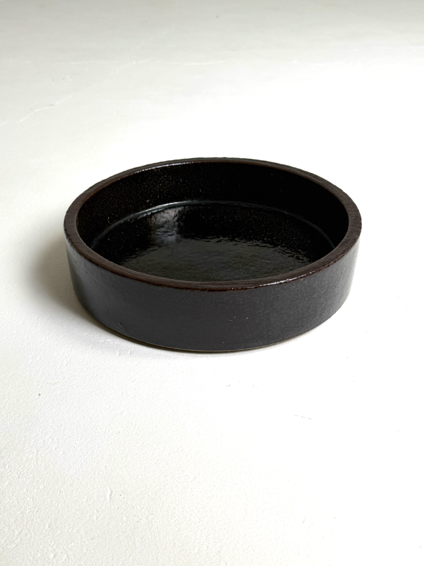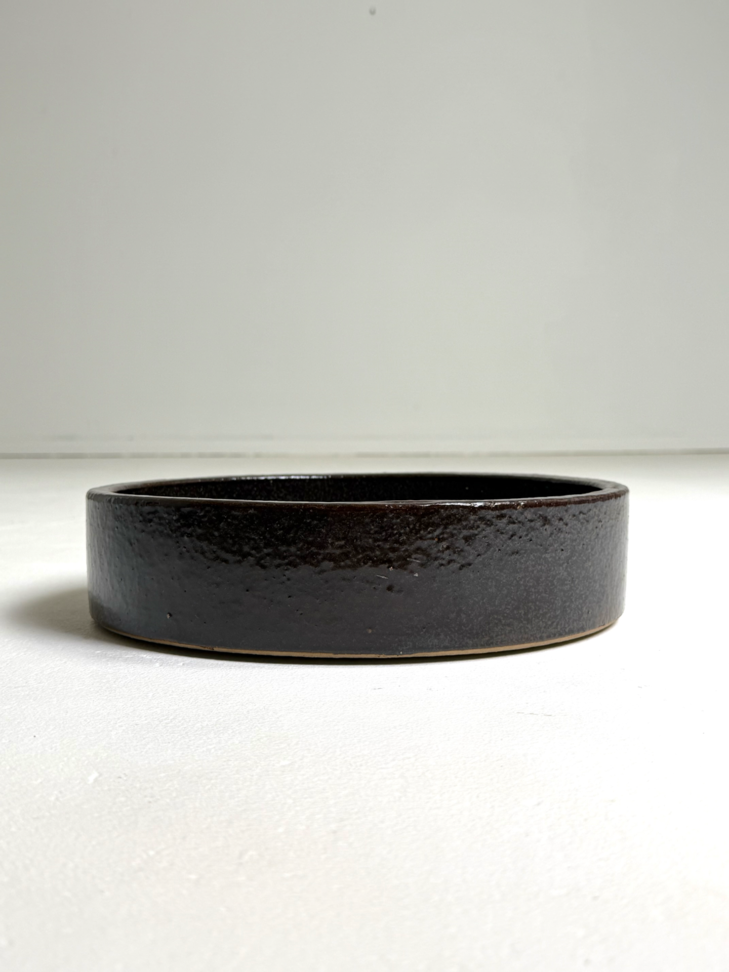 Ajattoman tyylikäs, tummasävyinen vintage-kulho Haslen tuotannosta. Käsintehty Tanskassa 1960–70-luvulla. Suuri koko ja pelkistetty muotoilu tekevät kulhosta näyttävän sisustuselementin tai käytännöllisen tarjoiluastian.