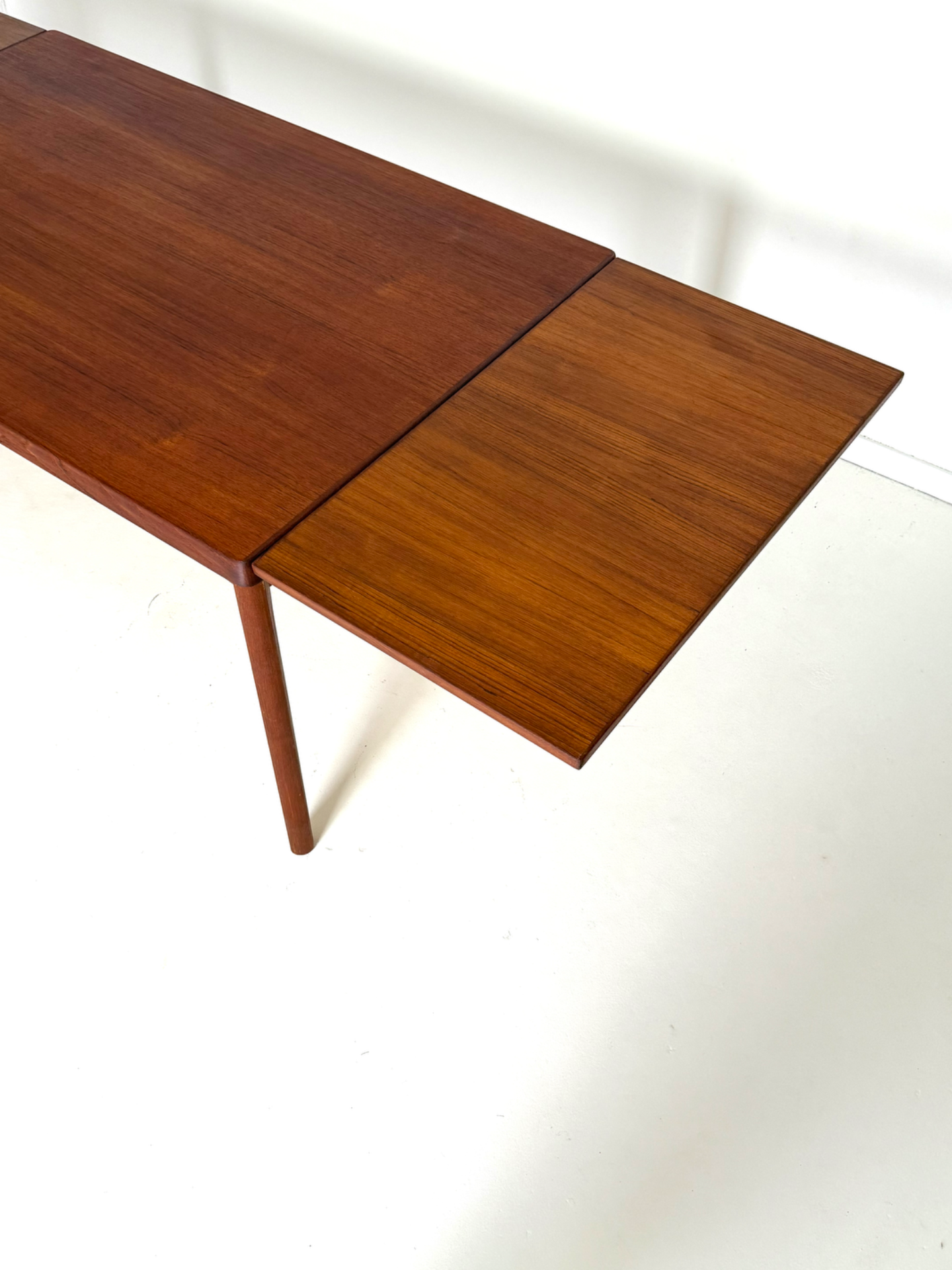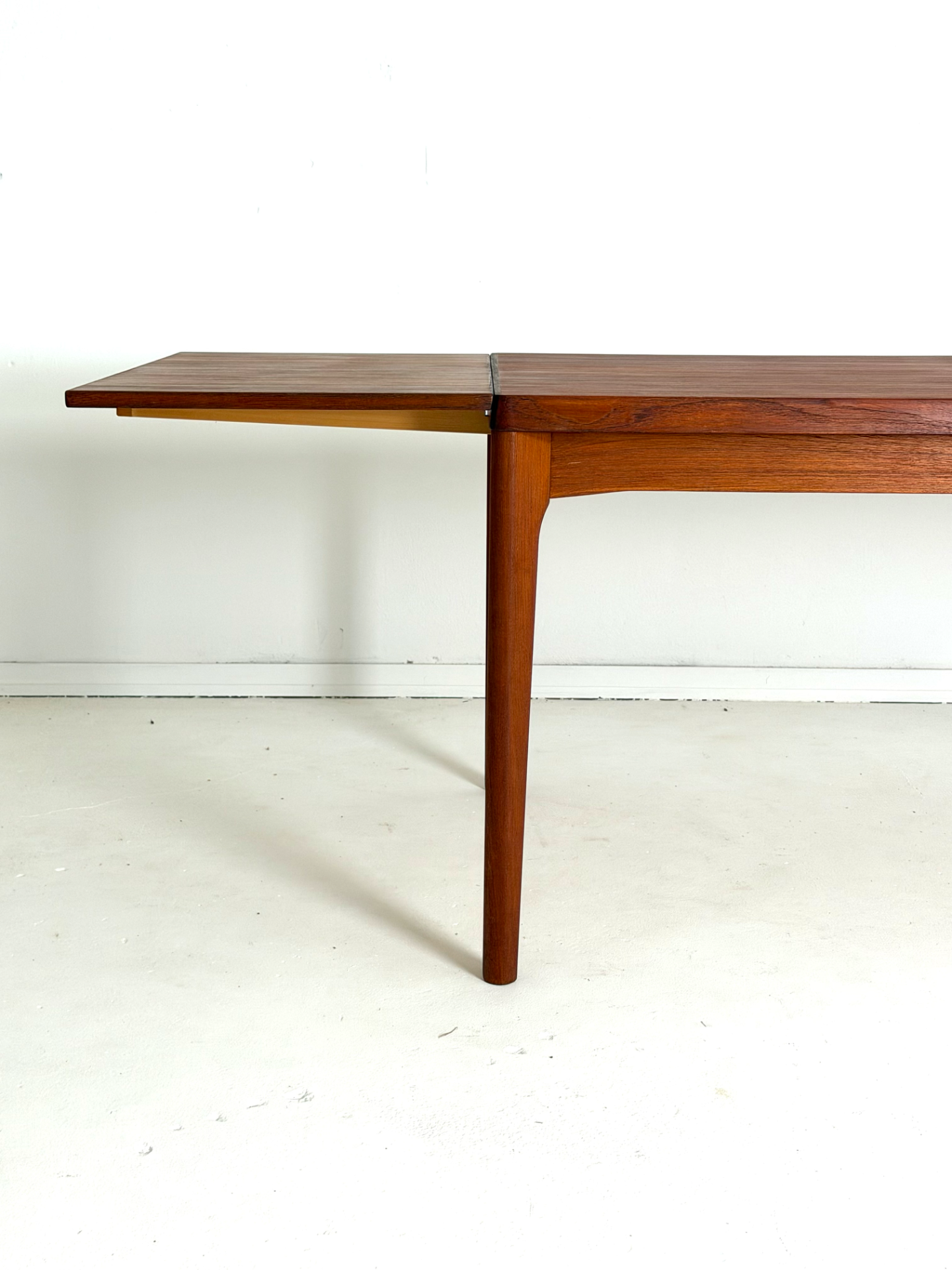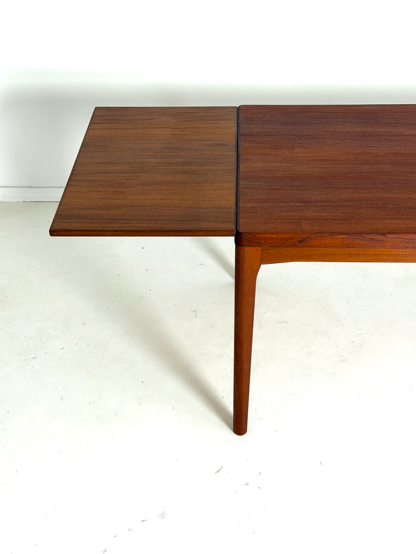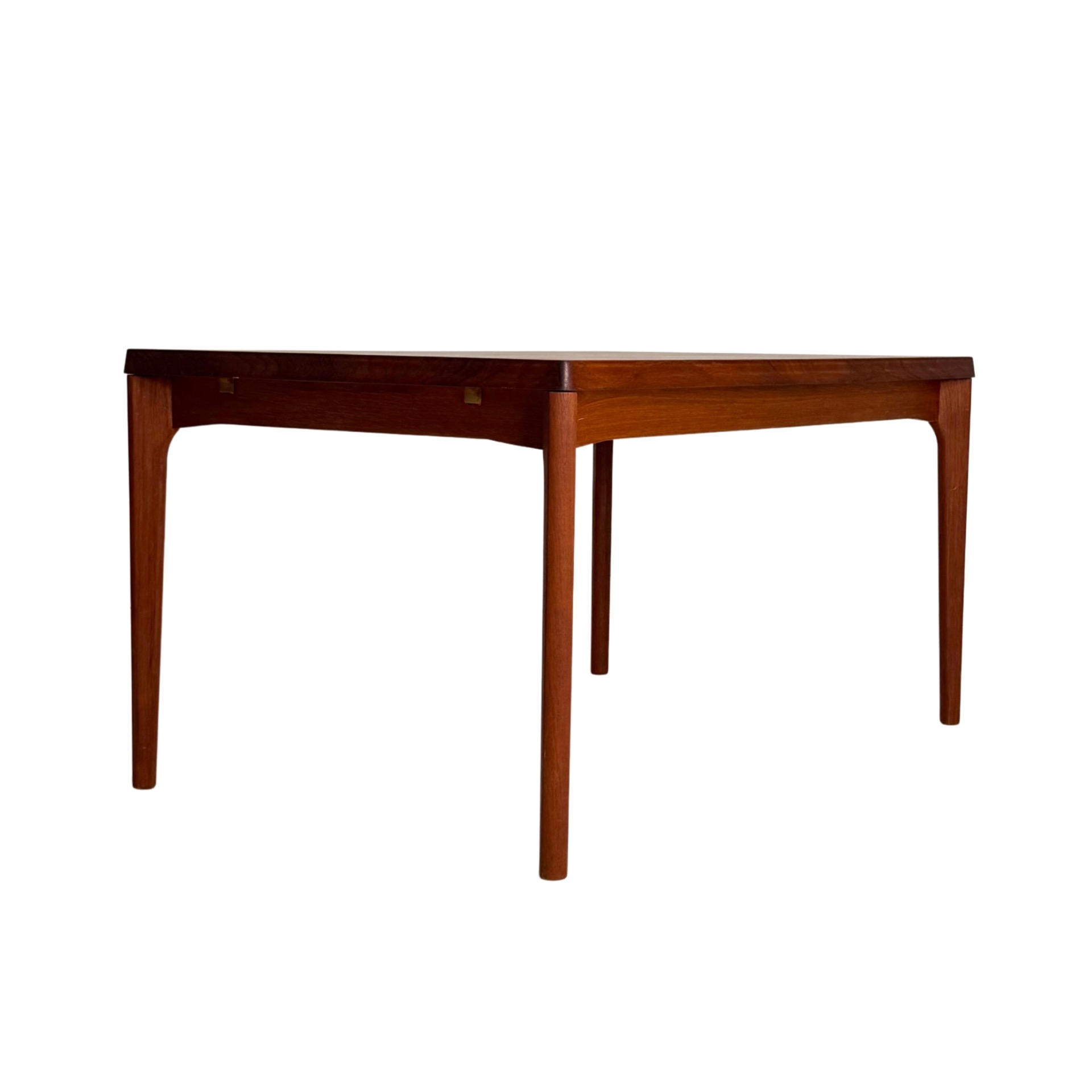 Danish vintage dining table from the 1960s, designed by Henning Kjærnulf and manufactured by Vejle Stolefabrik. The table is extendable from both ends, with extension leaves cleverly hidden under the tabletop. Crafted in beautiful teak with refined details. A timeless and functional piece for any dining area.