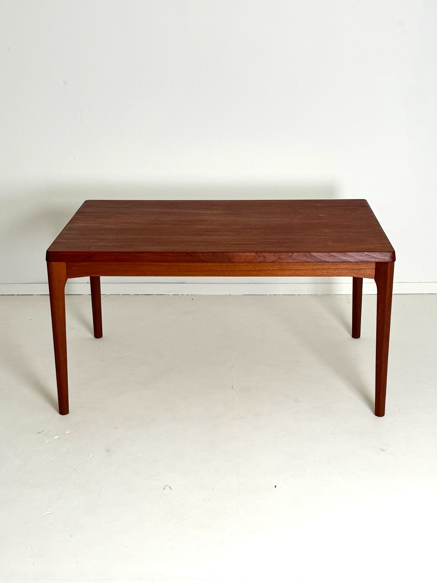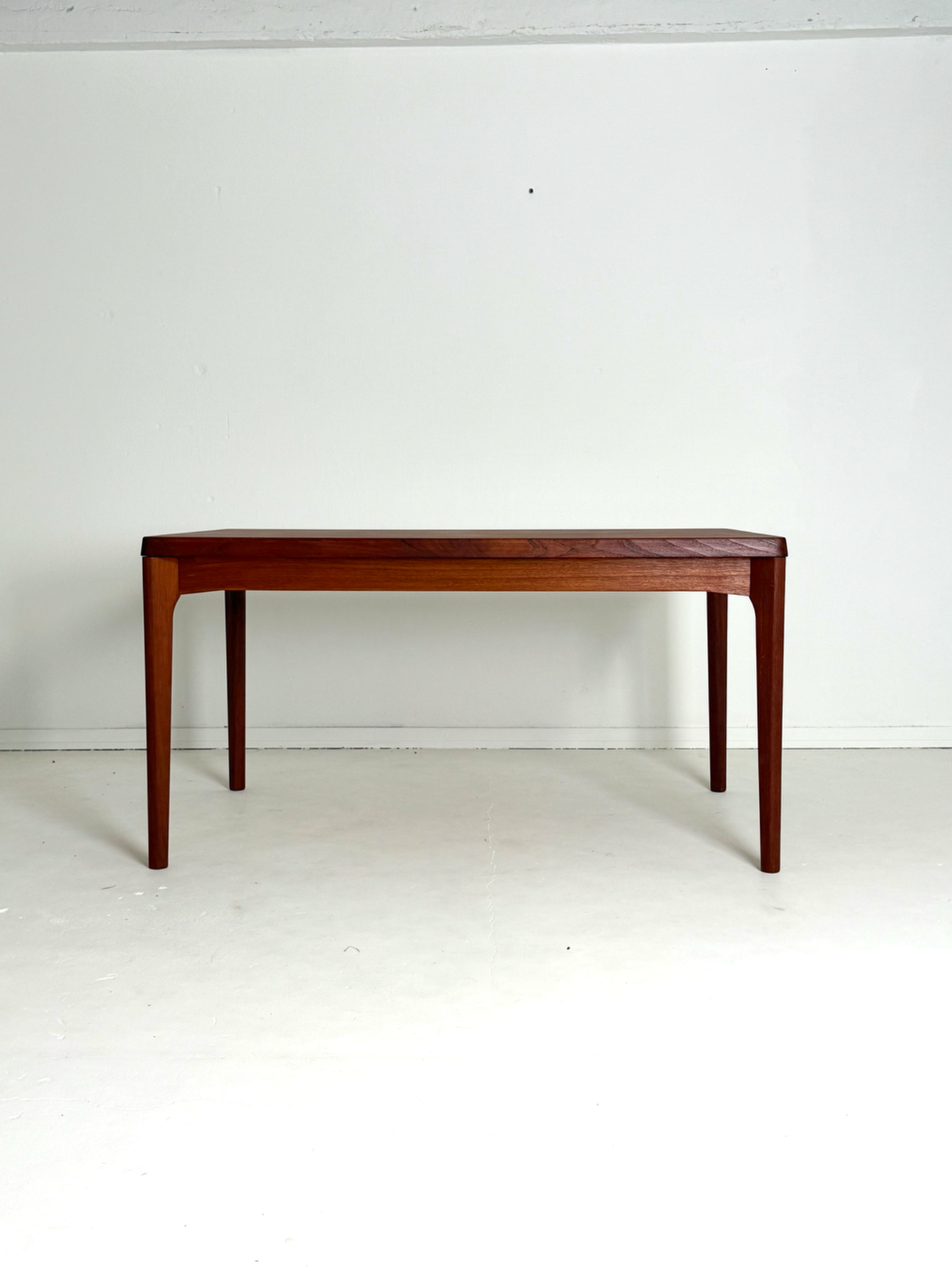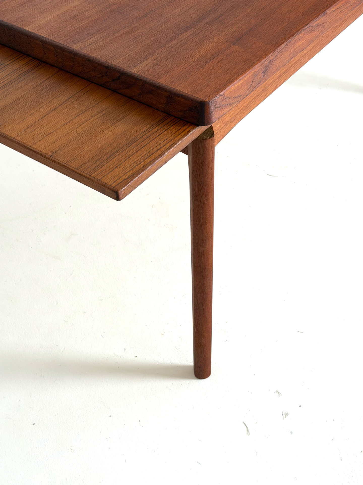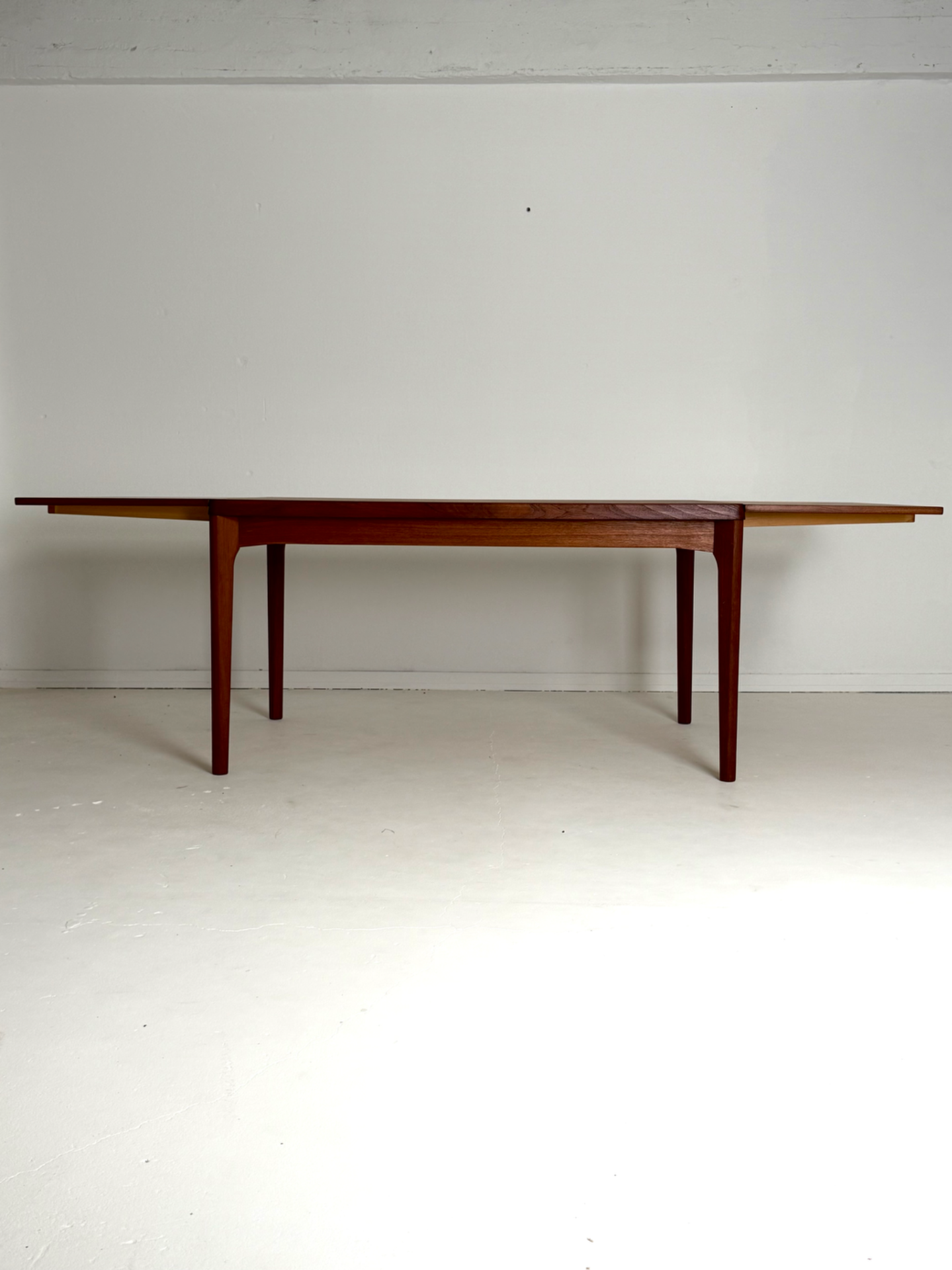 Danish vintage dining table from the 1960s, designed by Henning Kjærnulf and manufactured by Vejle Stolefabrik. The table is extendable from both ends, with extension leaves cleverly hidden under the tabletop. Crafted in beautiful teak with refined details. A timeless and functional piece for any dining area.