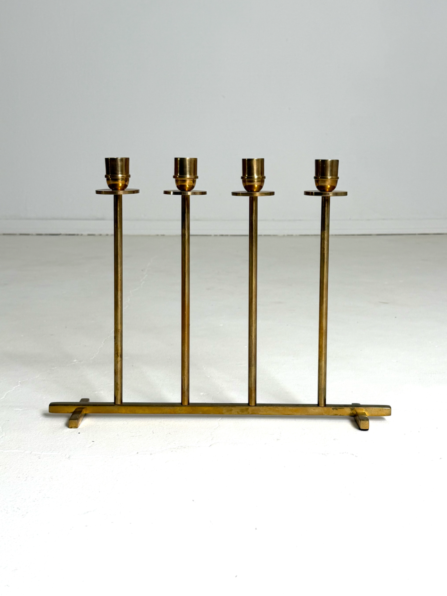 Tyylikäs ja moderni Alto-kynttelikkö ruotsalaiselta Hilke Collectionilta. Kynttelikön muotokieli on minimalistinen ja arkkitehtoninen, ja se toimii upeana katseenvangitsijana niin juhlapöydässä kuin arjen sisustuselementtinä. Valmistettu kiillotetusta messingistä, joka patinoituu kauniisti ajan myötä. Neljälle kynttilälle tarkoitettu Alto on ajaton ja laadukas valinta skandinaavisen kodin tunnelmavalaistukseen.