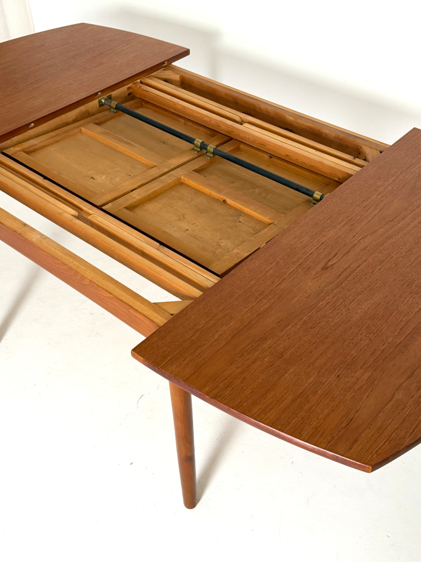 Jatkettava tiikkipöytä – Svend Aage Madsen, Næstved Møbelfabrik, 1960-luku