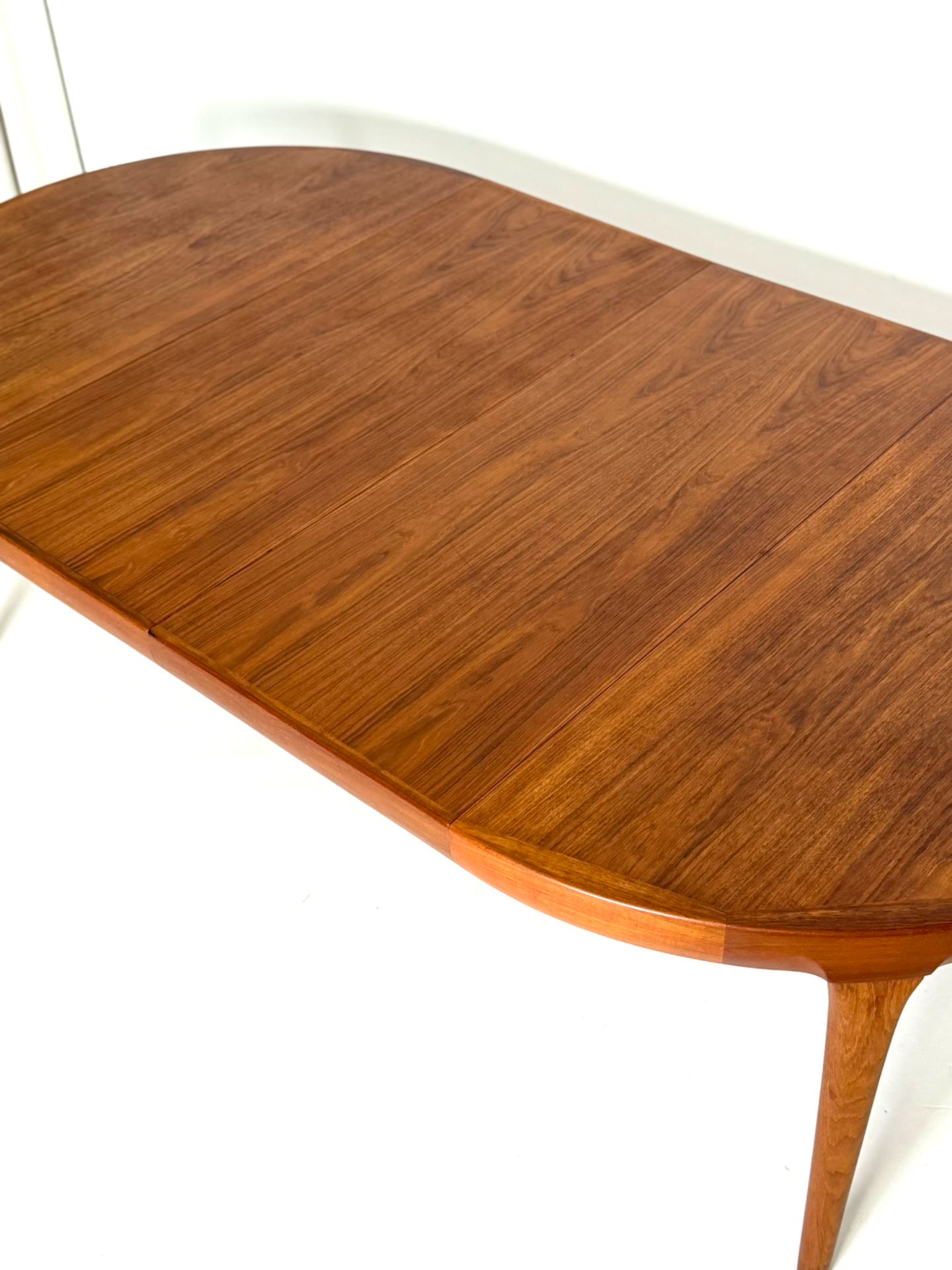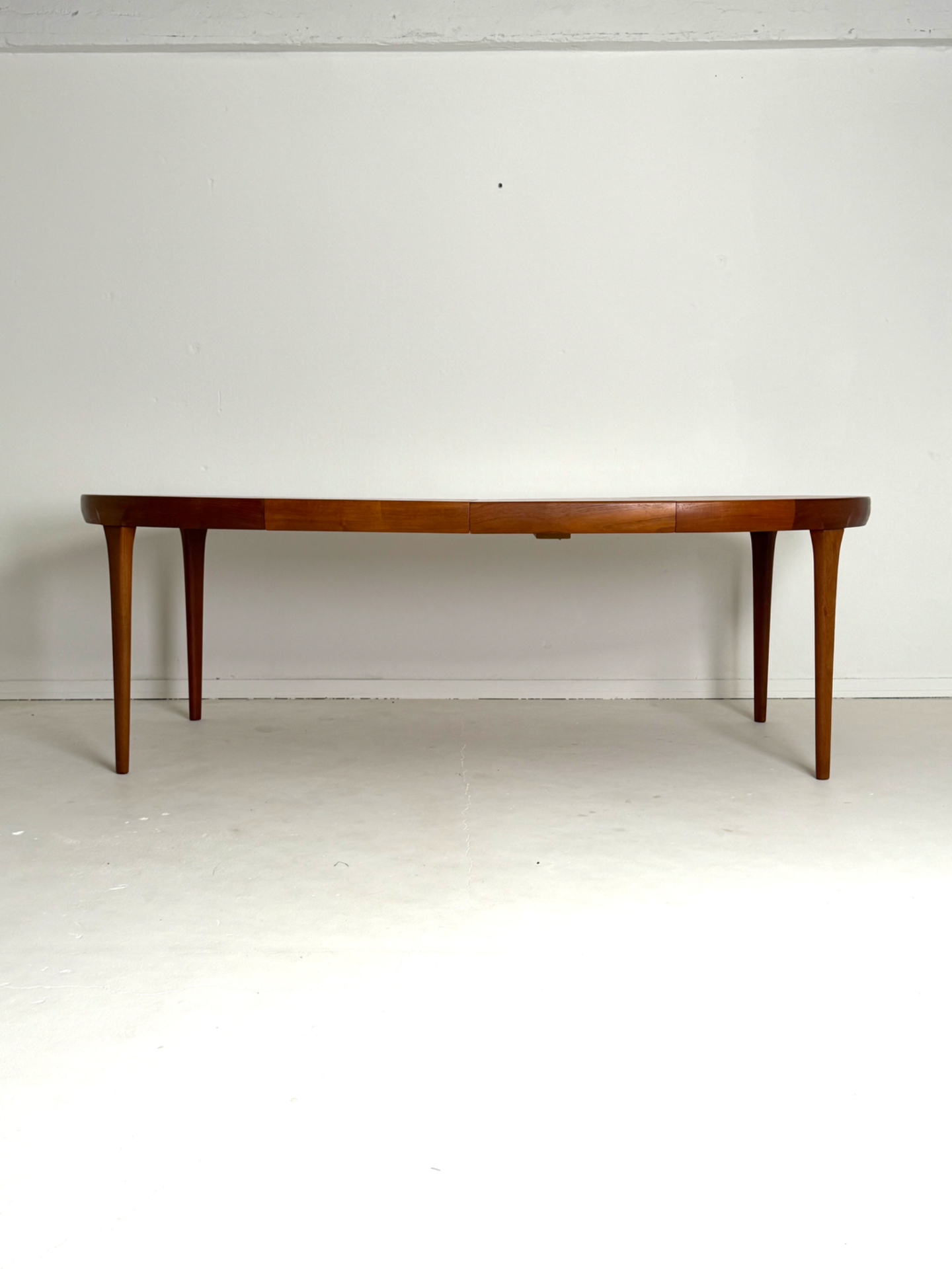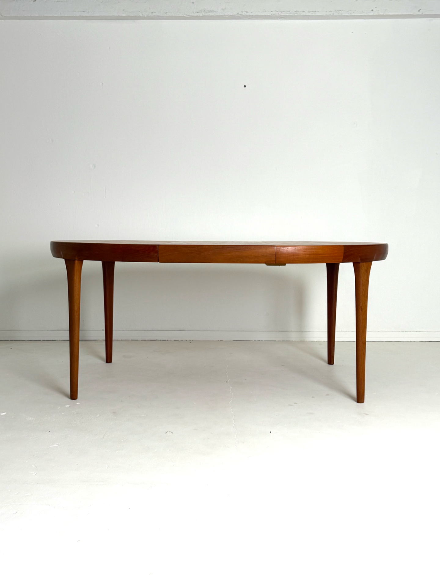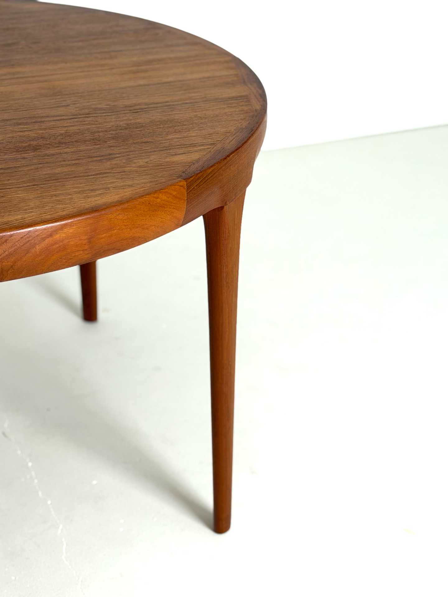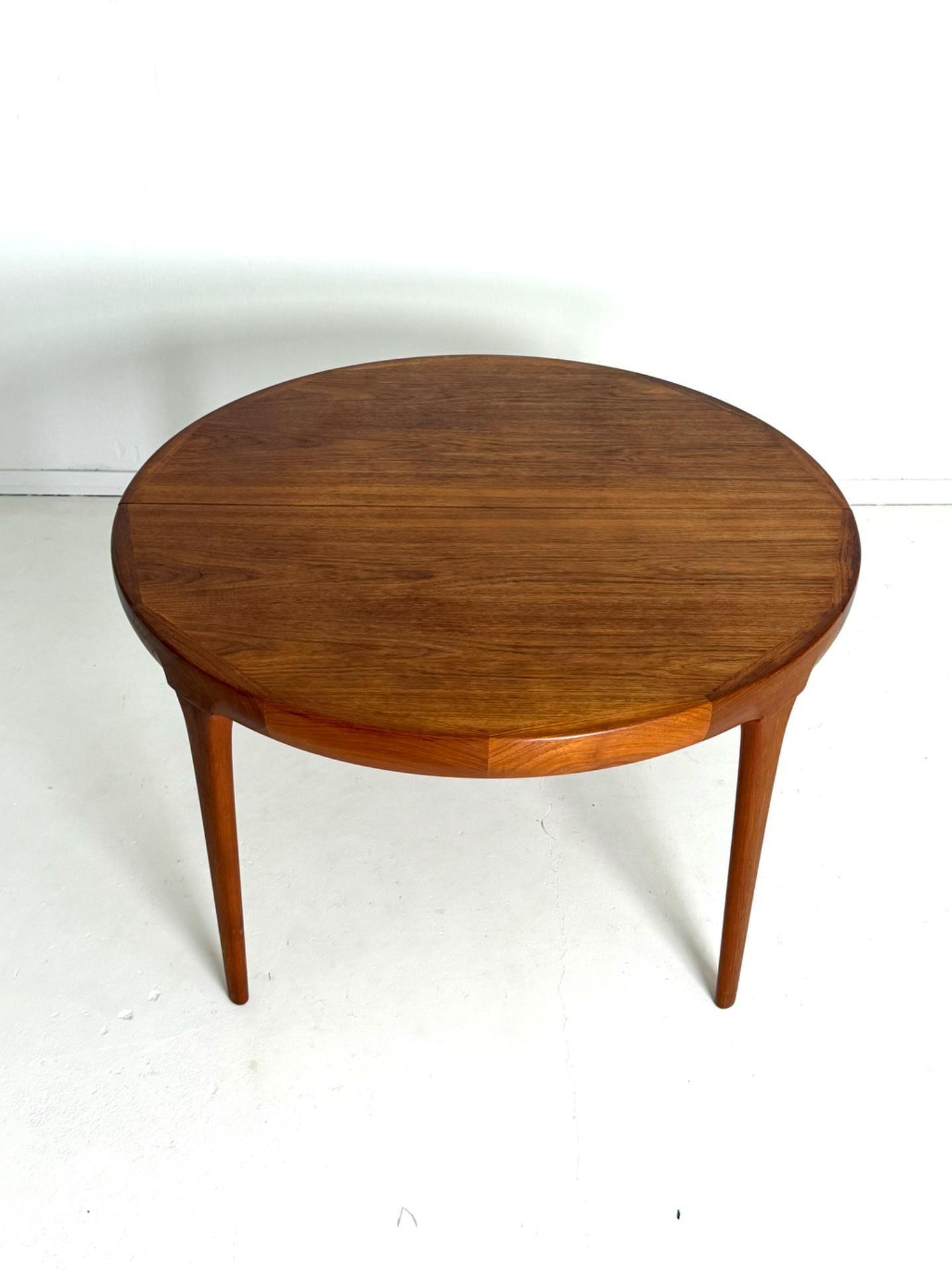 Jatkettava pyöreä tiikkipöytä – Jørgen Linde, Faarup Møbelfabrik, Tanska, 1960-luku