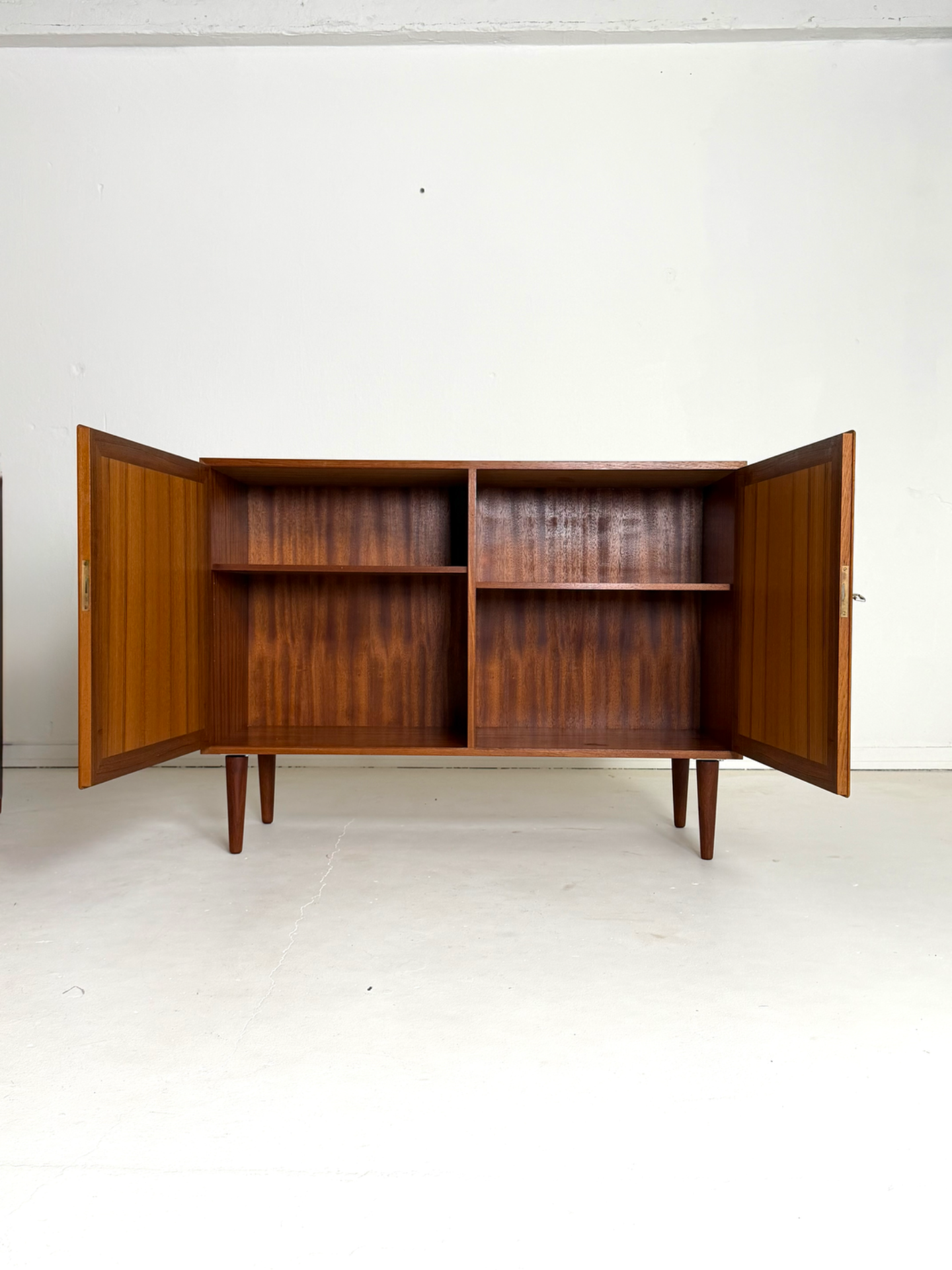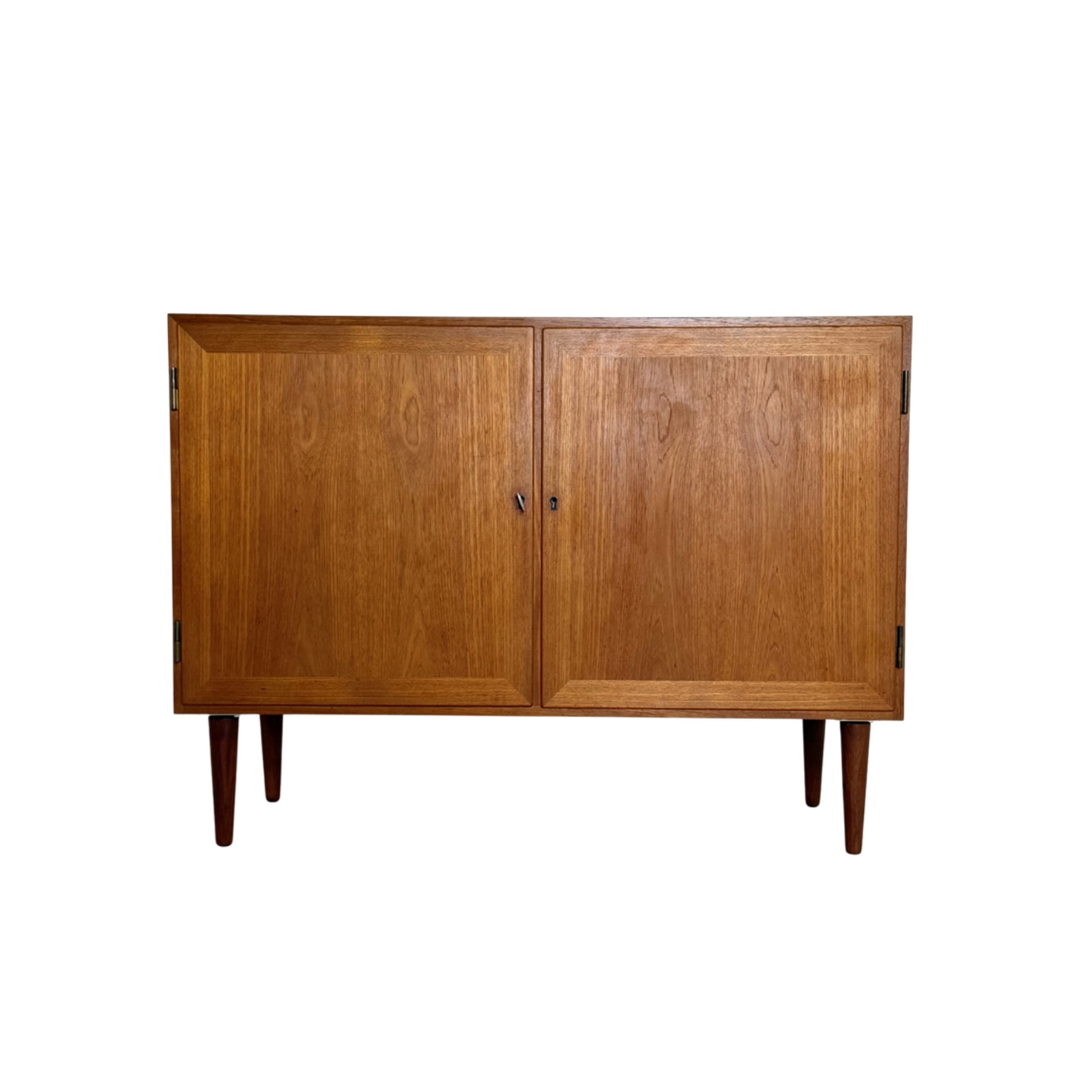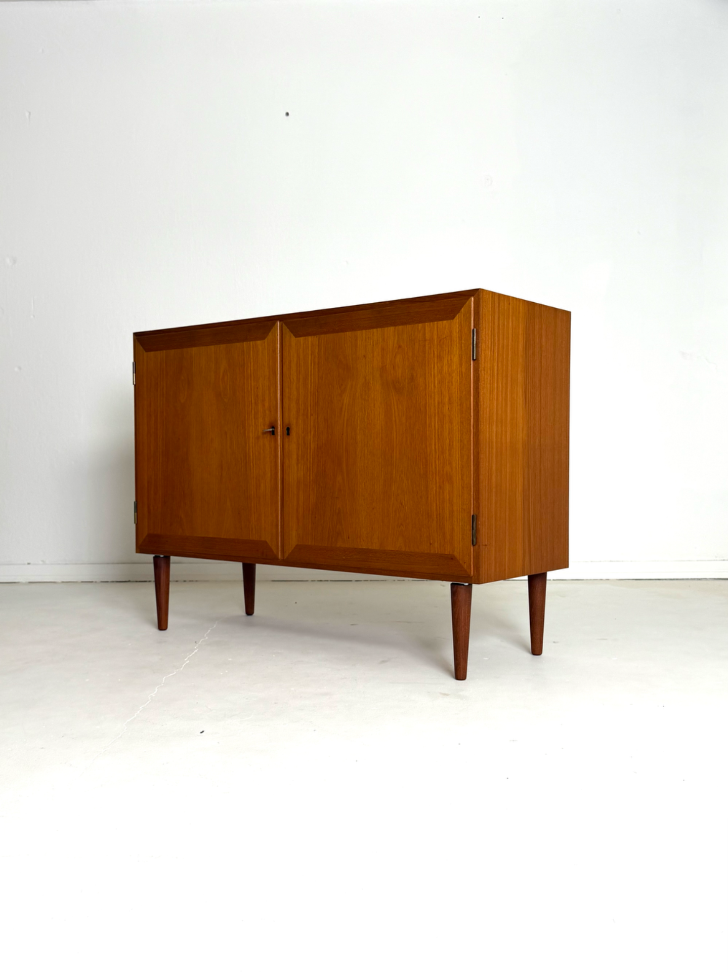 A timeless and elegant teak cabinet designed by Danish designer Kai Winding in the 1960s. The clean lines and beautifully framed doors reflect classic Scandinavian design, where quality and subtle detailing are key.
