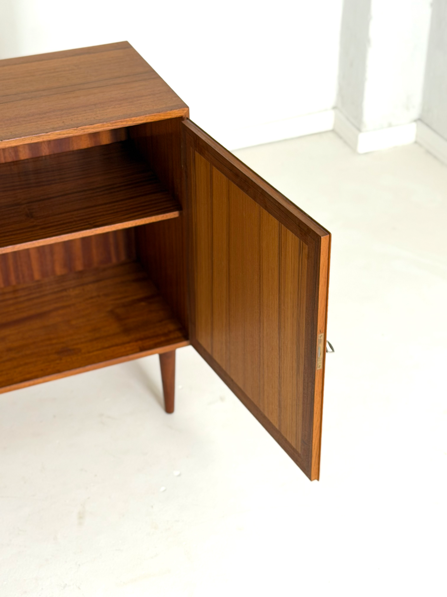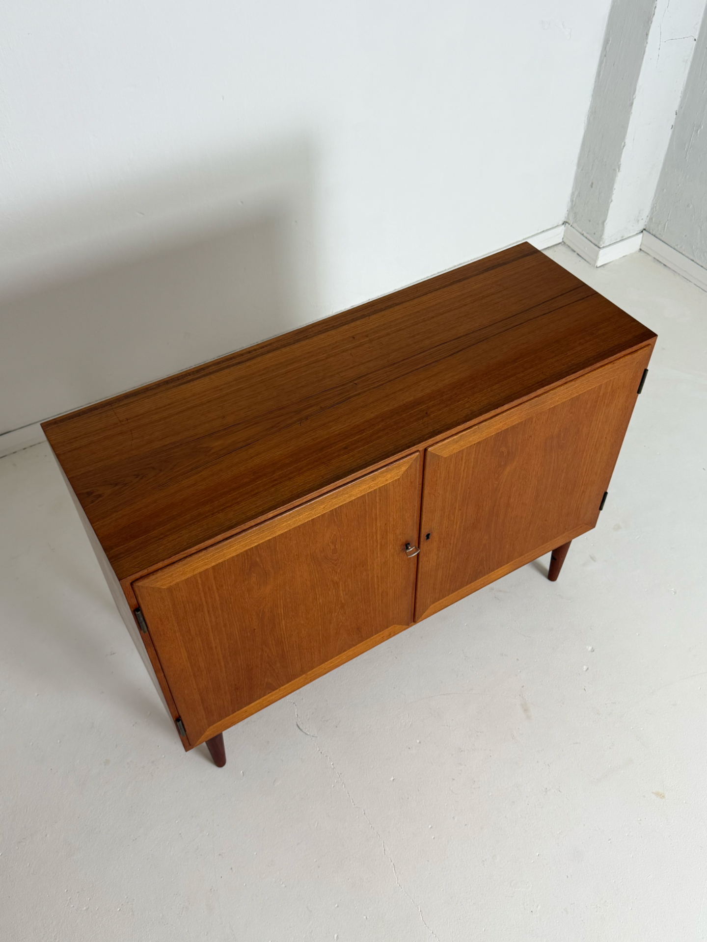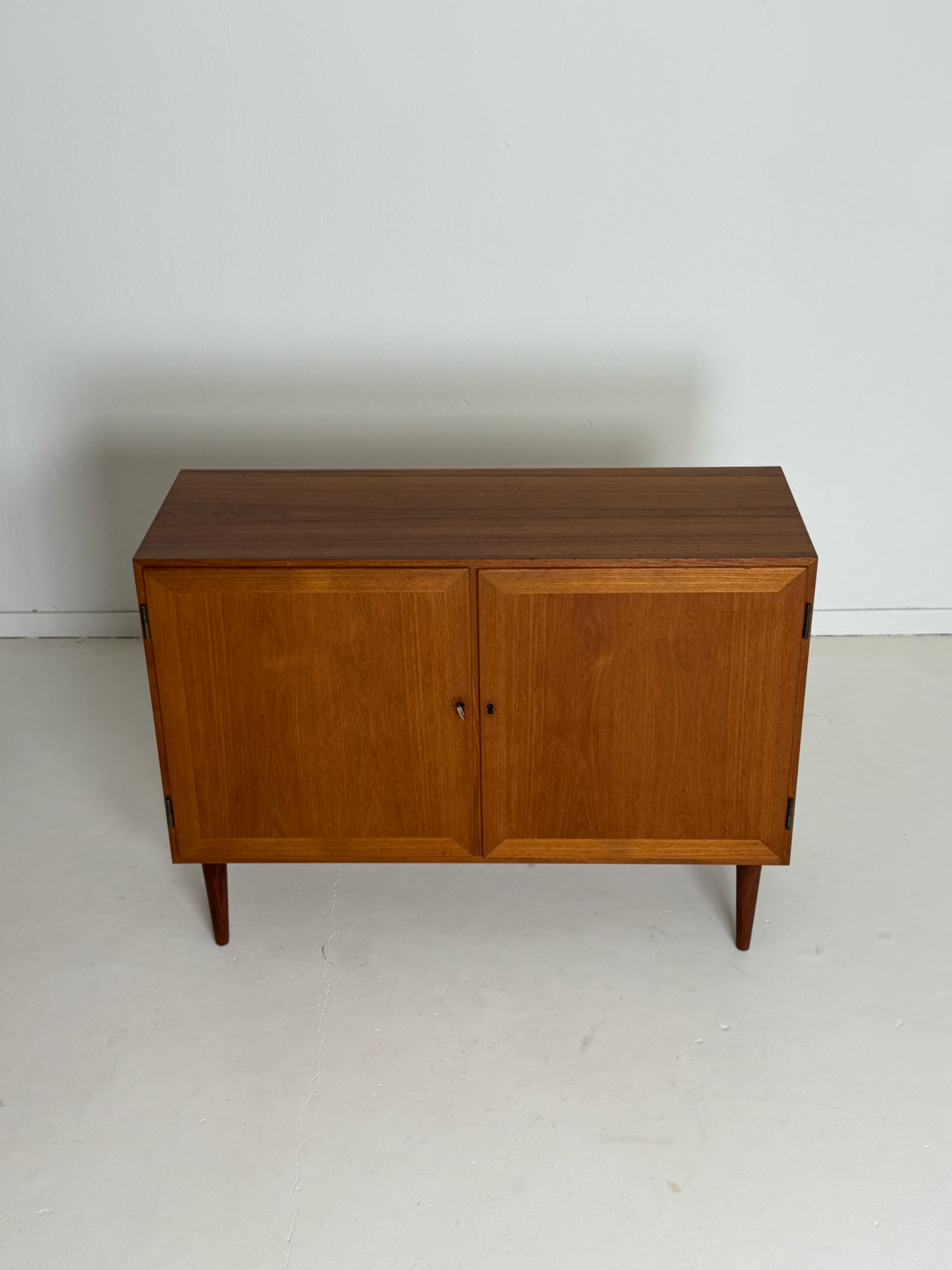 A timeless and elegant teak cabinet designed by Danish designer Kai Winding in the 1960s. The clean lines and beautifully framed doors reflect classic Scandinavian design, where quality and subtle detailing are key.