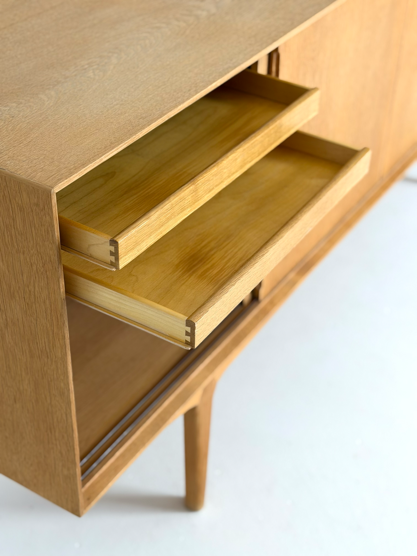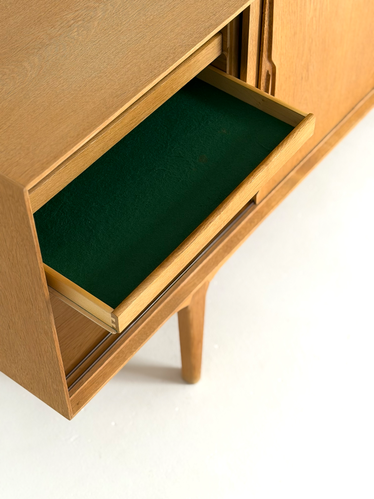 Tammisenkki, Knud Nielsenin suunnittelema malli 42. Valmistaja tanskalainen Løsning Møbelfabrik. Senkin kauniit yksityiskohdat, kuten veistokselliset vetimet ja kaareva sokkeli, tuovat esiin skandinaavisen muotoilun parhaat puolet. Neljä liukuovea kätkevät sisäänsä runsaasti säilytystilaa. Erinomainen valinta olohuoneeseen tai ruokailutilaan.