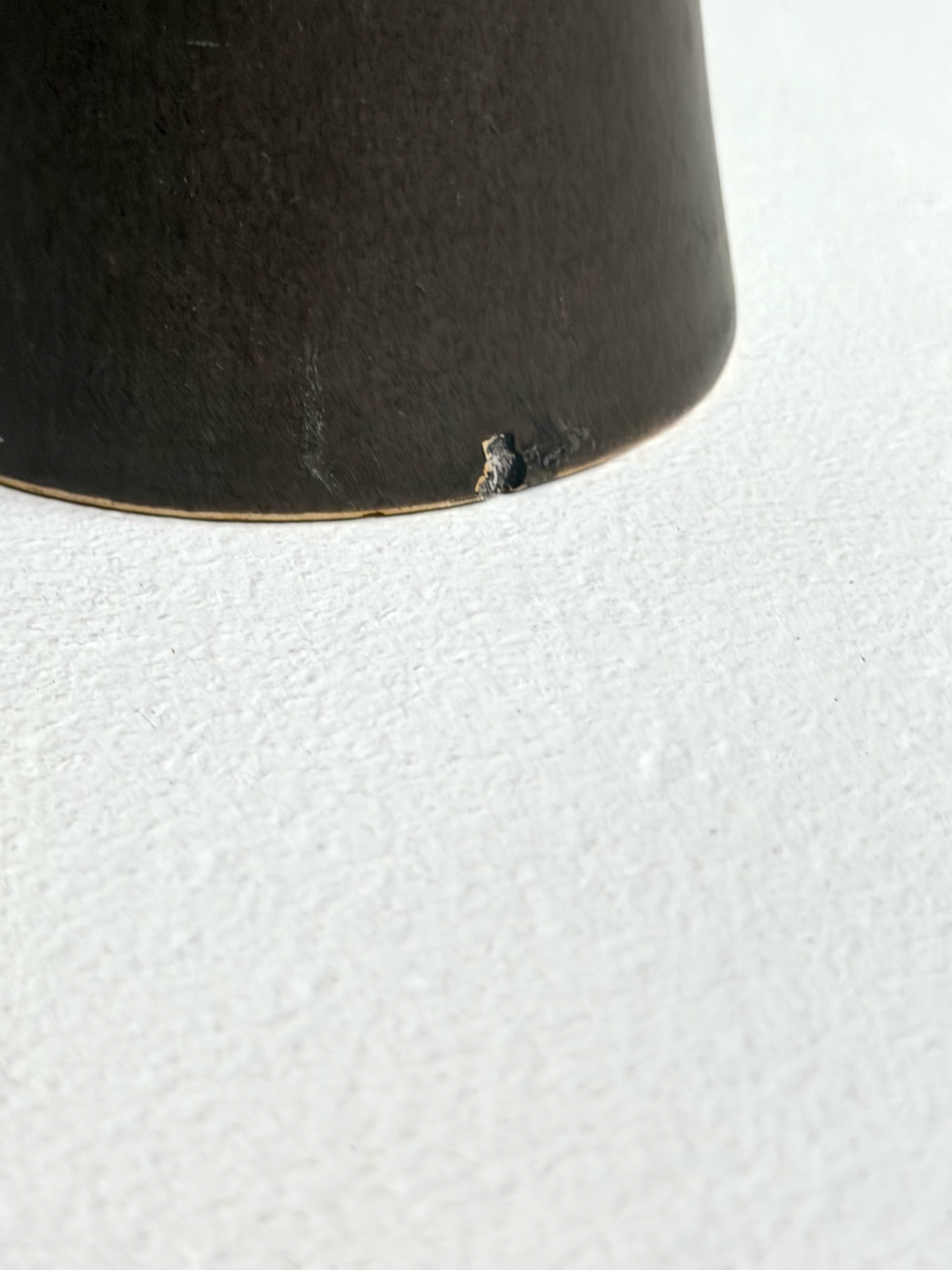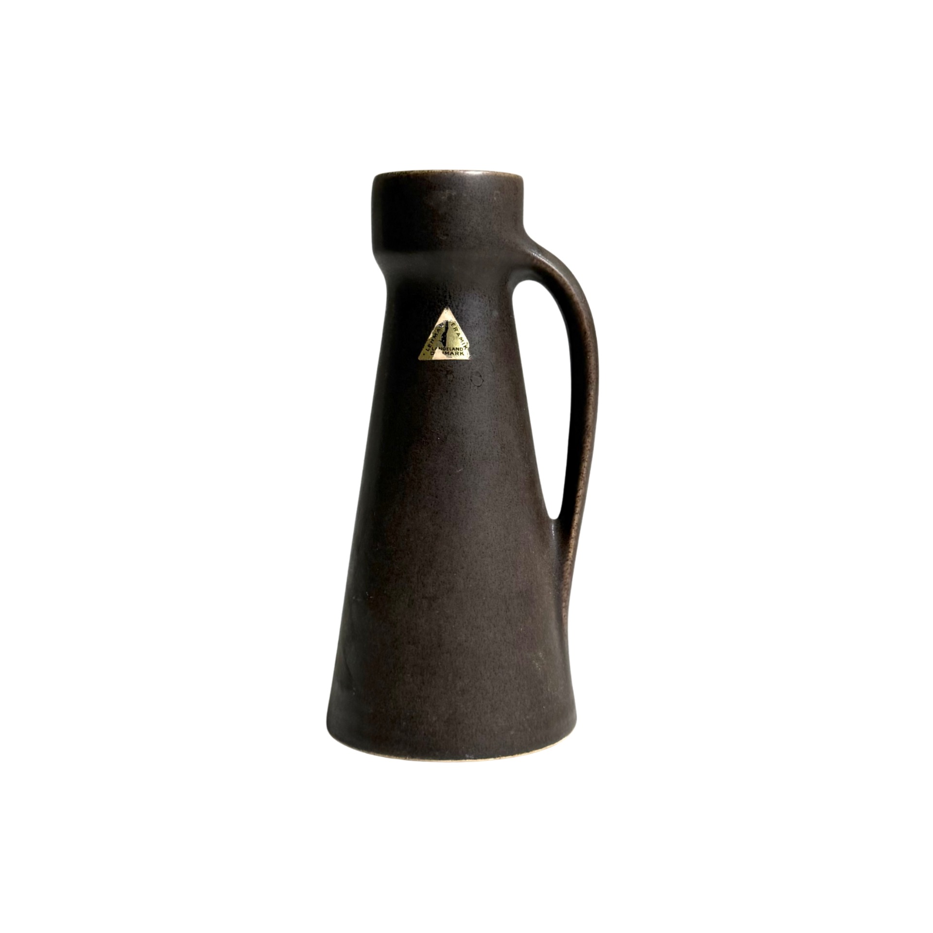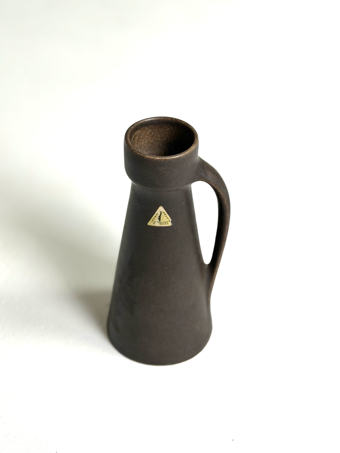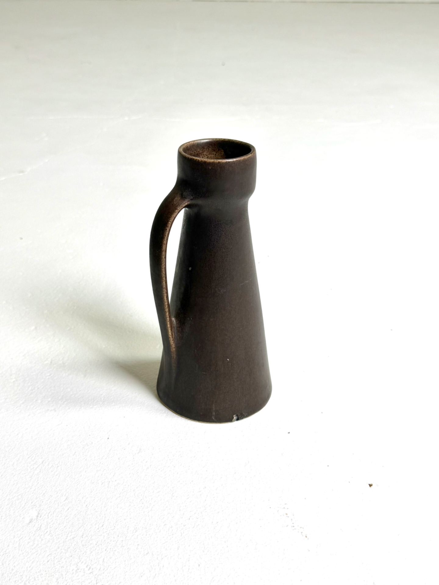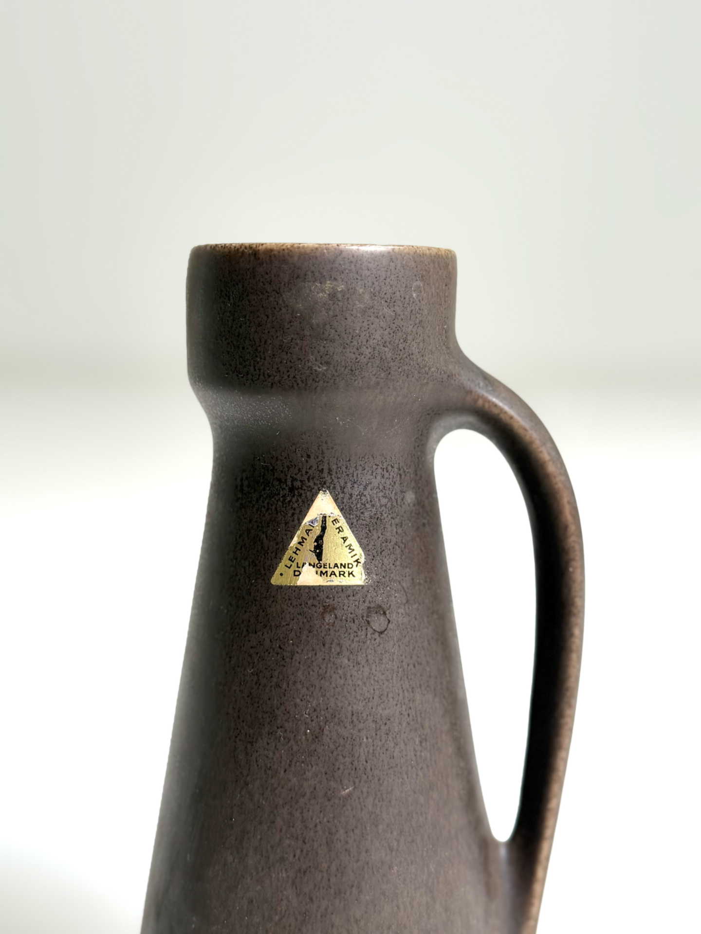 Ajattoman tyylikäs keraaminen maljakko 1970-luvun Tanskasta. Lehmannin valmistama maljakko hurmaa mattapintaisella, syvän tummalla lasitteellaan ja selkeällä muodollaan. Minimalistinen, mutta ilmeikäs esine, joka toimii niin maljakkona kuin veistoksellisena sisustuselementtinä.