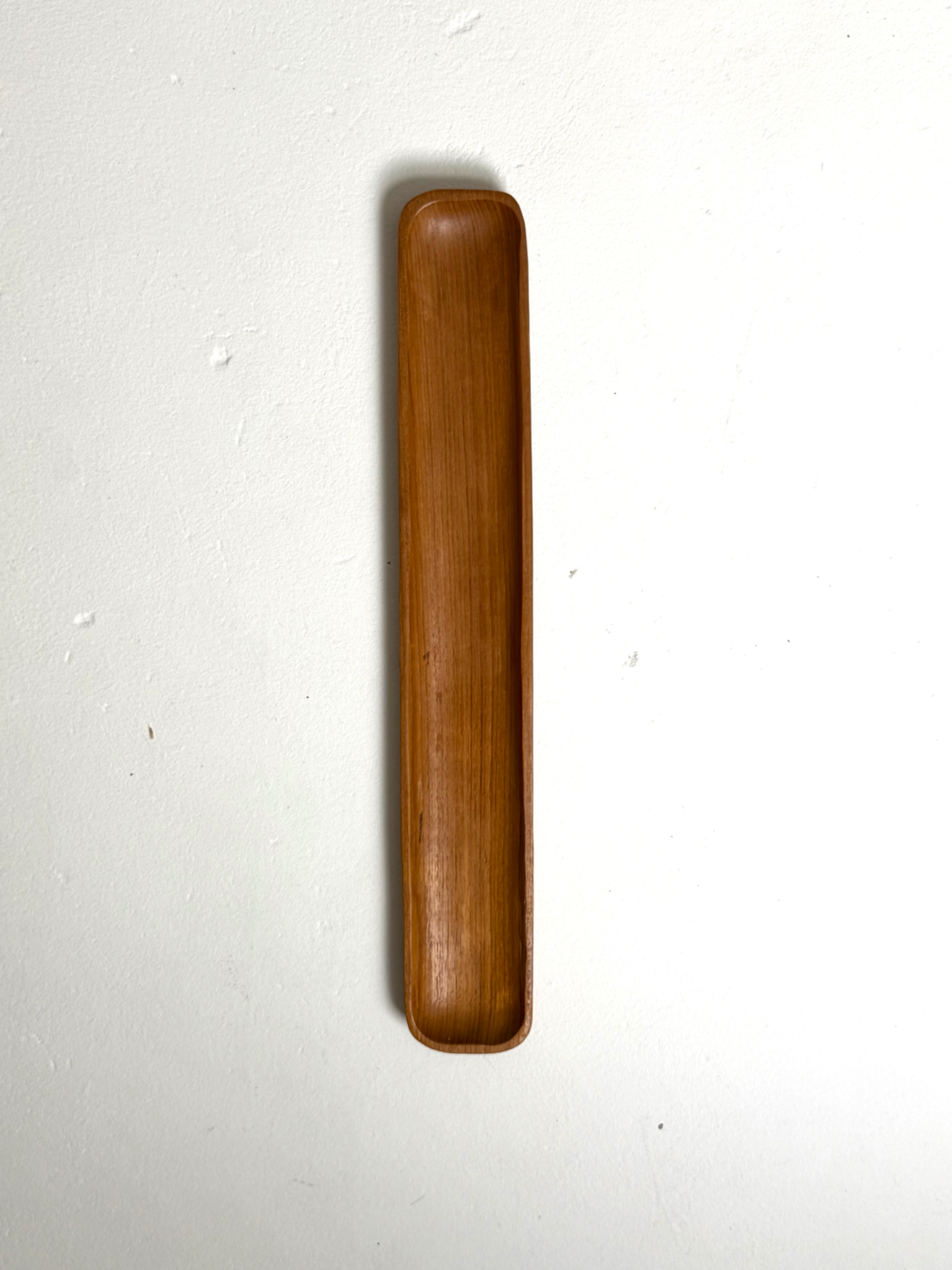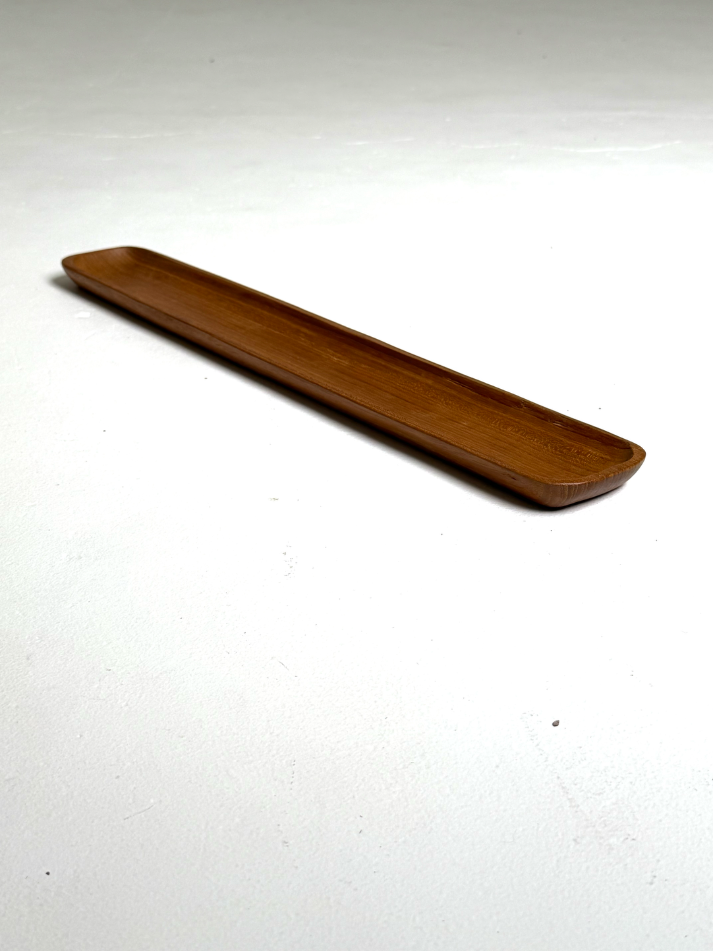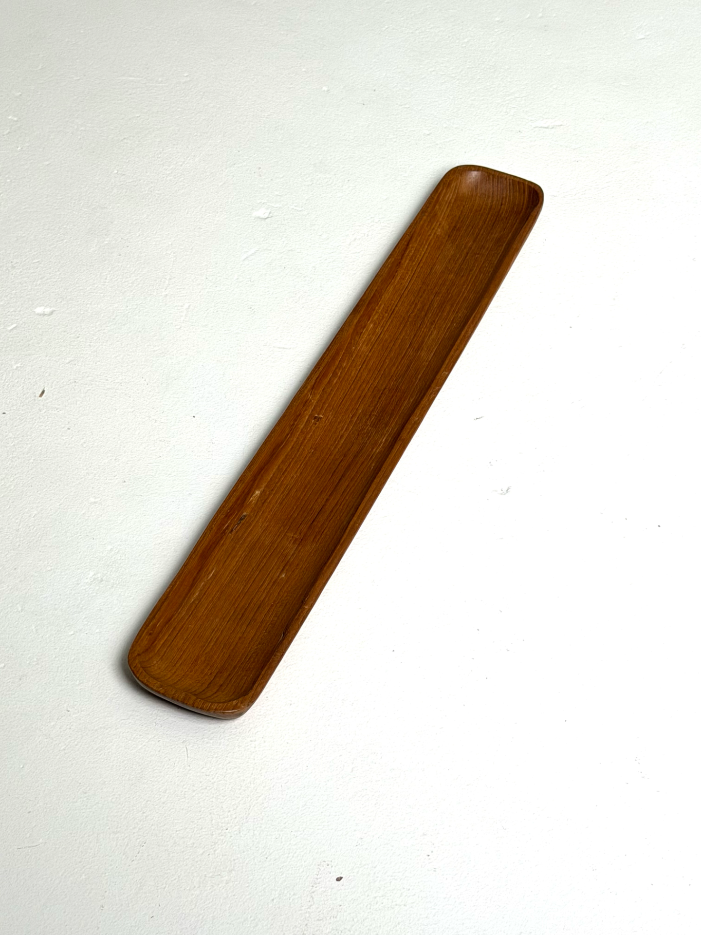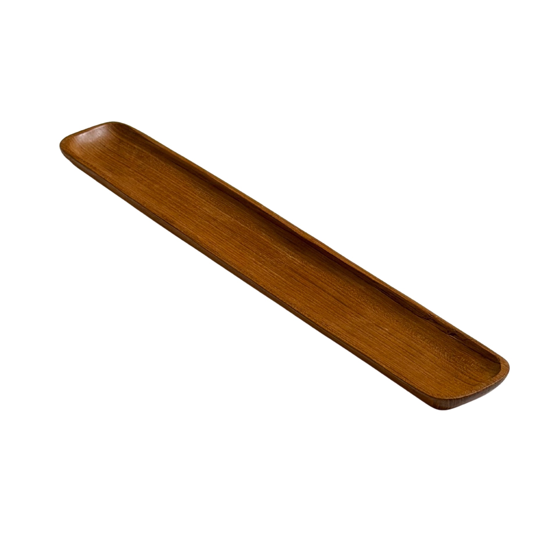 Danish Teak Serving Tray, 1960sA long and elegant serving tray made of warm teak wood, originating from 1960s Denmark. Its minimalist design makes it perfect for serving pastries, nuts, or for use as a decorative base. A beautiful example of mid-century Scandinavian craftsmanship with lovely patina.