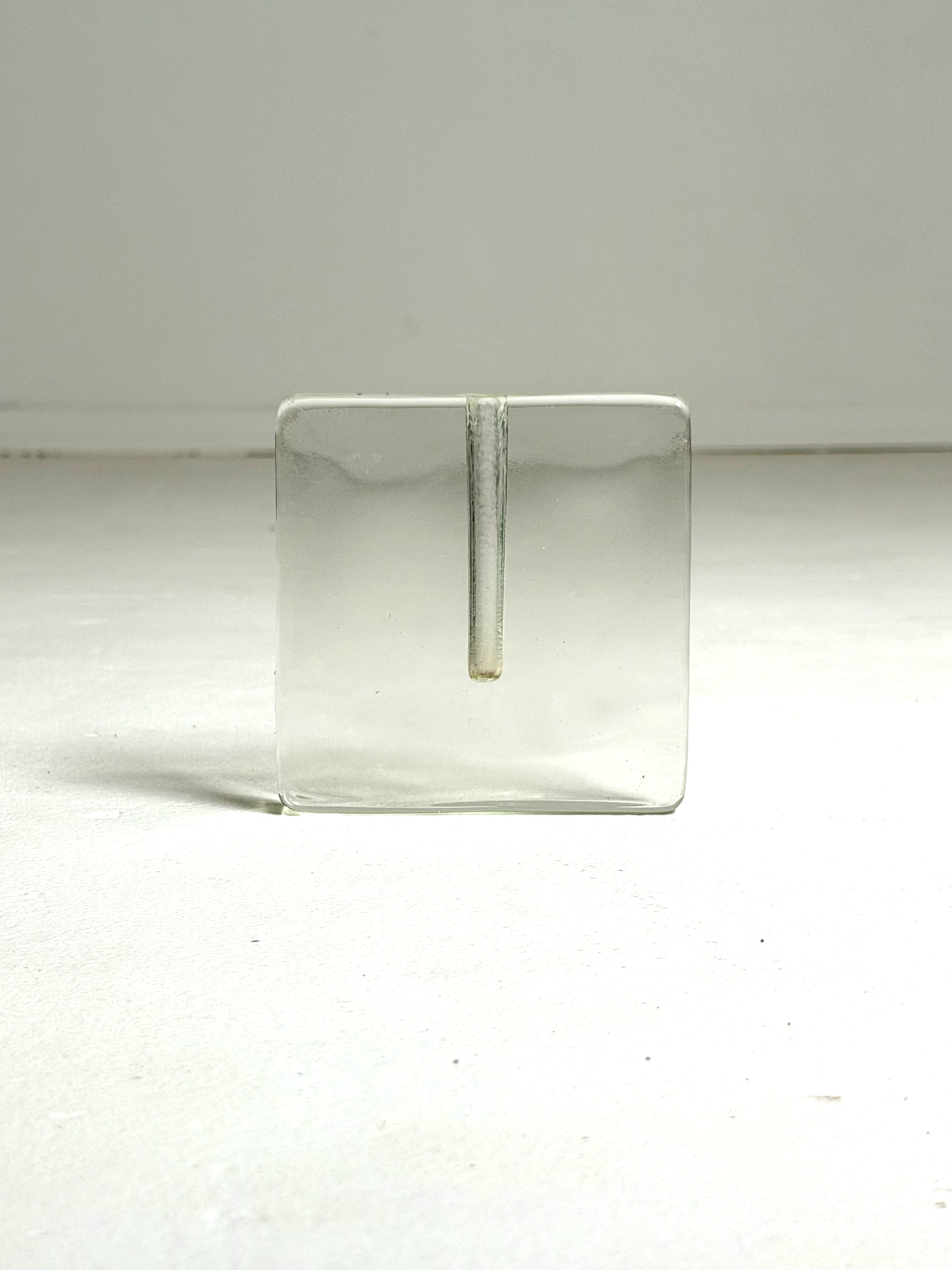 Pelkistetyn kaunis pieni vintage-lasimaljakko Tanskasta. Neliömäinen muoto ja kirkas lasi luovat modernin, mutta ajattoman ilmeen. Maljakko on täydellinen yksittäiselle kukalle tai oksalle, ja toimii kauniina yksityiskohtana esimerkiksi ikkunalaudalla, yöpöydällä tai hyllyllä.