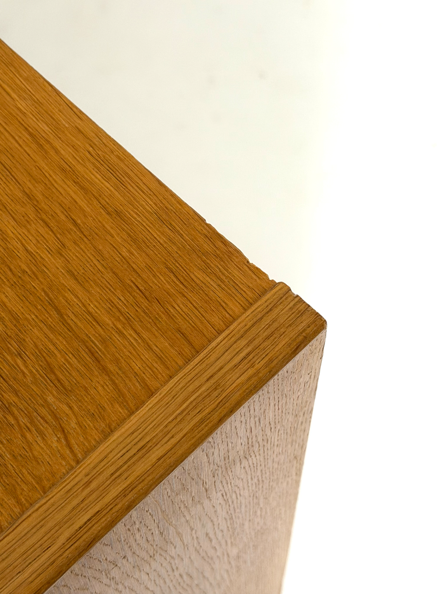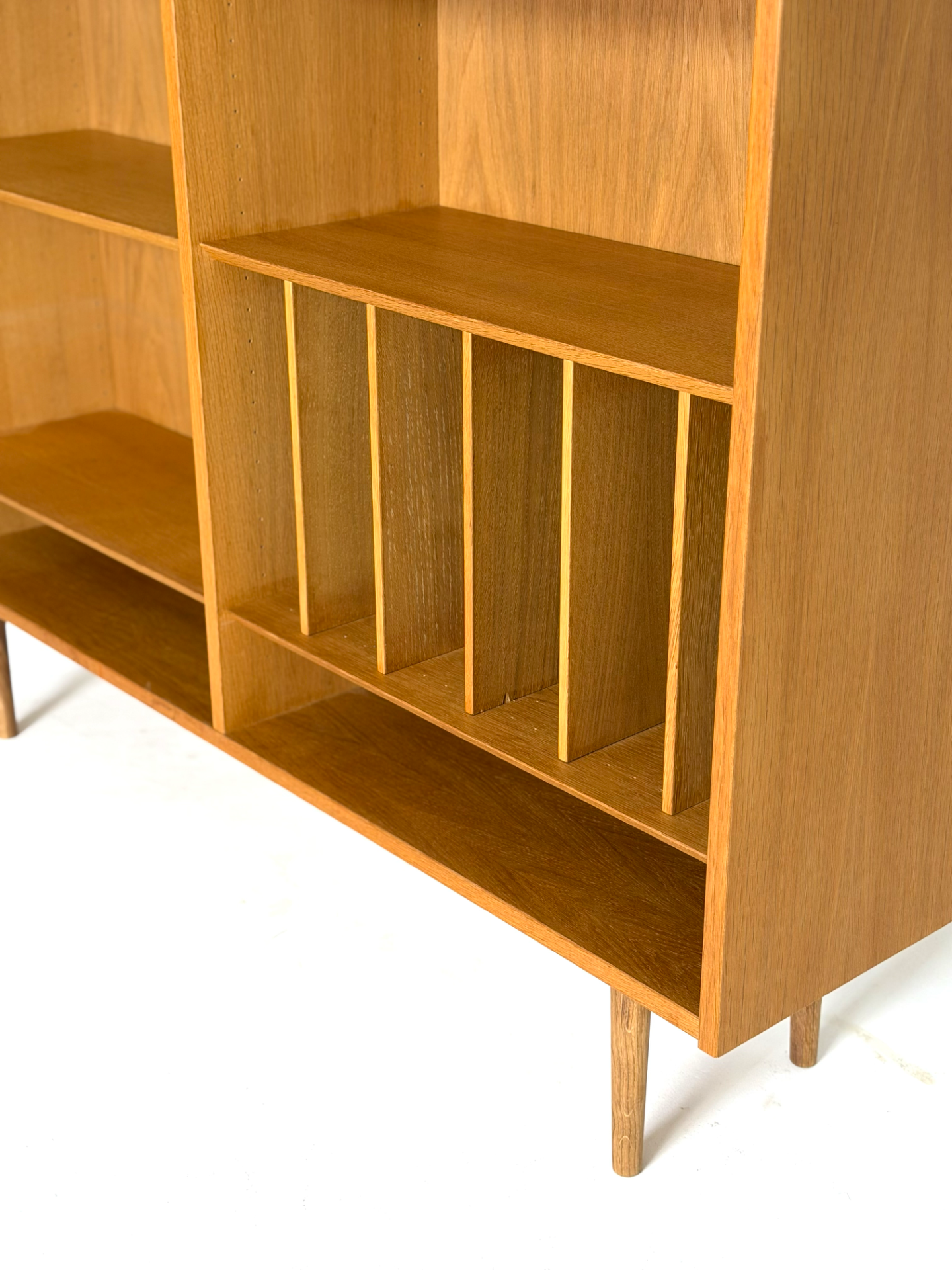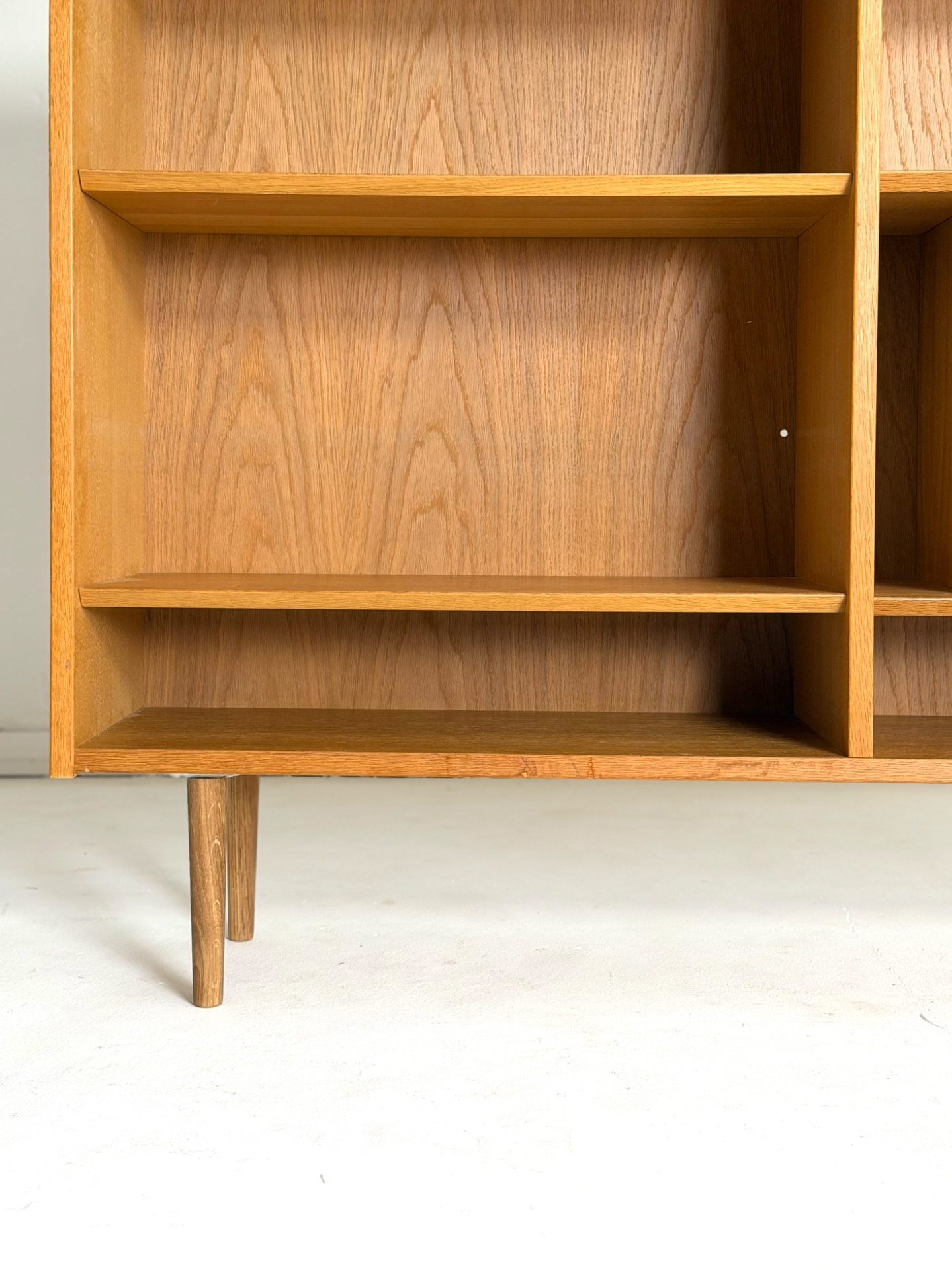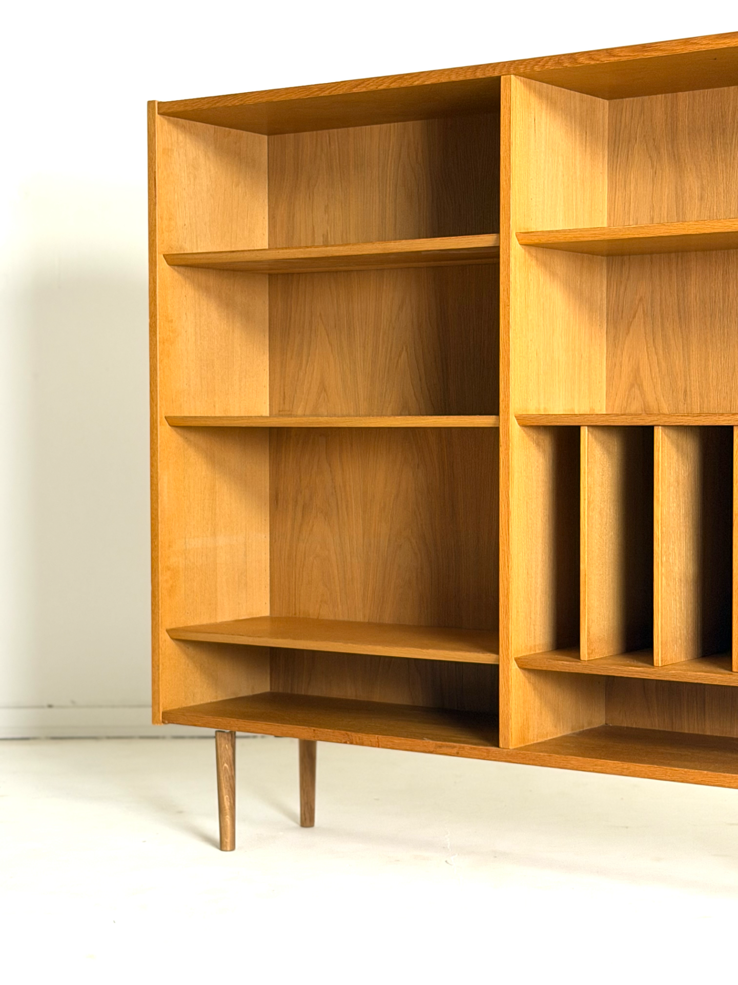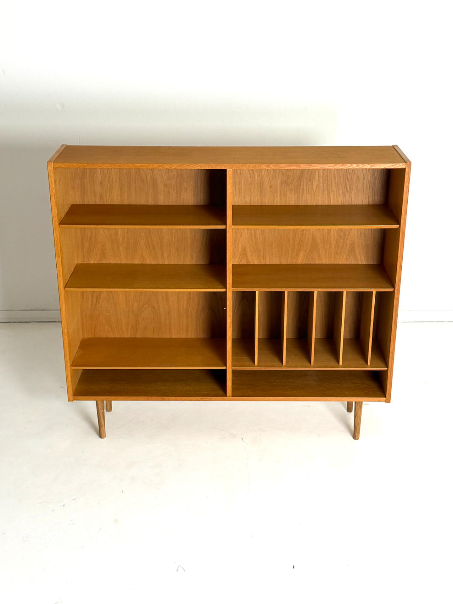 Tanskalainen Poul Hundevadin suunnittelema tamminen hyllykkö 1960-luvulta. Monipuolinen ja ilmava rakenne, jossa runsaasti avohyllytilaa. Sopii erinomaisesti kirjoille, levyille tai sisustusesineille. Ajaton muotoilu ja laadukas puusepäntyö tekevät tästä elegantista kalusteesta pitkäaikaisen kumppanin.