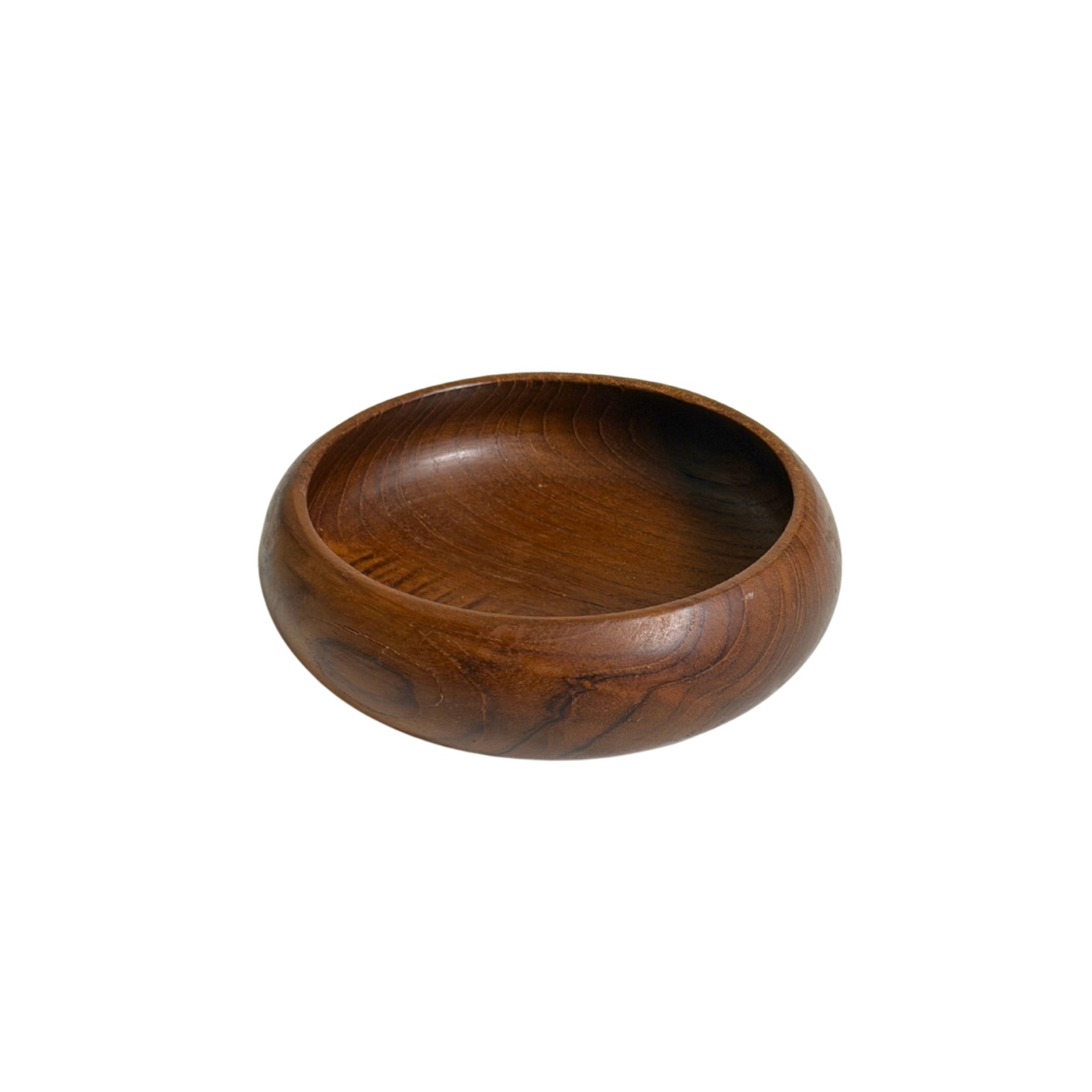Kaunis ja ajattoman muotoinen pieni tiikkipuukulho 1960-luvun Tanskasta. Kulhon pyöristetty orgaaninen muoto ja lämmin puunsävy tekevät siitä täydellisen pienen käyttö- tai koriste-esineen. Sopii esimerkiksi tarjoiluun, koruille tai sisustuksen yksityiskohdaksi. Täydellinen esimerkki pohjoismaisesta puusepäntyöstä ja skandinaavisesta muotoilusta.