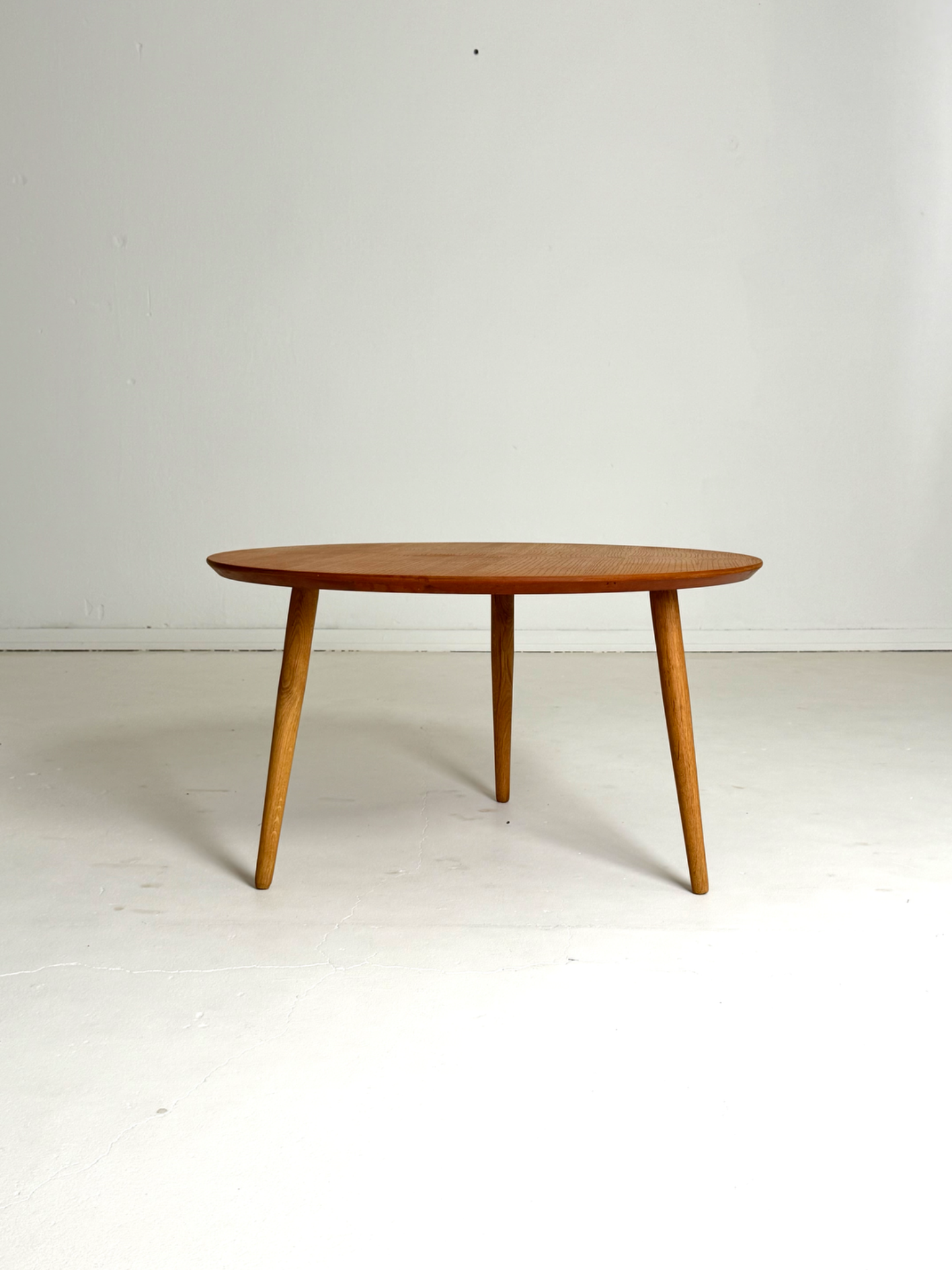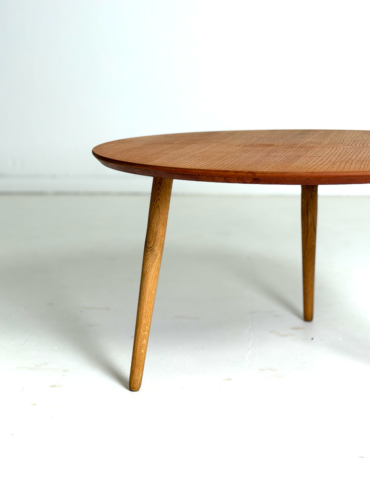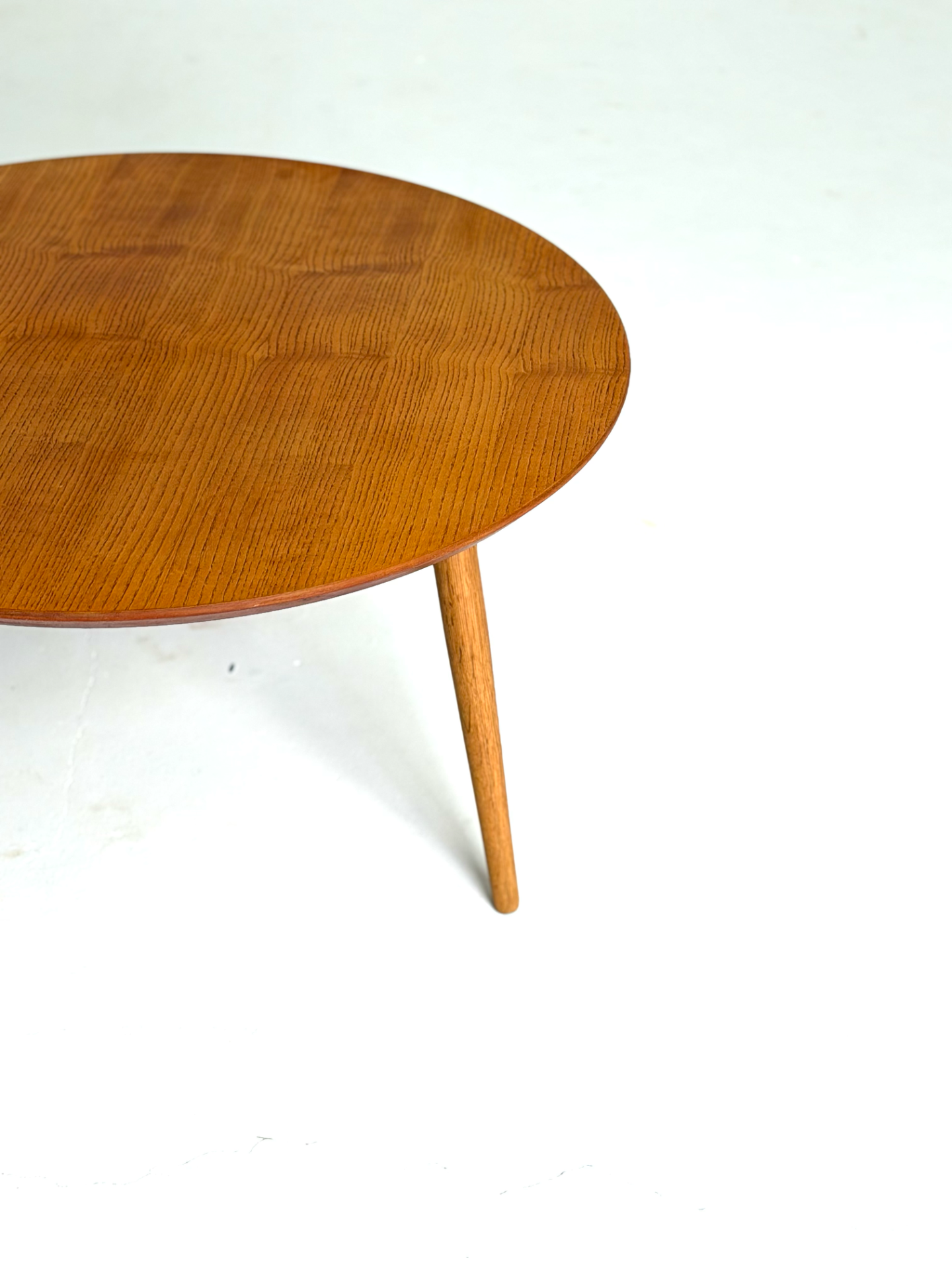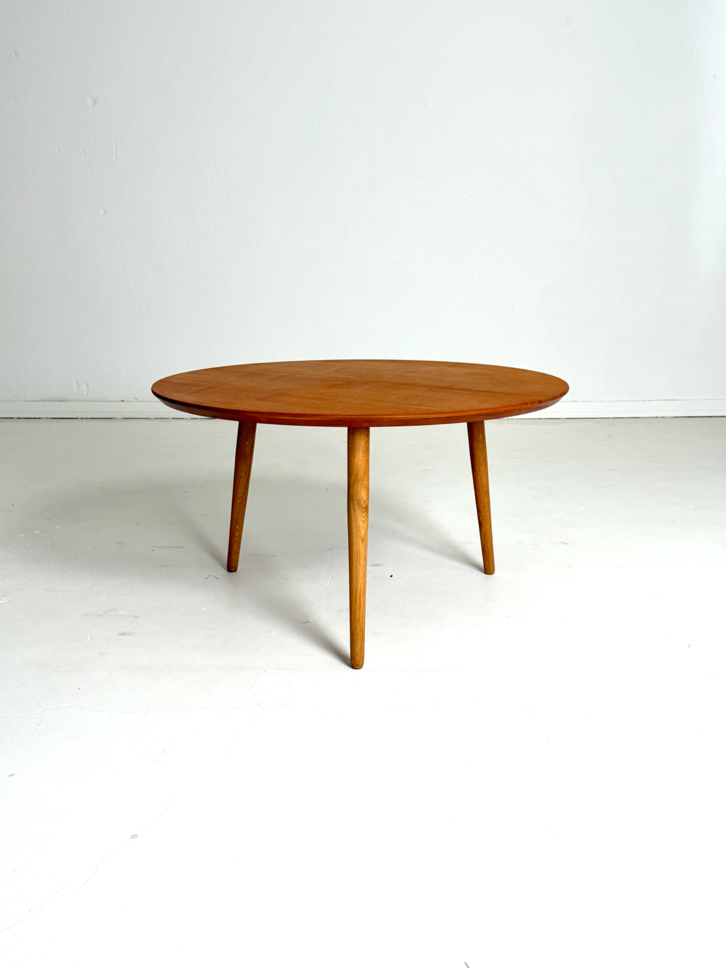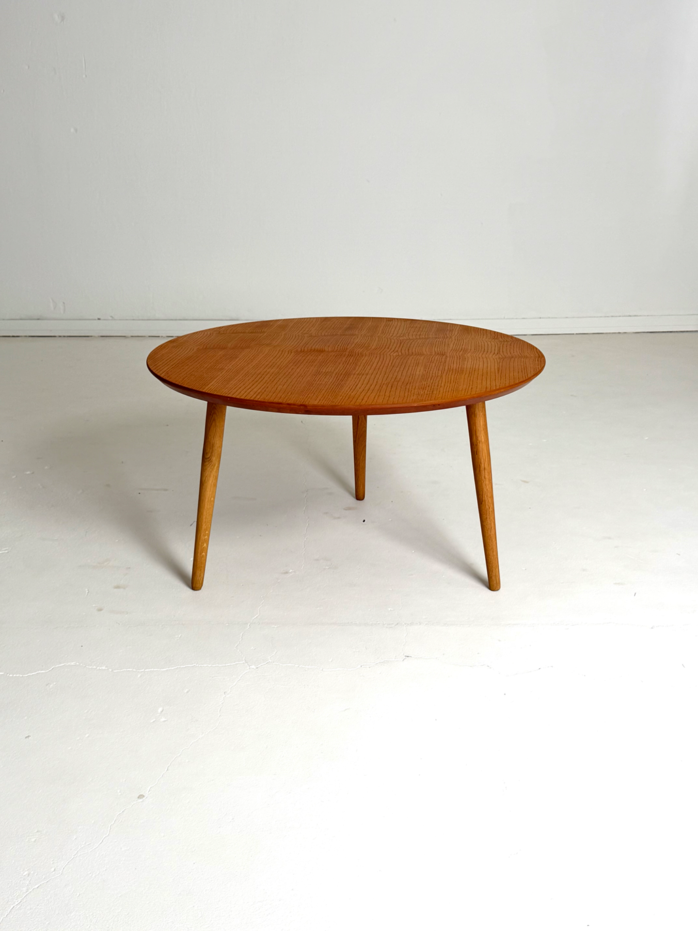 Beautiful and timeless Danish vintage coffee table from the 1960s. The top is crafted from richly grained elm, while the tapered legs are made of solid oak. Its minimalist design and natural materials make it a perfect addition to any Scandinavian-inspired interior.