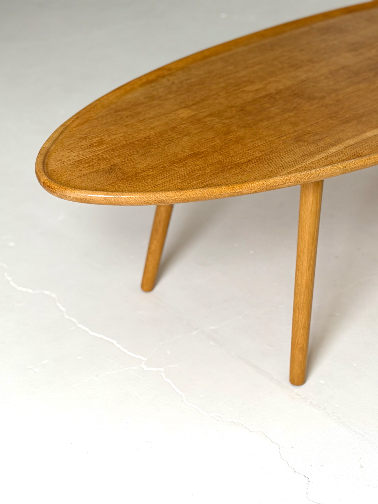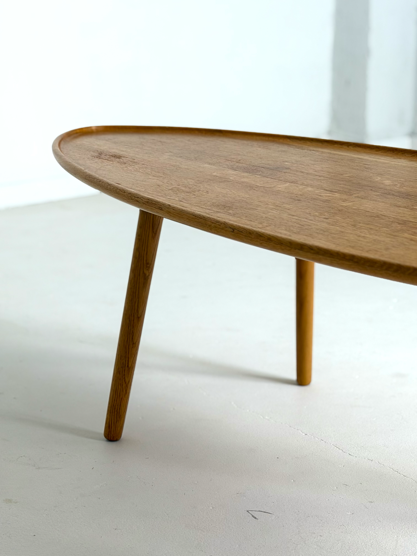 Ajattoman kaunis ovaalinmuotoinen sohvapöytä Niels Gammelgaardin Love-sarjasta. Pöytä on valmistettu tammesta ja sen muotokieli on skandinaavisen selkeä ja kevyt. Pyöristetyt muodot ja vinoon asetetut jalat tekevät pöydästä mielenkiintoisen ja persoonallisen. Sopii niin moderniin kuin klassiseenkin sisustukseen.