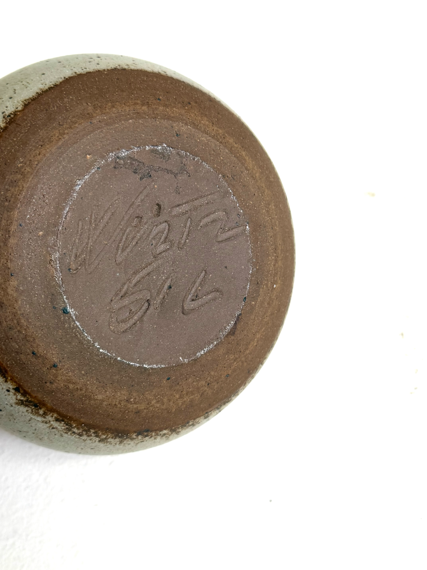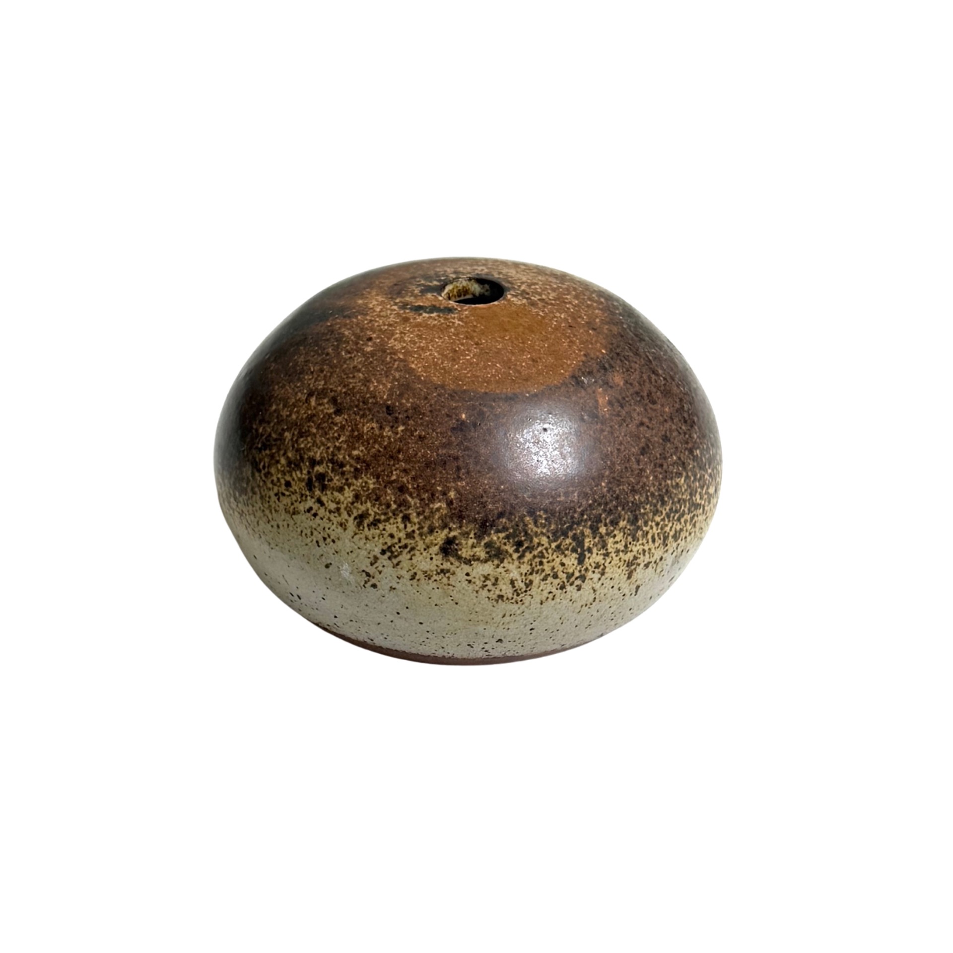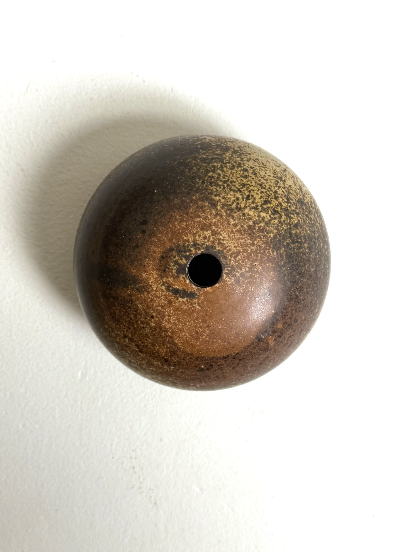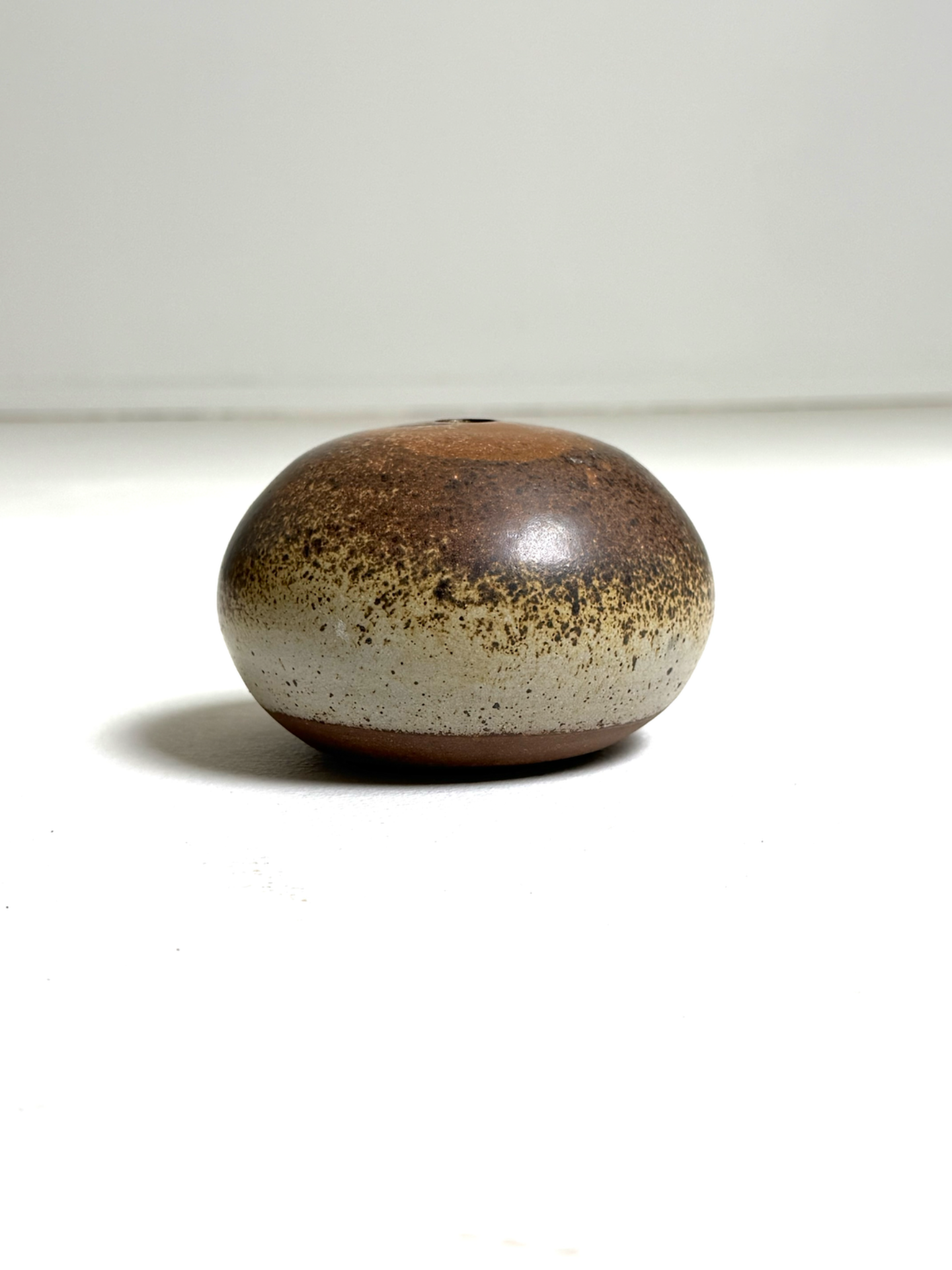 A small vintage ceramic vase from 1960s Denmark. Its softly rounded form and earthy glaze create a warm and organic presence. Ideal for a single stem or as a sculptural decorative object on a shelf or table. A timeless piece of Danish craftsmanship.