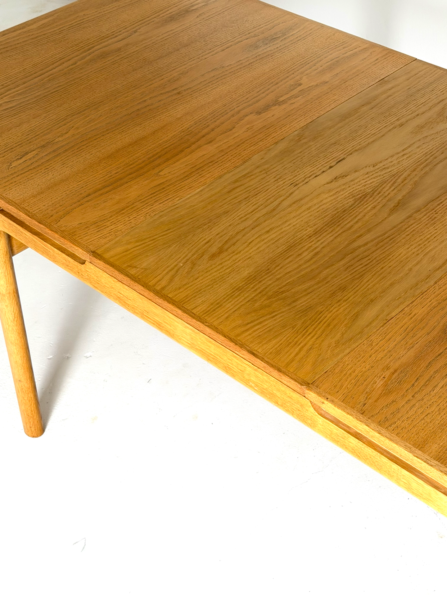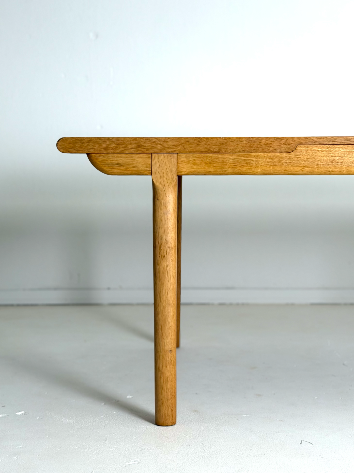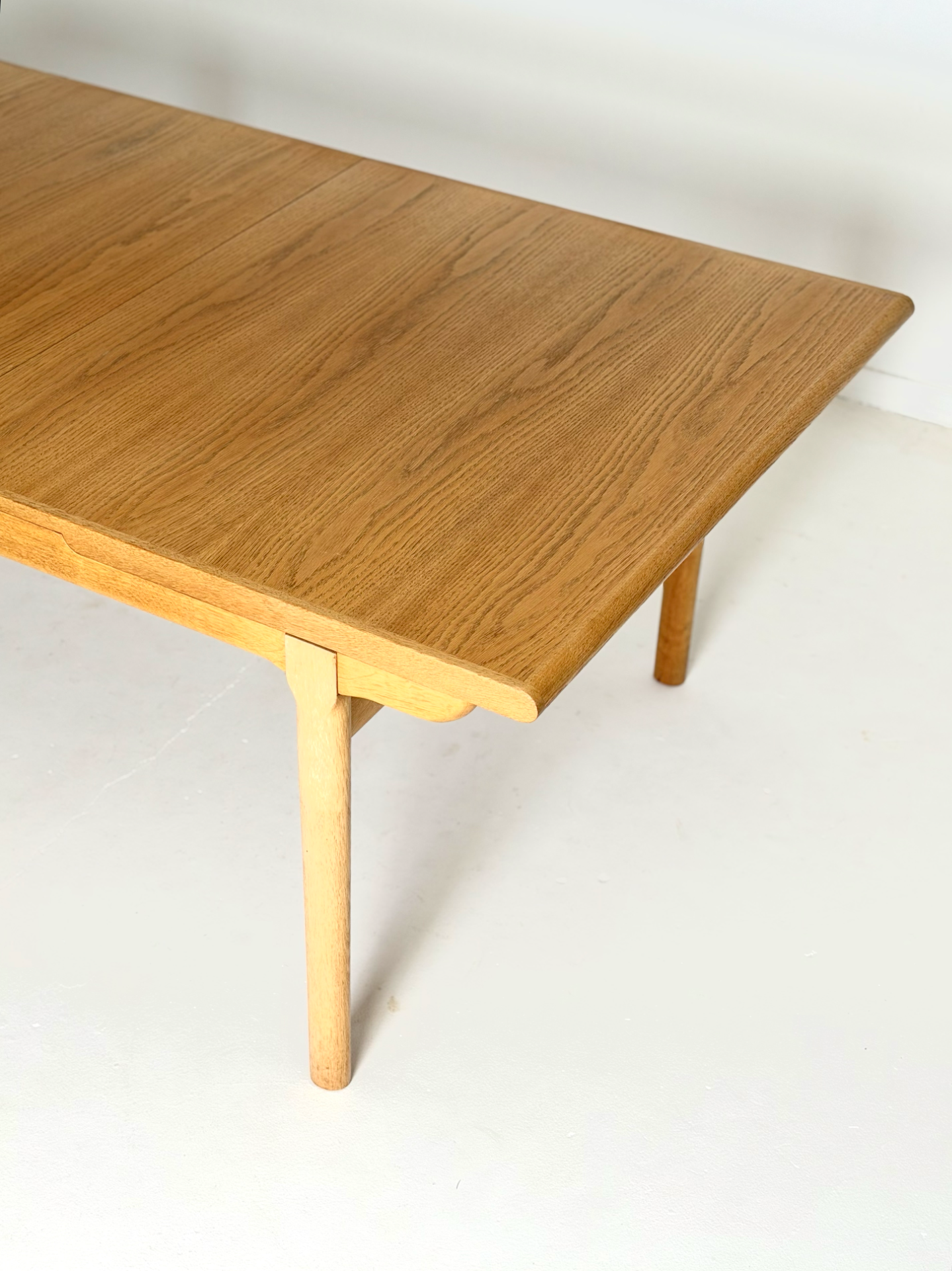 Kauniisti muotoiltu ja tukeva jatkettava ruokapöytä 1960–70-luvun Tanskasta. Valmistettu tammesta, joka tuo esiin luonnollisen sävynsä ja kestää käyttöä vuosikymmenten ajan. Pöydässä on yksi jatkopala, jotka mahdollistavat tilan jopa 8–10 hengelle. Ajaton muotoilu sopii niin moderniin kuin perinteiseenkin sisustukseen.
