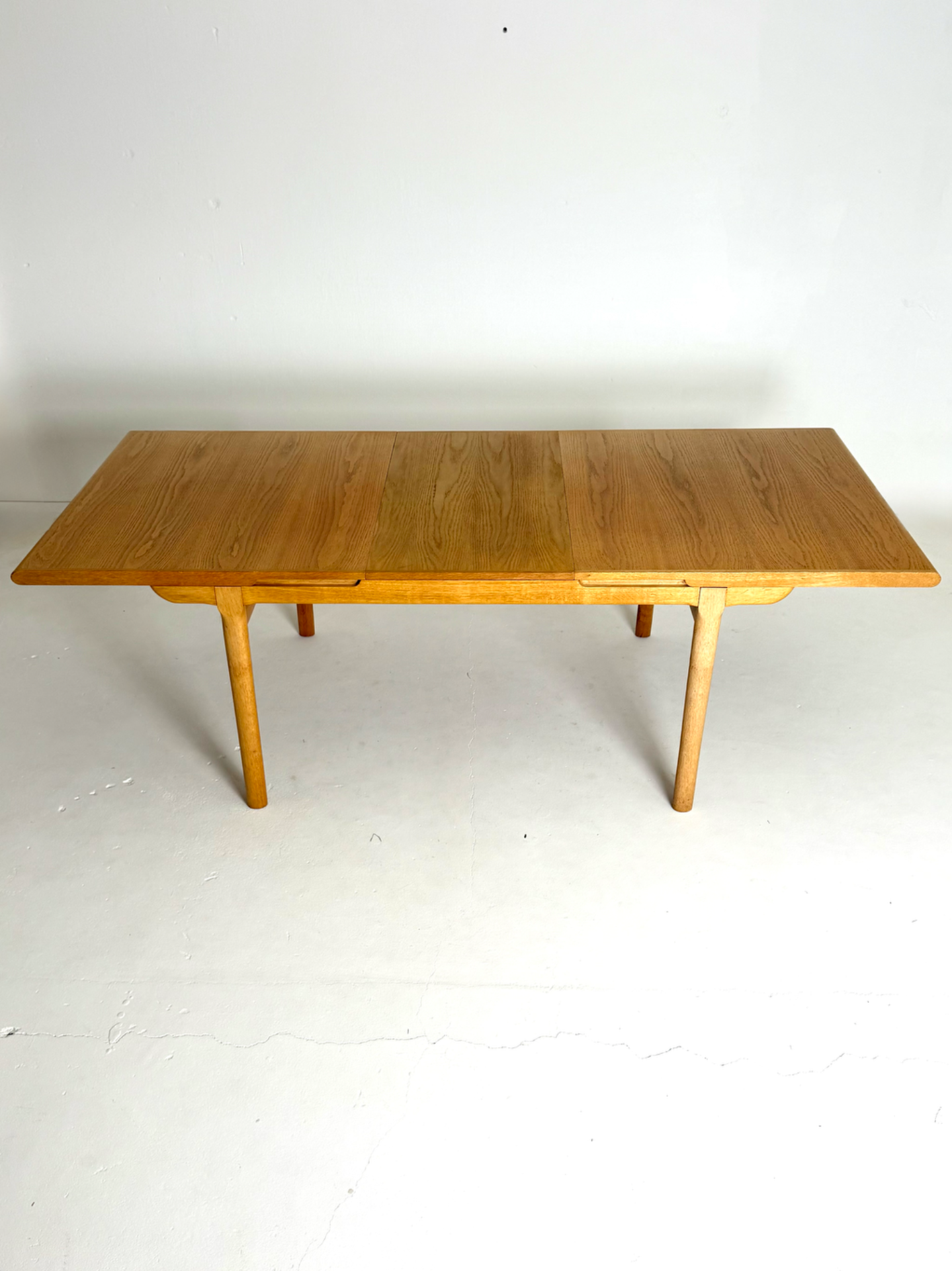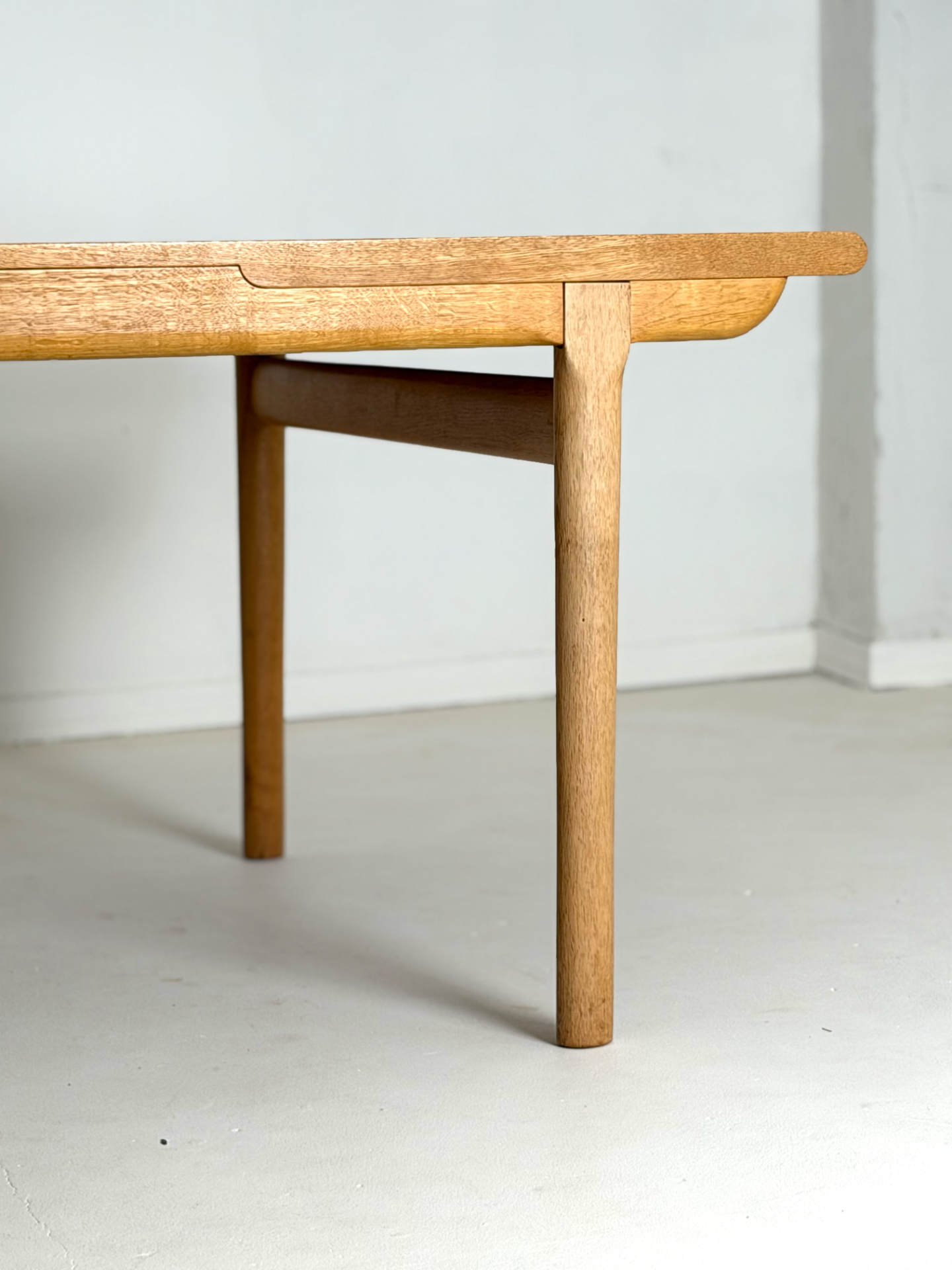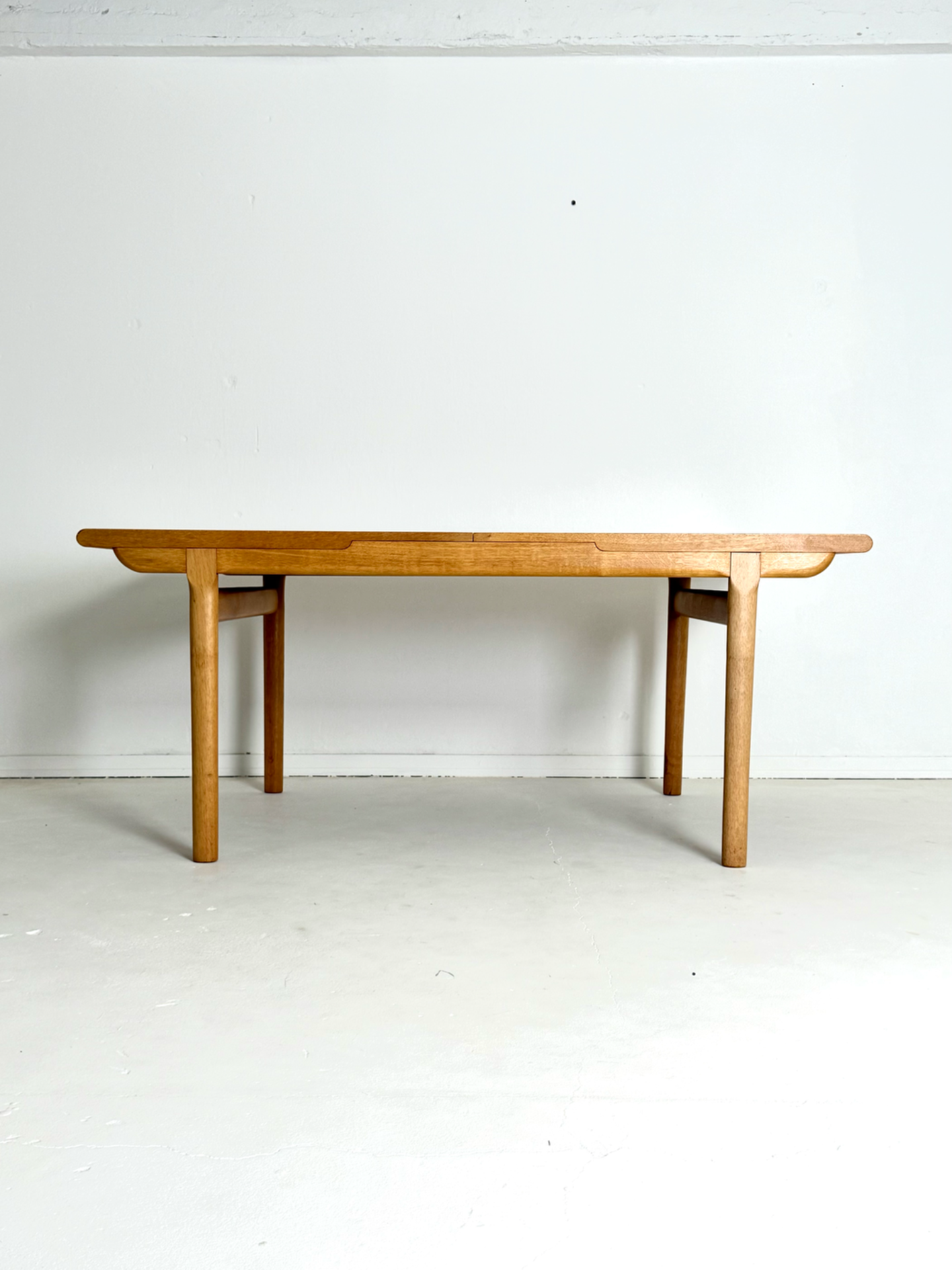 Kauniisti muotoiltu ja tukeva jatkettava ruokapöytä 1960–70-luvun Tanskasta. Valmistettu tammesta, joka tuo esiin luonnollisen sävynsä ja kestää käyttöä vuosikymmenten ajan. Pöydässä on yksi jatkopala, jotka mahdollistavat tilan jopa 8–10 hengelle. Ajaton muotoilu sopii niin moderniin kuin perinteiseenkin sisustukseen.