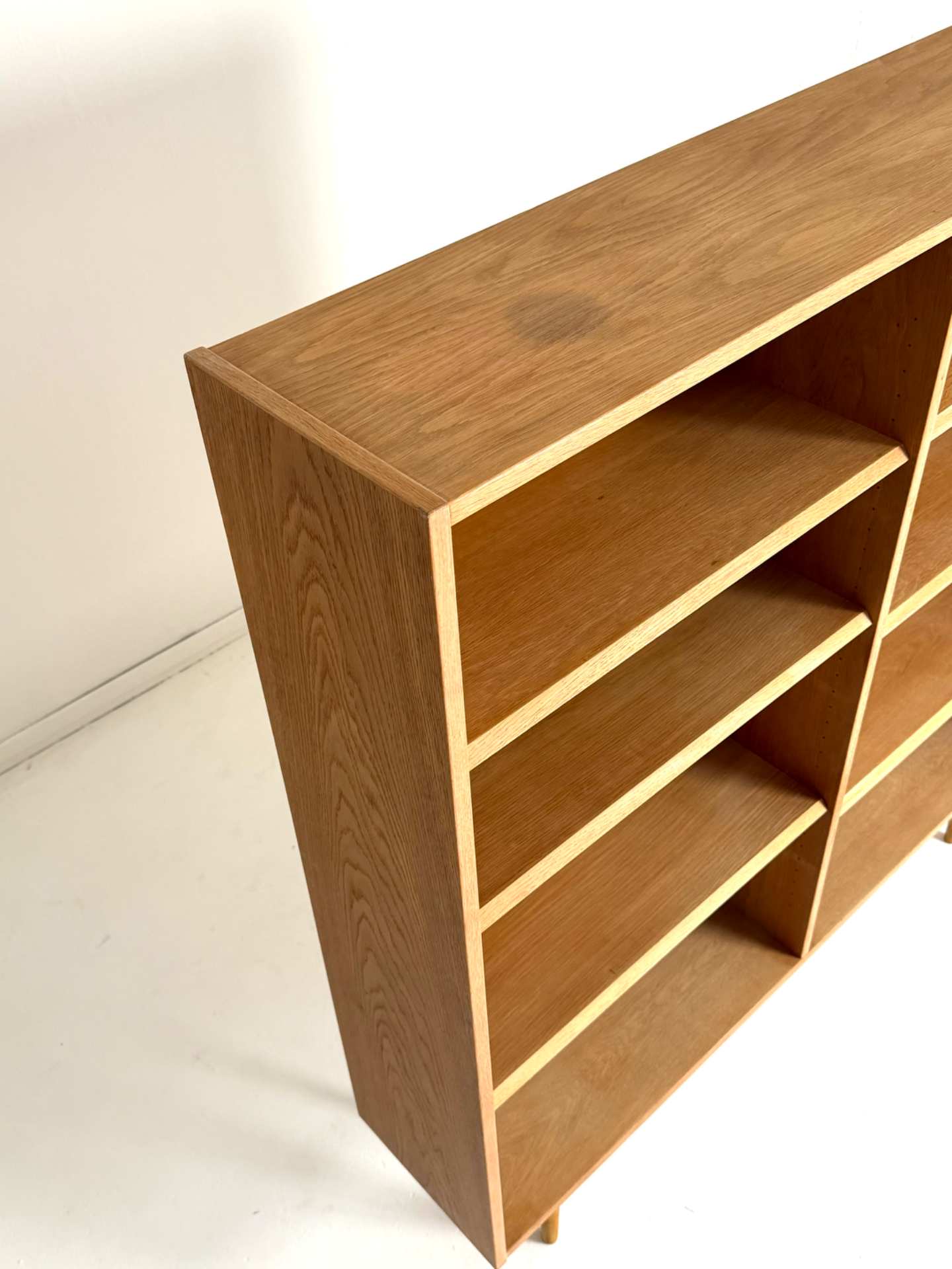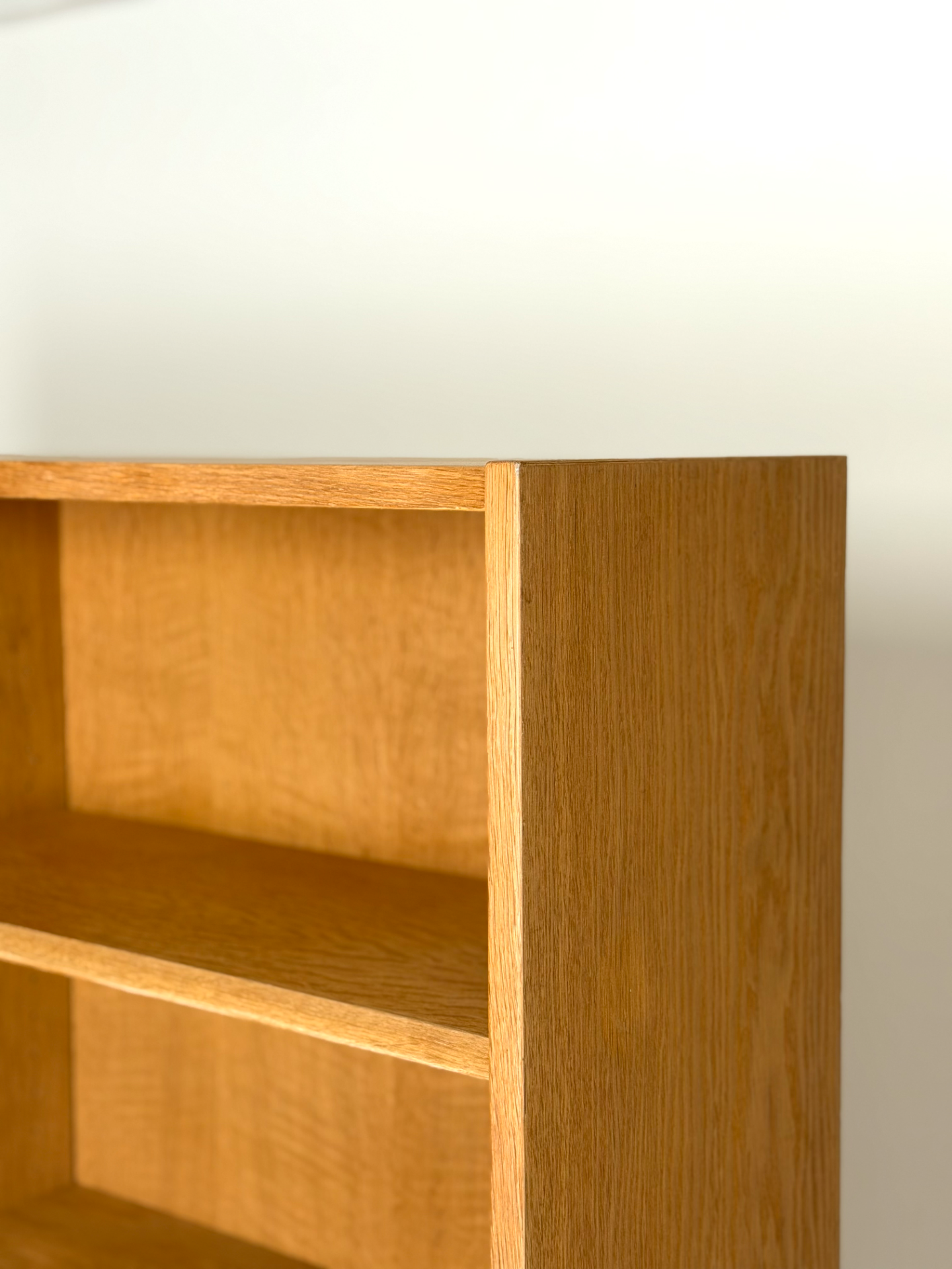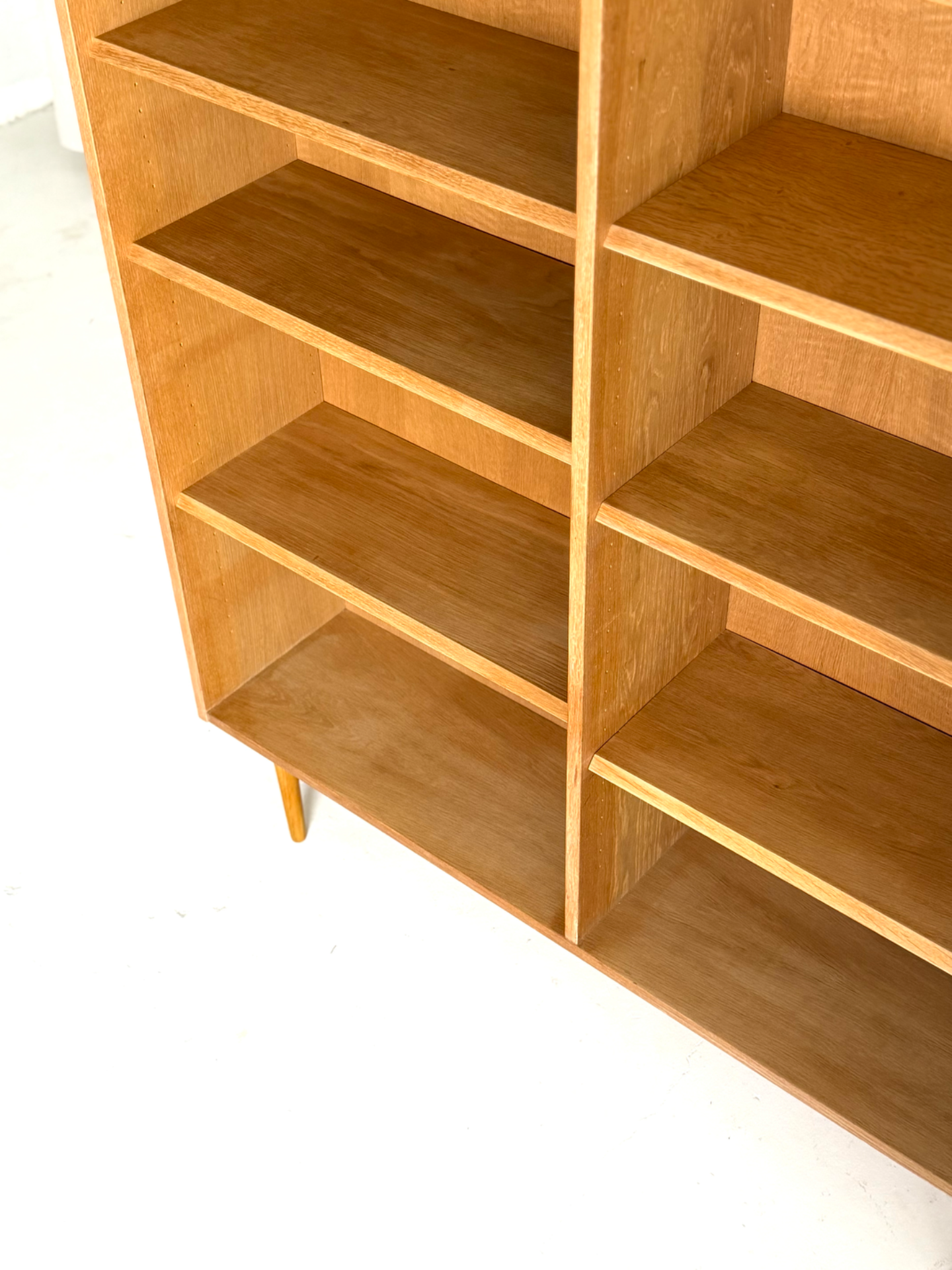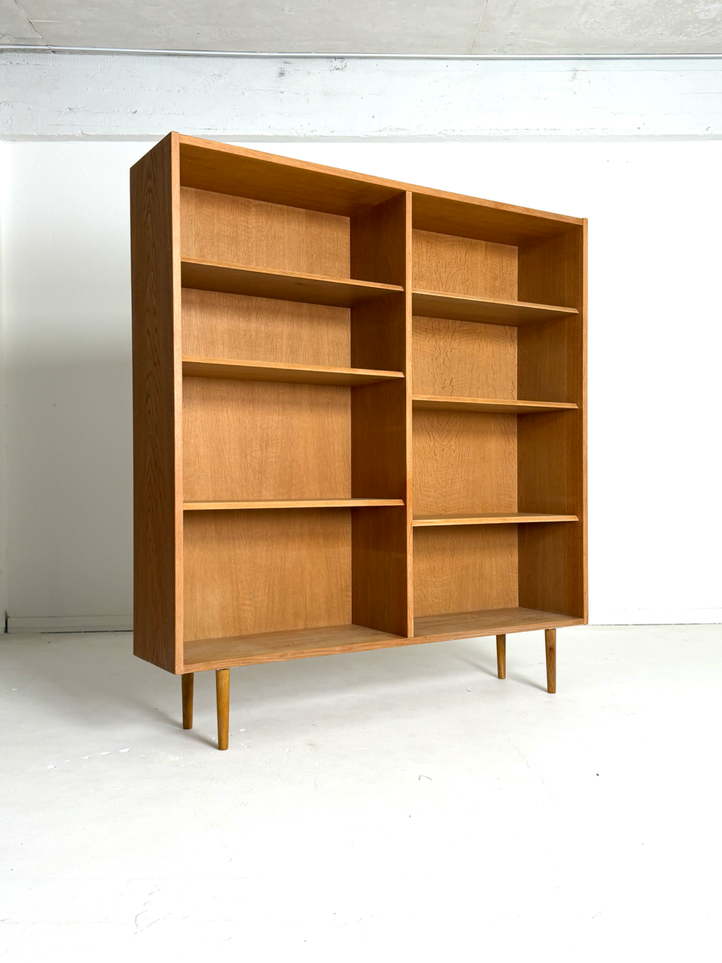 Elegantti ja tilava vintage-hyllykkö 1960-luvun Tanskasta. Hyllykkö on valmistettu kauniista vaaleasta tammesta, ja sen ajaton, selkeälinjainen muotoilu tekee siitä täydellisen valinnan niin kirjoille, esineille kuin sisustuselementeille. Hyllyt ovat säädettäviä.