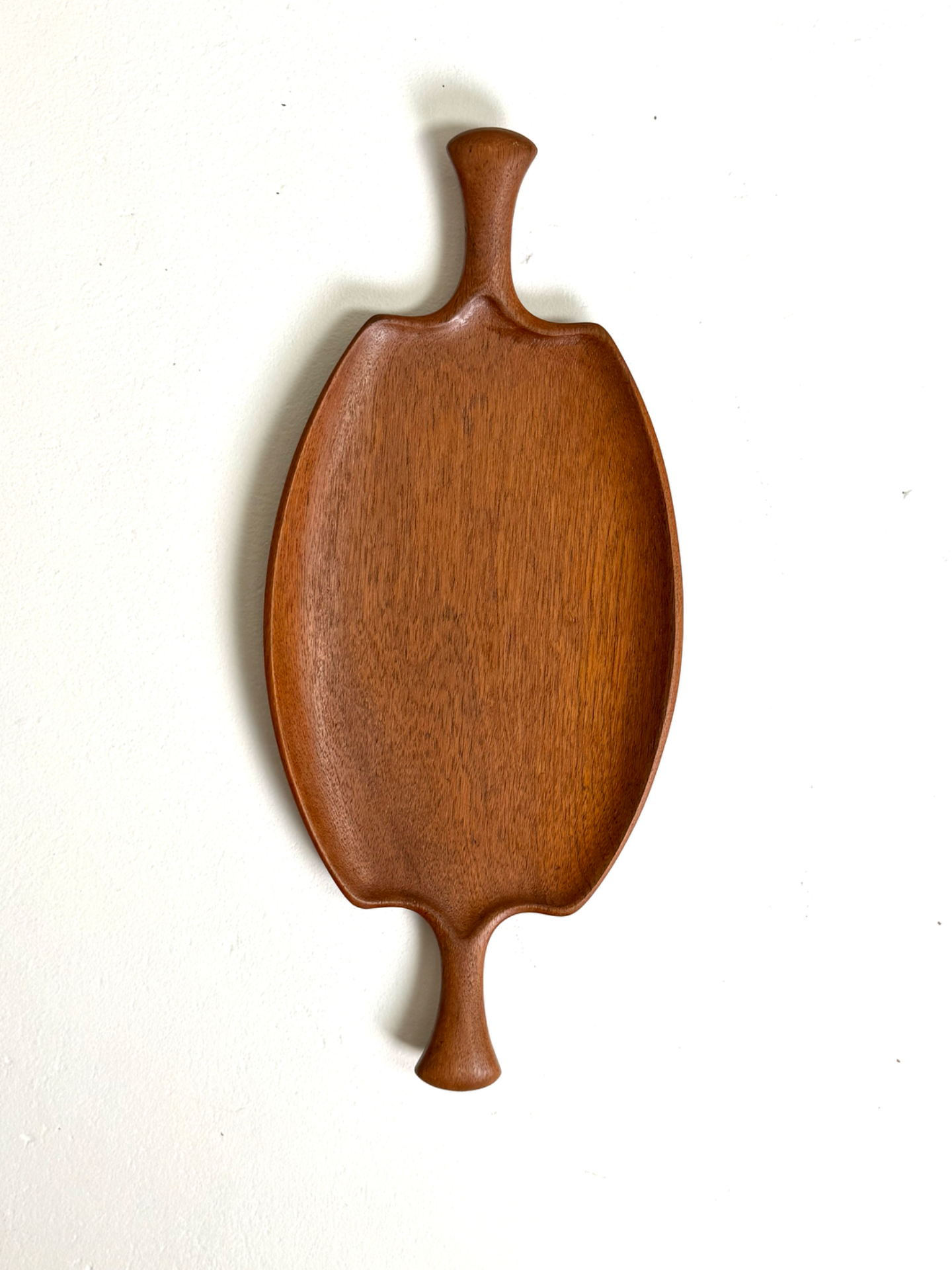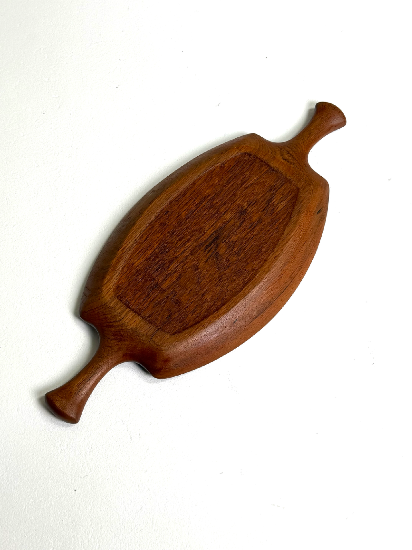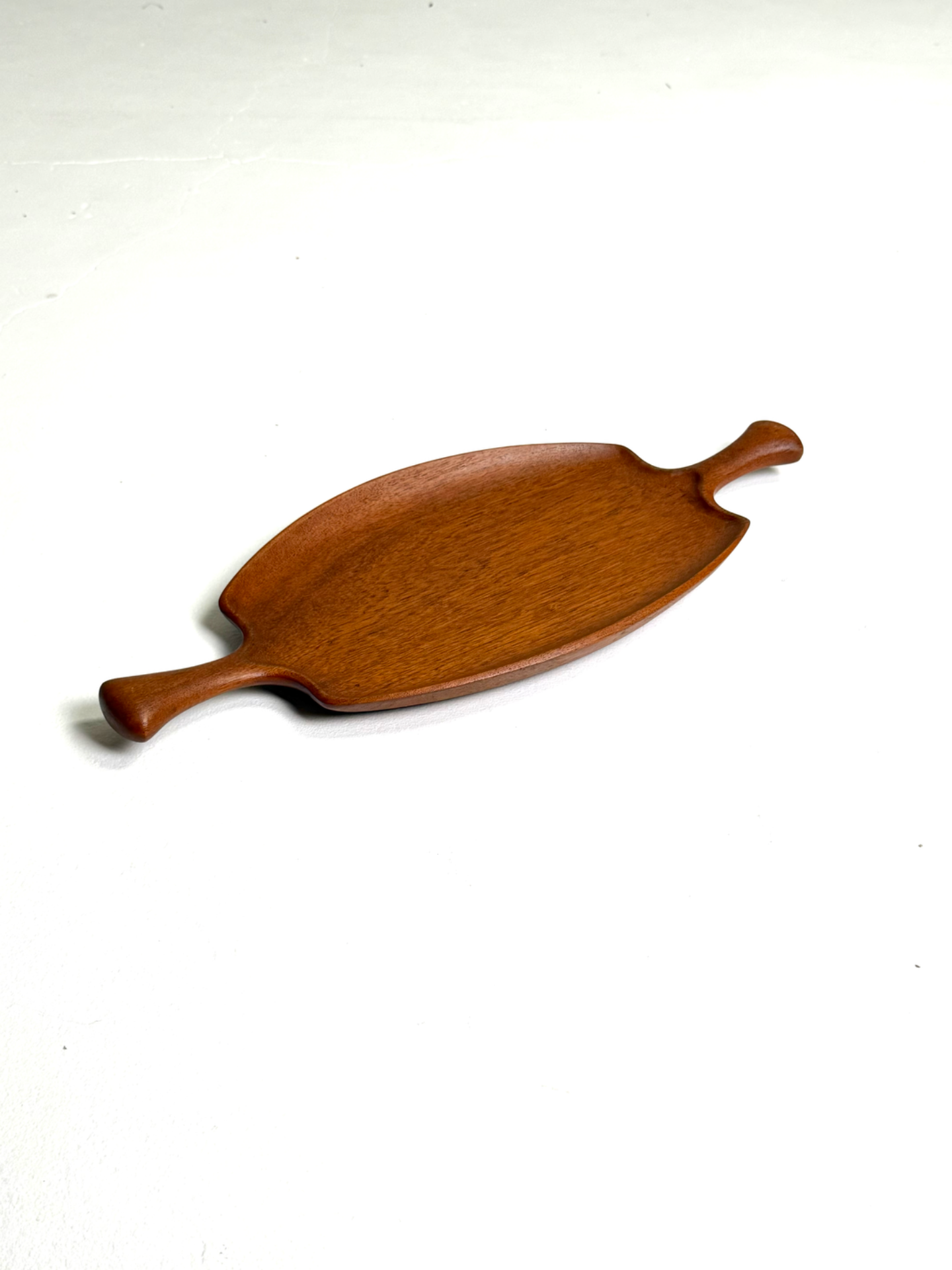 Kauniisti muotoiltu tarjoiluastia, valmistettu yhdestä palasta massiivitiikkiä. Muotoilu heijastelee 1960-luvun tanskalaista estetiikkaa: pehmeät linjat ja luonnonmateriaalien korostus. Sopii niin kattaukseen kuin koriste-esineeksi.