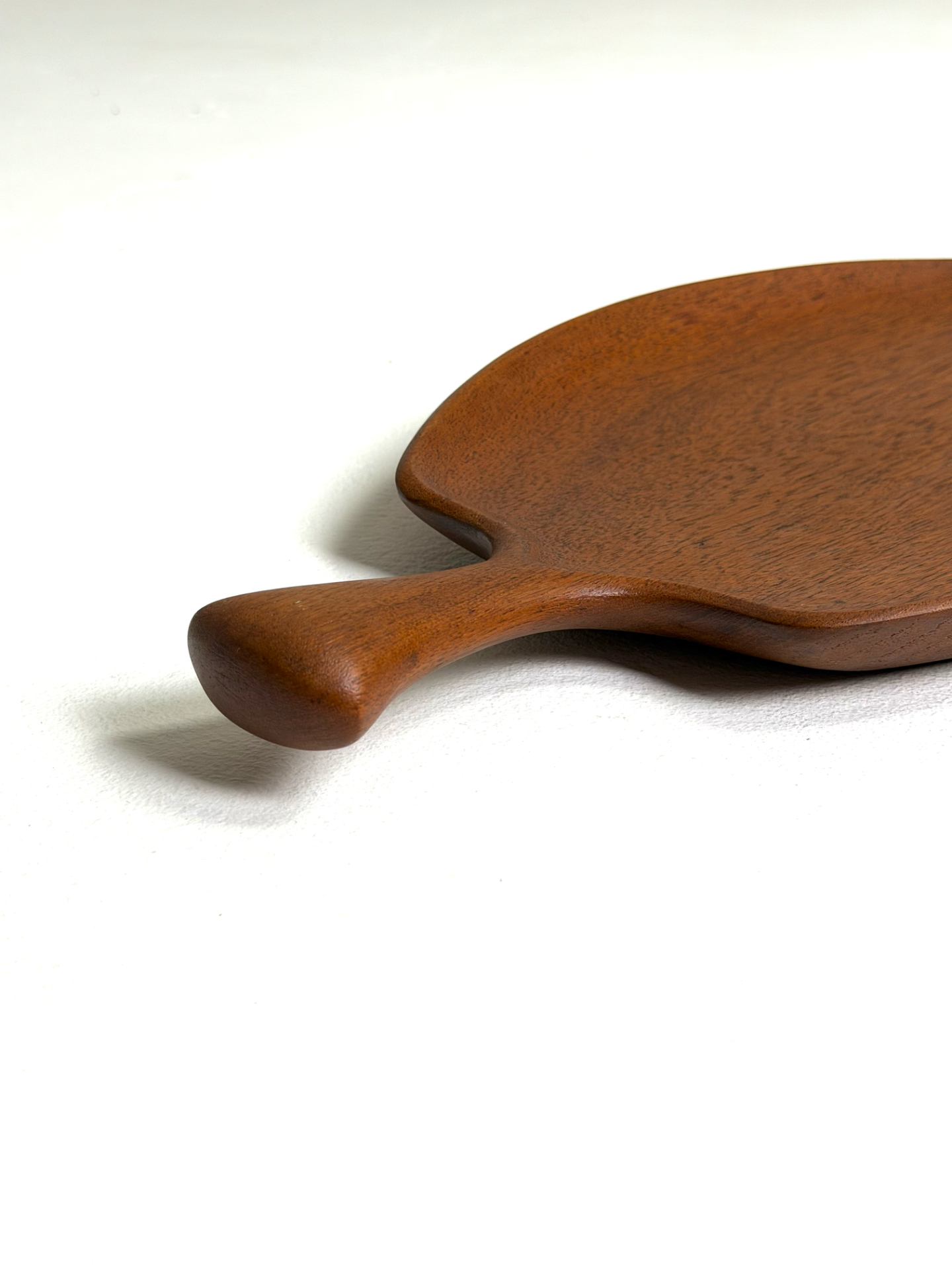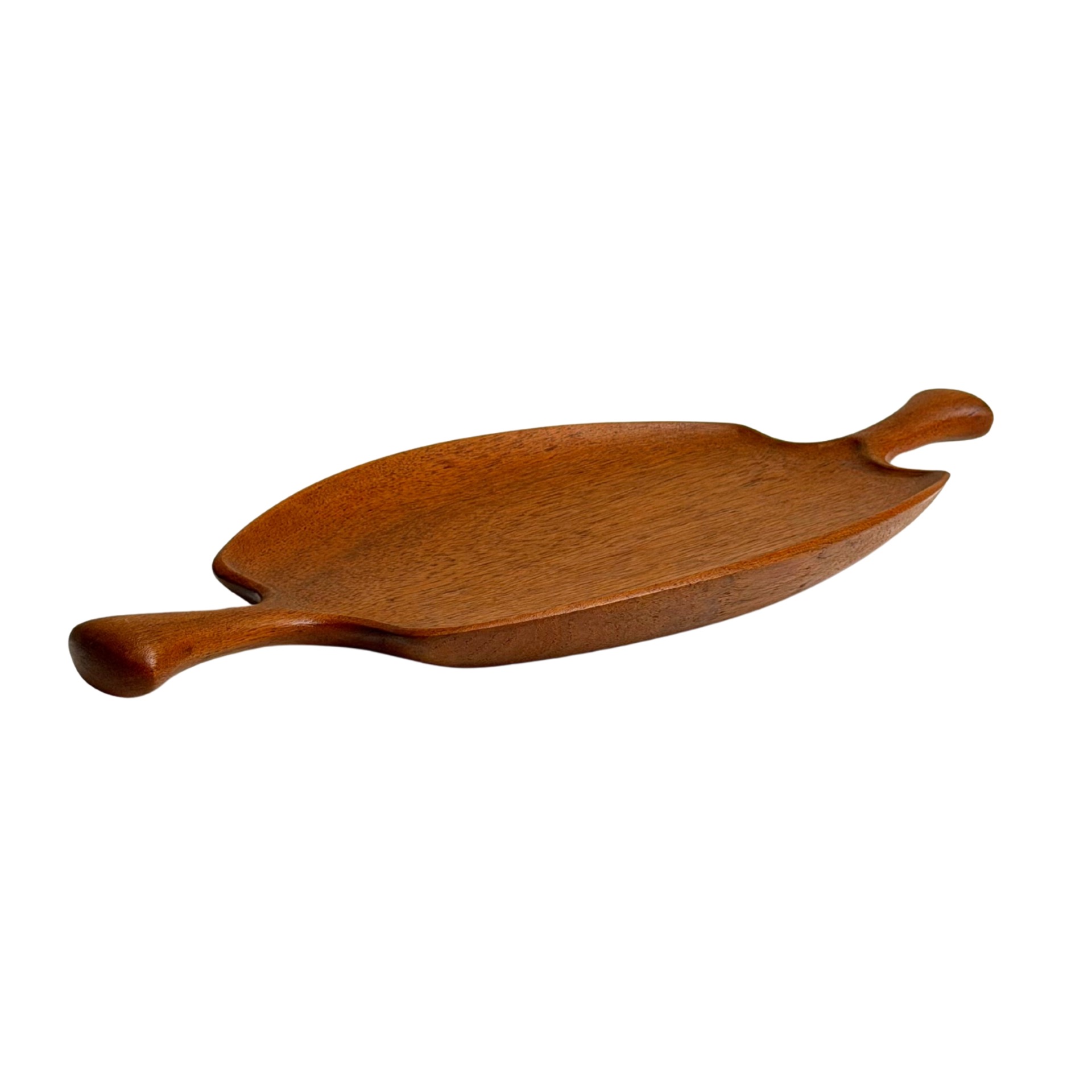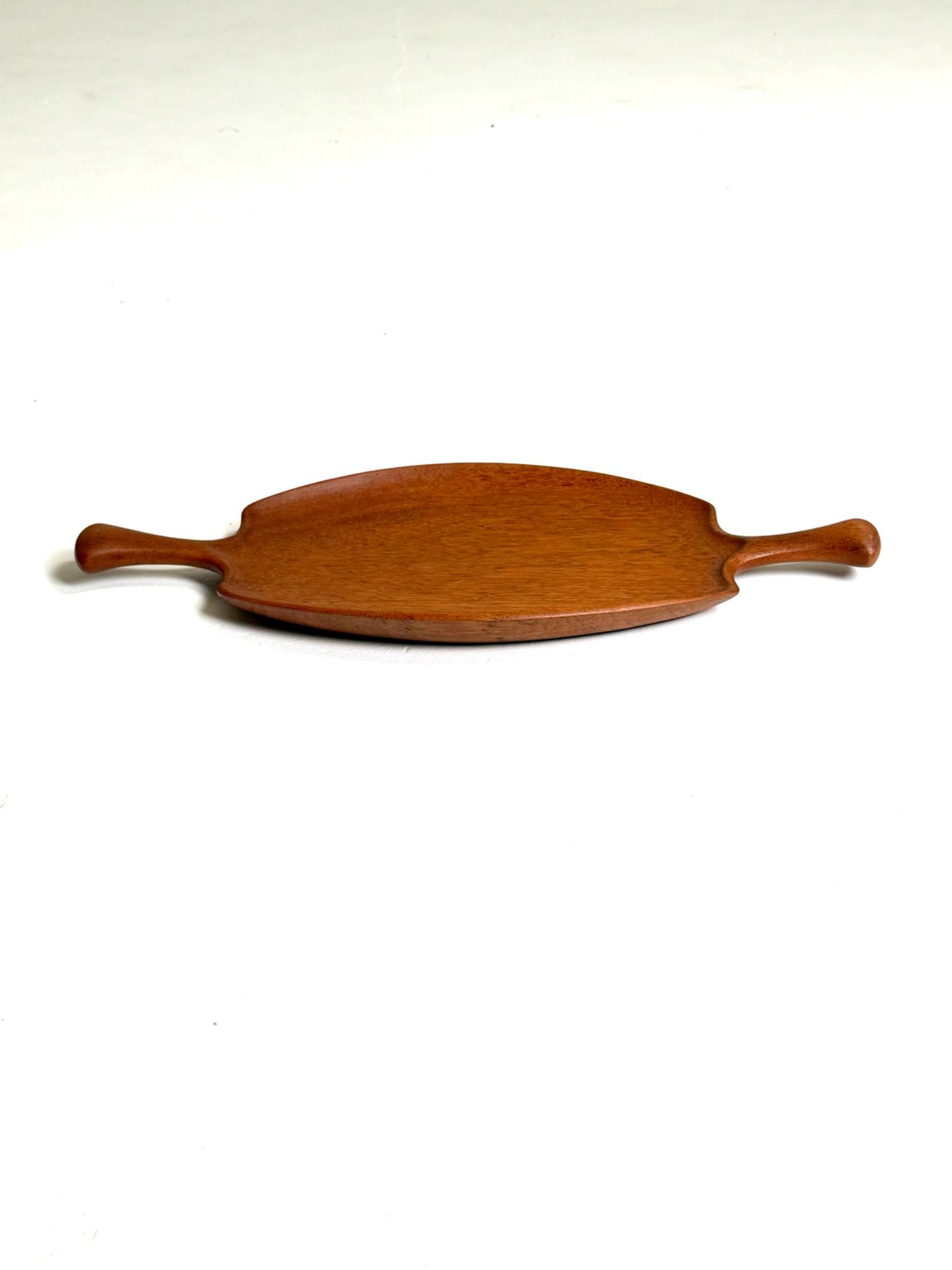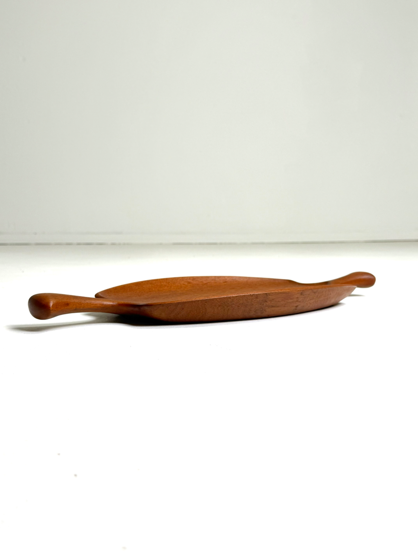 Kauniisti muotoiltu tarjoiluastia, valmistettu yhdestä palasta massiivitiikkiä. Muotoilu heijastelee 1960-luvun tanskalaista estetiikkaa: pehmeät linjat ja luonnonmateriaalien korostus. Sopii niin kattaukseen kuin koriste-esineeksi.