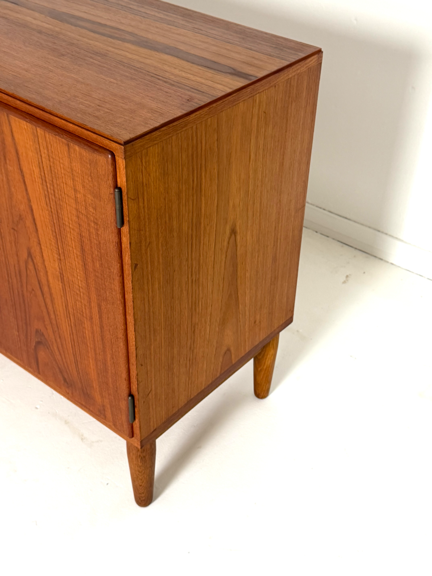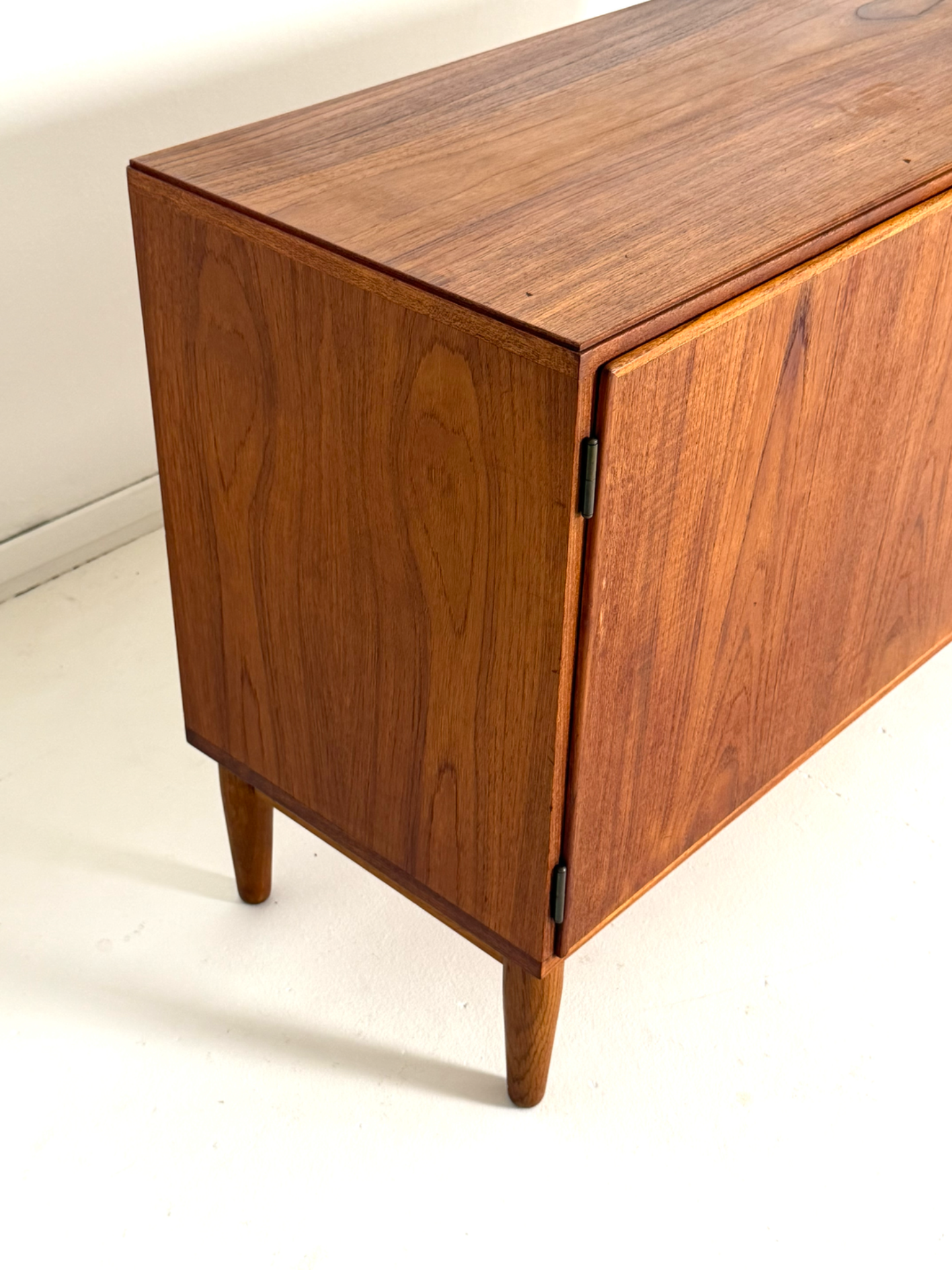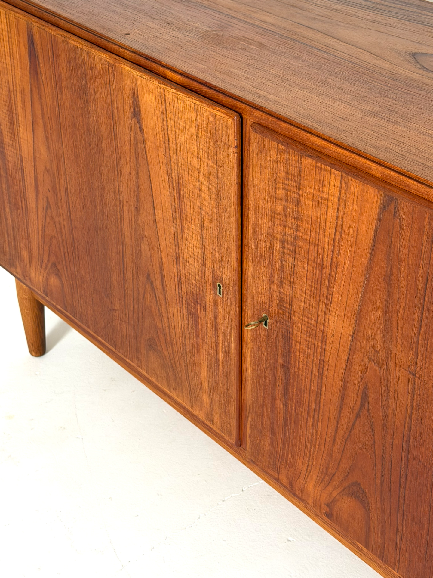Ajaton tanskalainen senkki 1960-luvulta, valmistettu kauniinsävyisestä tiikistä. Selkeälinjainen muotoilu ja harmoniset mittasuhteet tekevät kalusteesta elegantin ja helposti sijoitettavan osan sisustusta.
