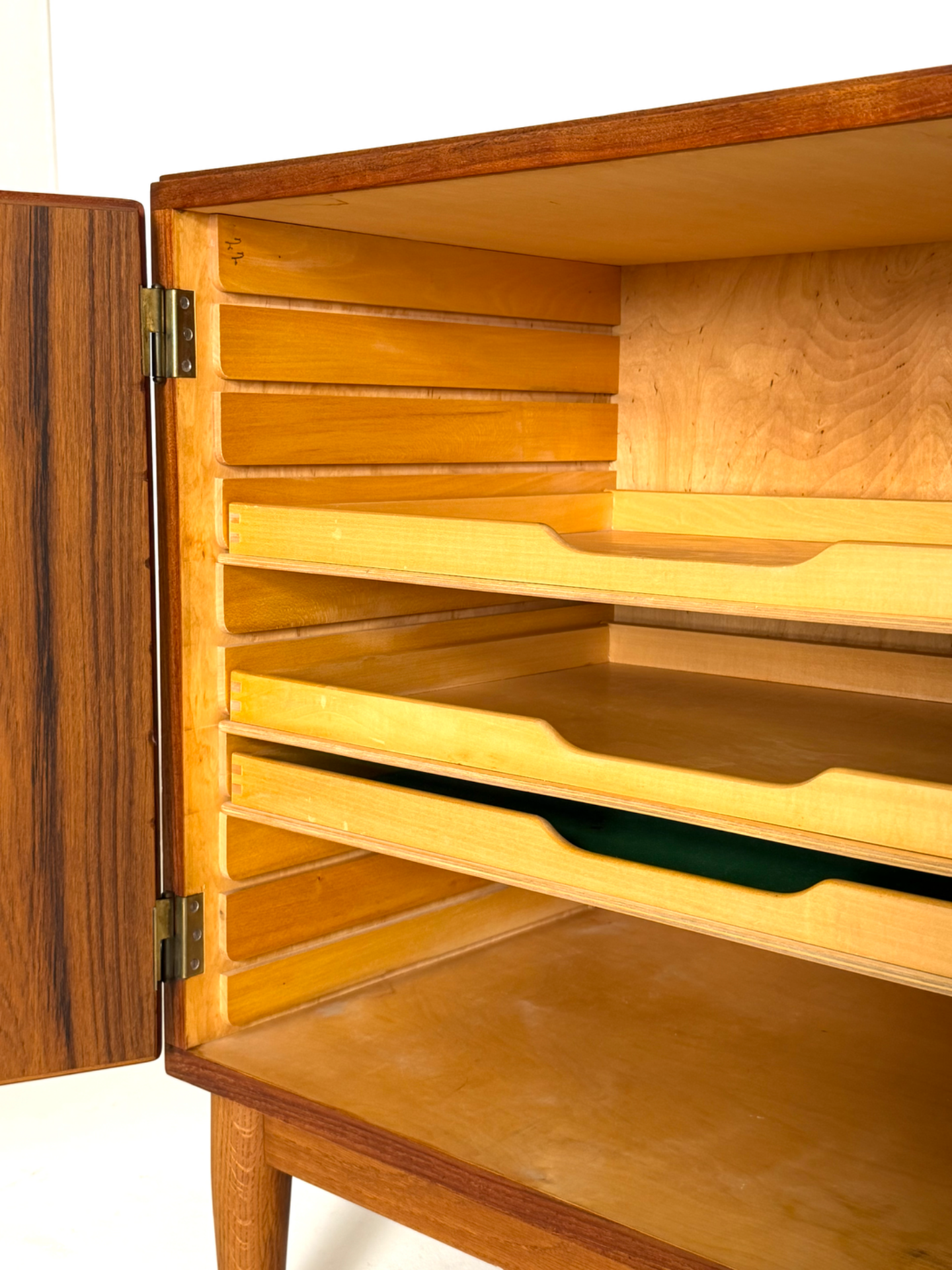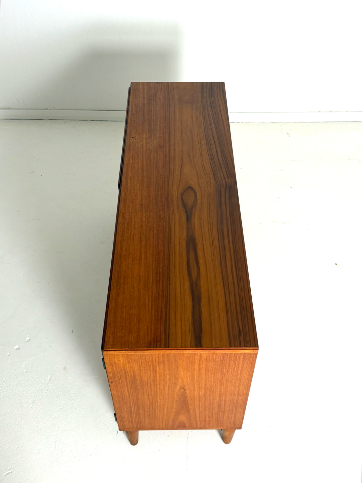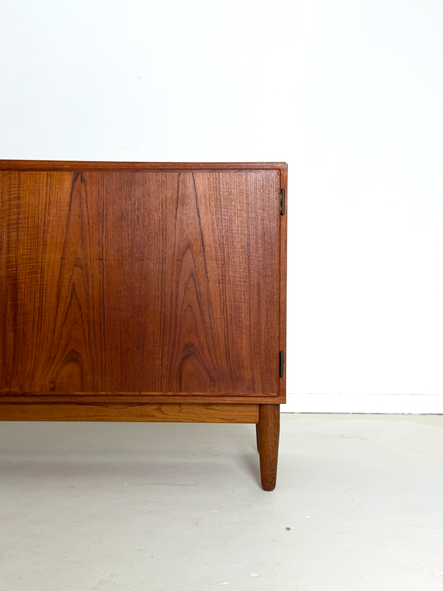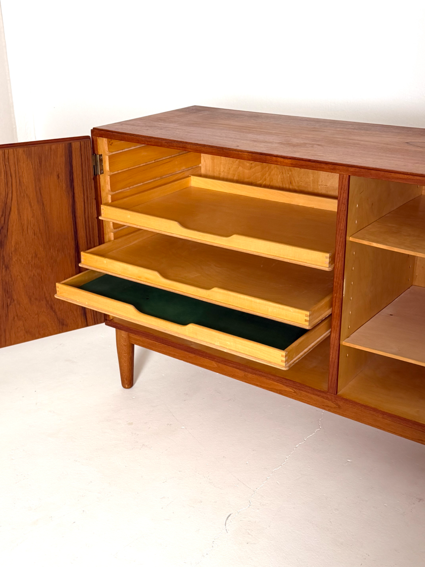 Ajaton tanskalainen senkki 1960-luvulta, valmistettu kauniinsävyisestä tiikistä. Selkeälinjainen muotoilu ja harmoniset mittasuhteet tekevät kalusteesta elegantin ja helposti sijoitettavan osan sisustusta.
