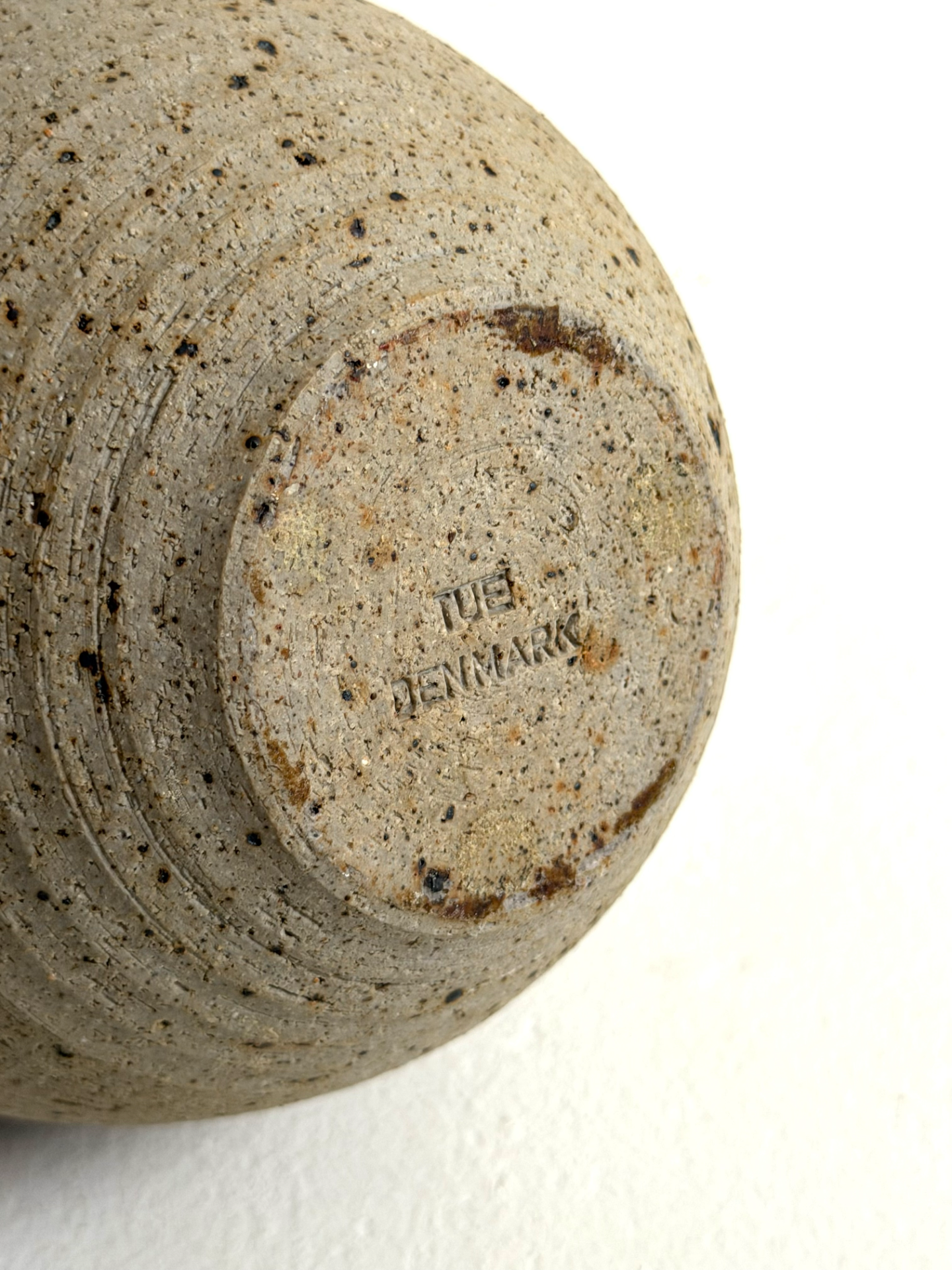 Ilmeikäs ja tunnistettava keraaminen pullo/maljakko tanskalaiselta suunnittelijalta Tue Poulsenilta. Valmistettu Tue Denmarkilla 1970-luvulla, jolloin studio-keramiikka ja maanläheiset lasitteet olivat keskiössä.